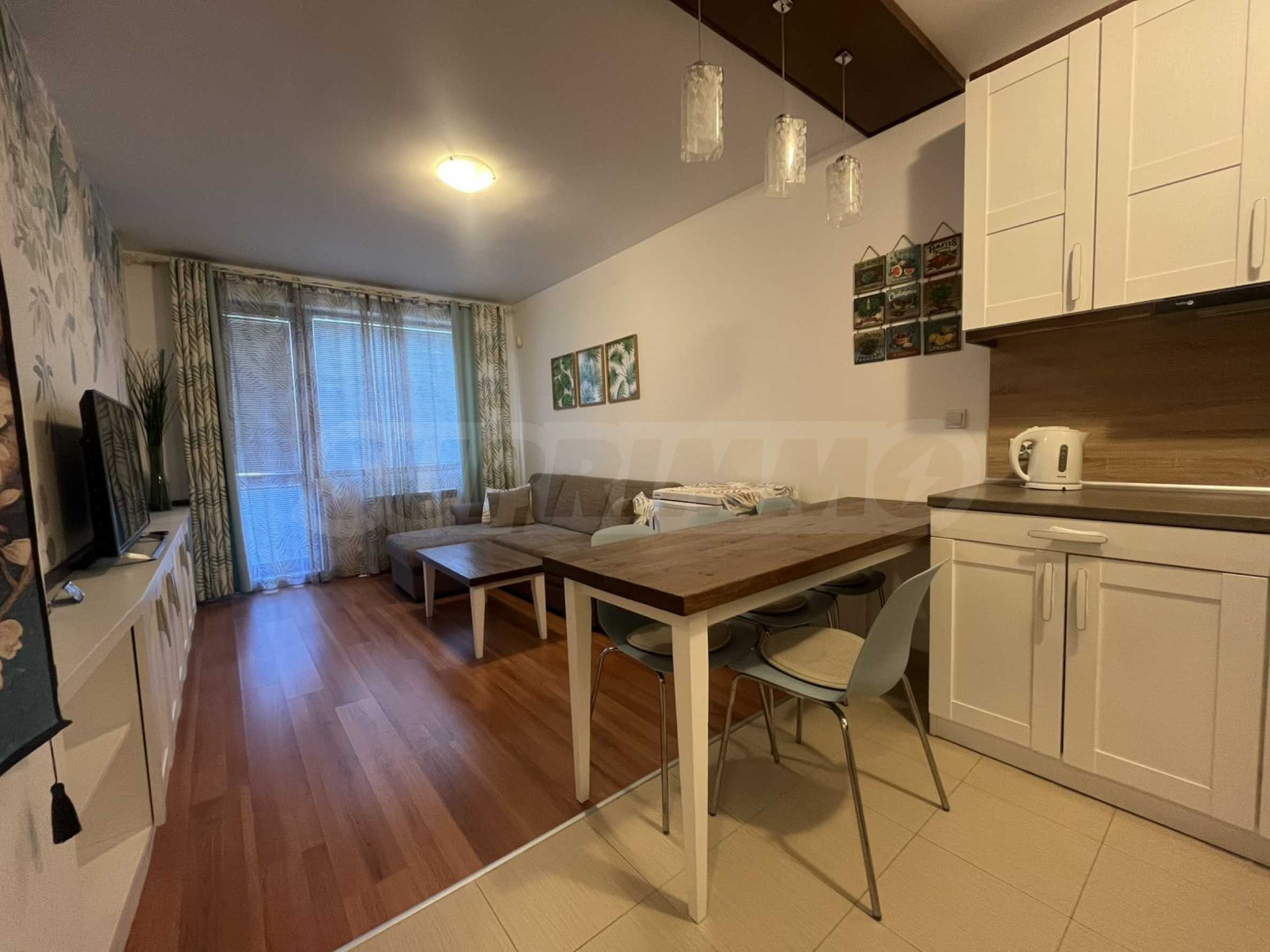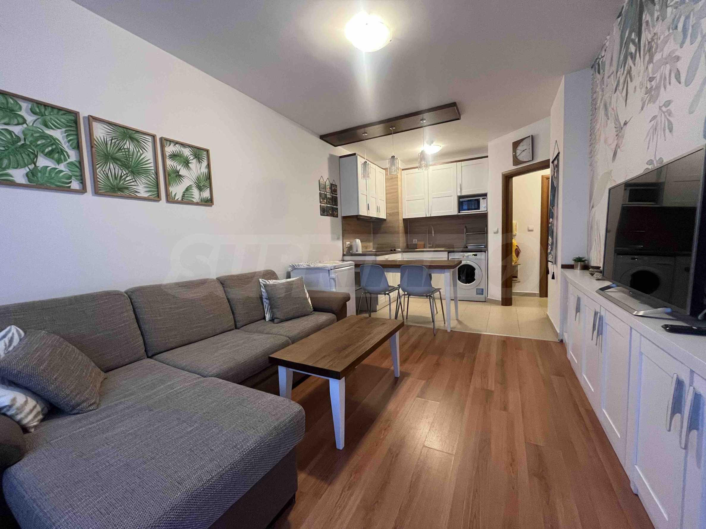 The maintenance fee is 15 euros per sq m per year and includes cleaning and lighting of the common areas, elevator, cable TV, reception, SPA center with indoor and outdoor swimming pools.