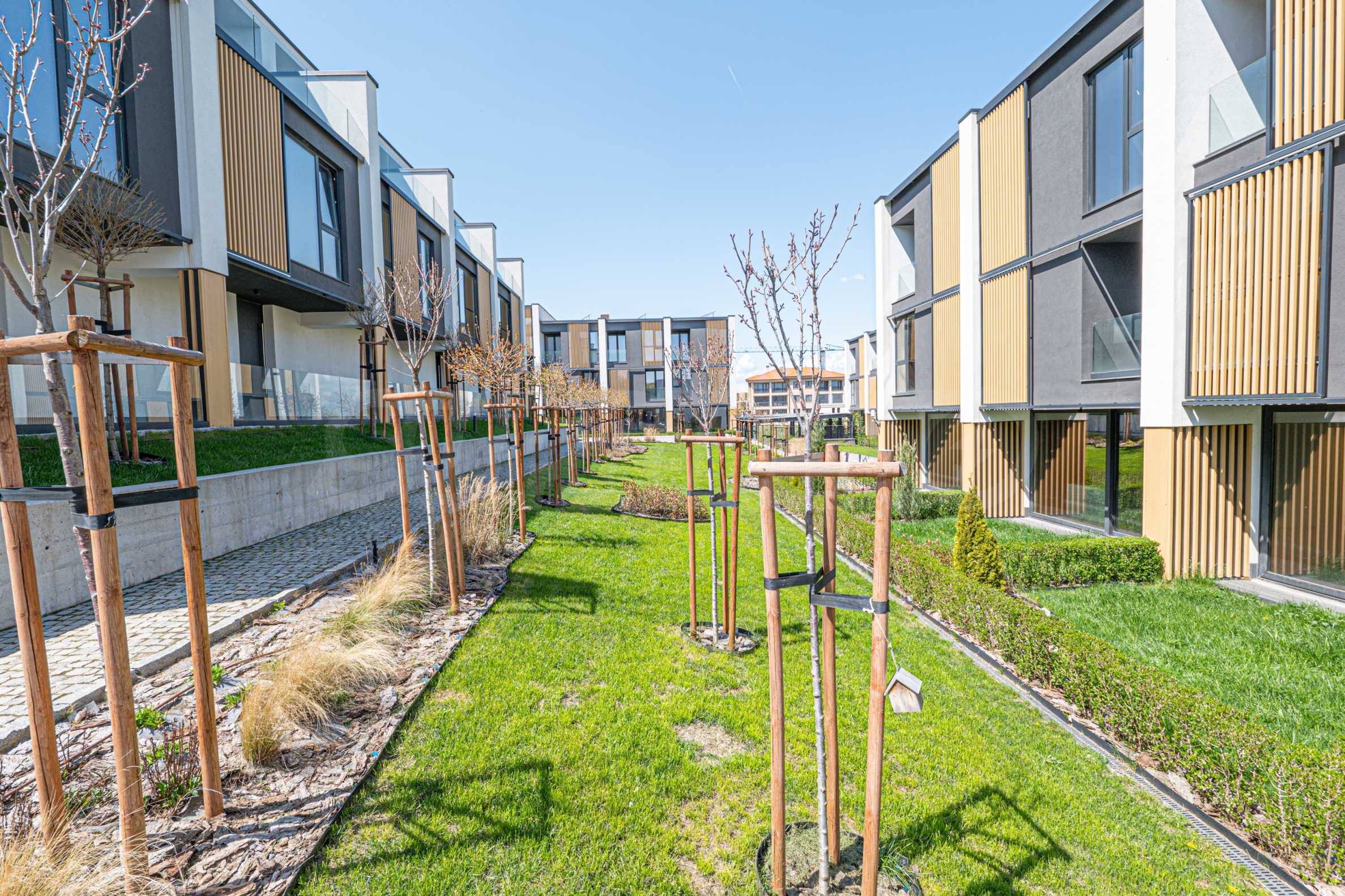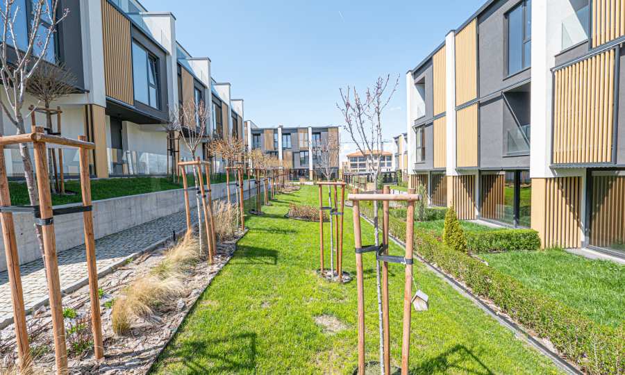 The complex is realized with attention to detail and contemporary standards of comfort, combining modern architecture, high-class materials and a richly landscaped environment. It consists of 34 row houses, grouped in 6 buildings, an underground parking with 78 parking spaces and a beautifully landscaped courtyard. An environment combining nature, security and new generation technological solutions.