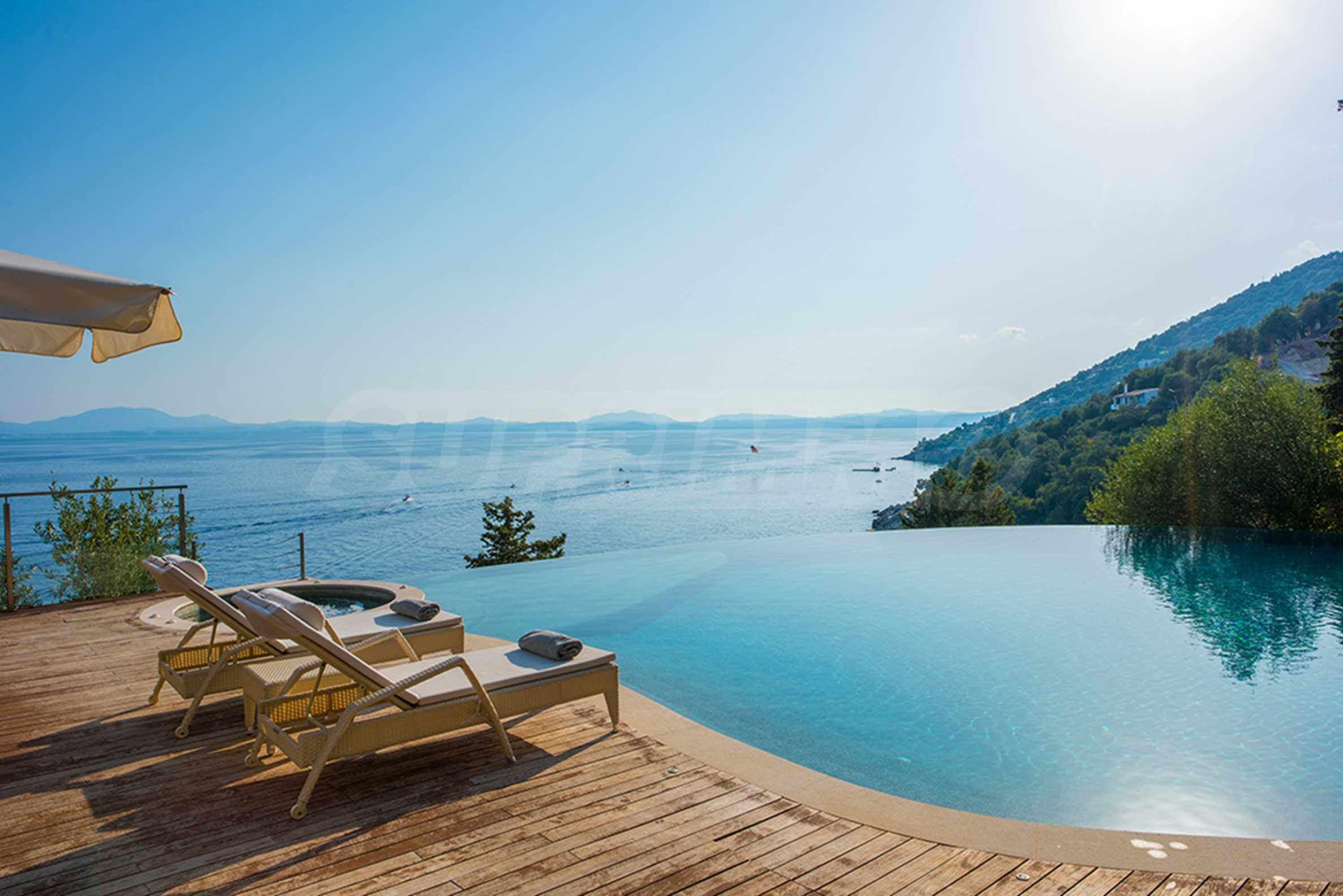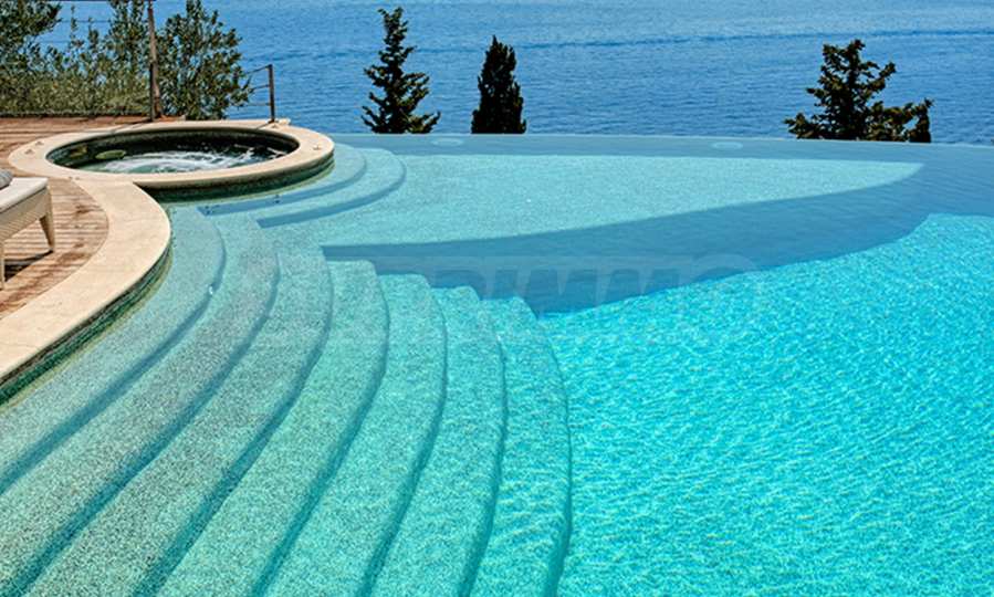 Merging with the elements: Infinity pool (100 sq m) with jacuzzi, in which the boundary between the water surface and the sky disappears.