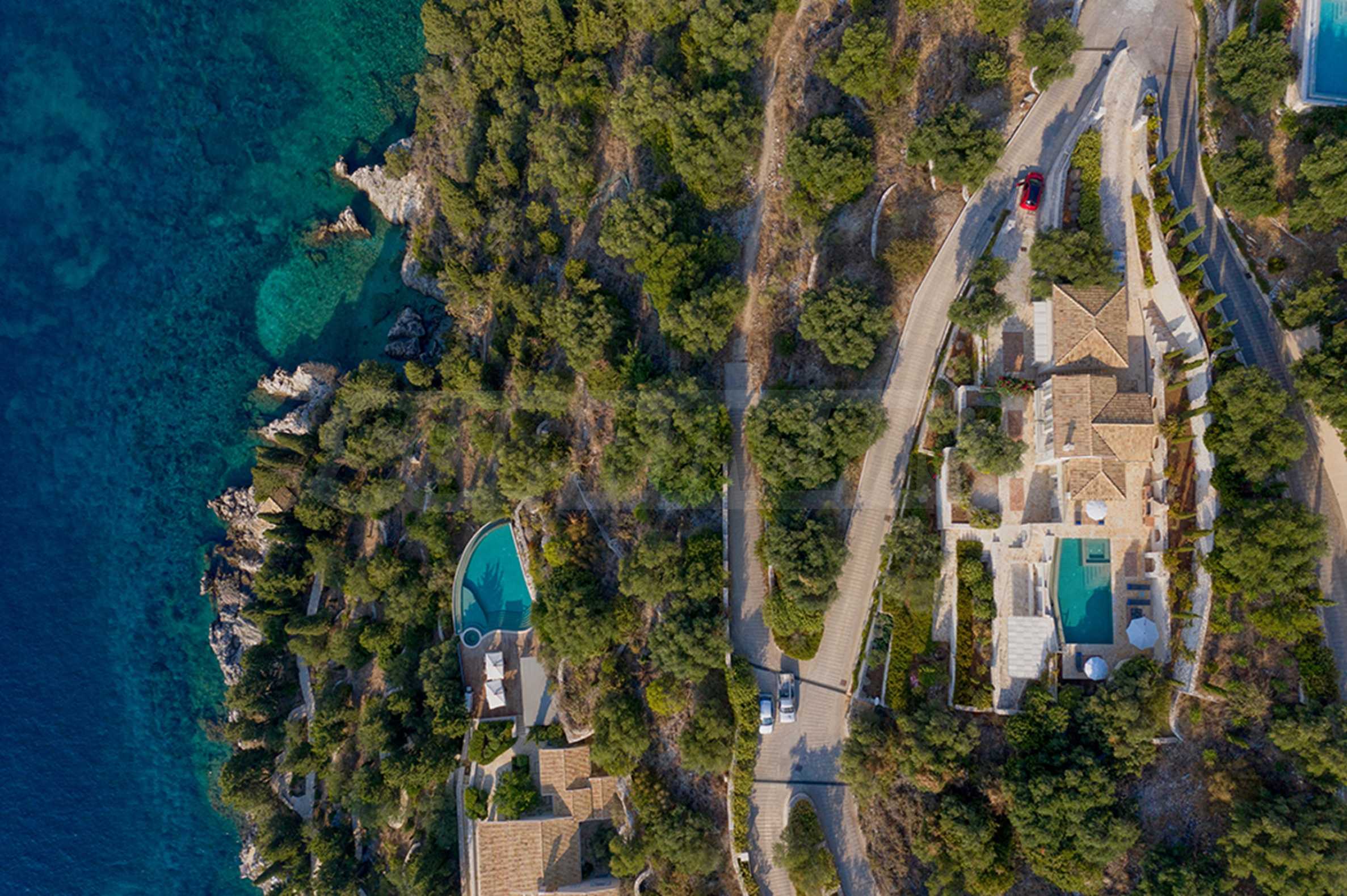 The 160-meter coastline is your private fortress. The rocky terrain guarantees complete privacy, and the natural slopes of the terrain allow for the creation of your own beach or the installation of a floating pier. The depth of the sea here is hospitable to yachts of all classes, making the villa the perfect starting point for sailing around the Ionian Islands.