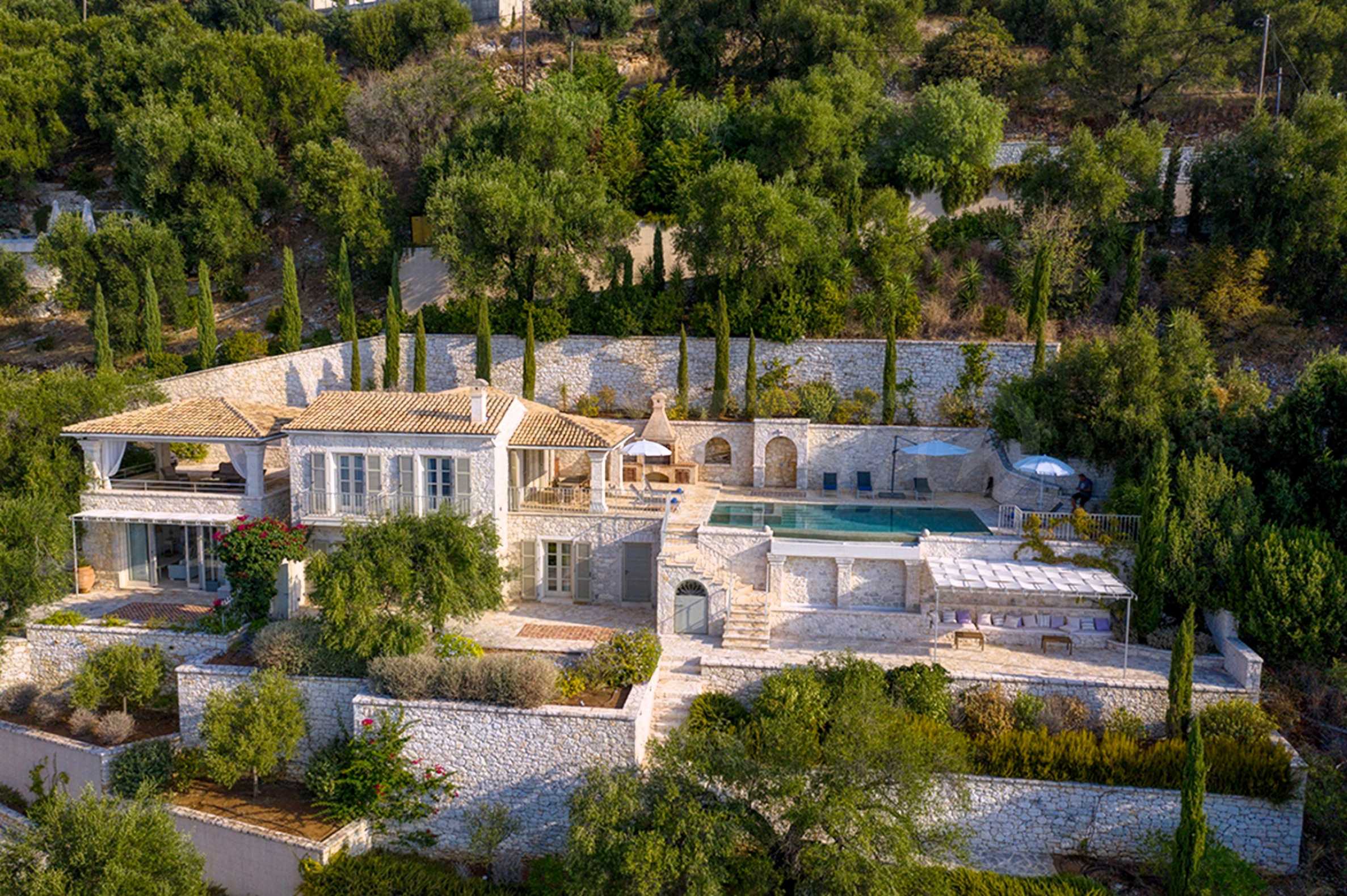 Carved into the living rock and surrounded by centuries-old cypress trees, this residence is an architectural homage to the island's Venetian heritage and the timeless beauty of the Ionian Sea.