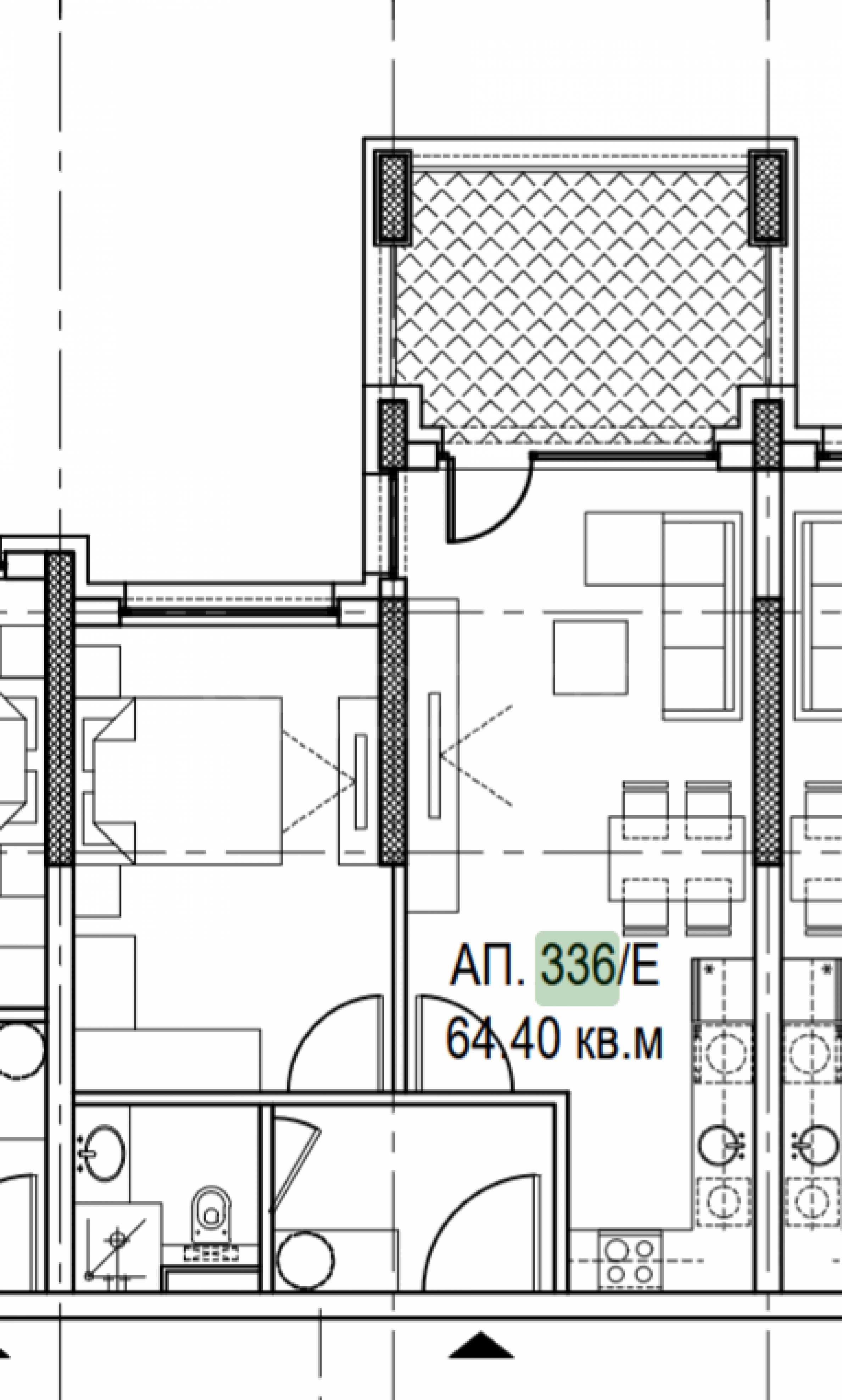 The property is located on the 5th floor and has a total area of 74.41 m2, net area - 64.40 m2, on which are distributed: entrance hall, living room with kitchen, bathroom/toilet, bedroom, terrace with access from both rooms. It is being sold in a state of completion according to Bulgarian Standards, with five-chamber PVC Rehau windows, with triple glazing and an armored entrance door.