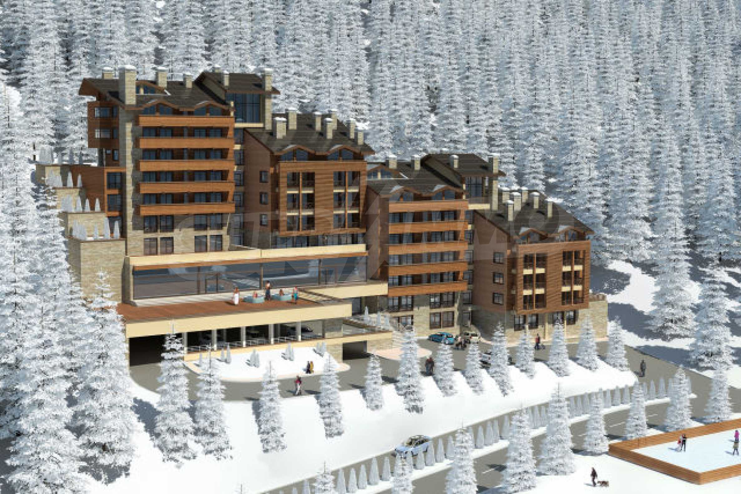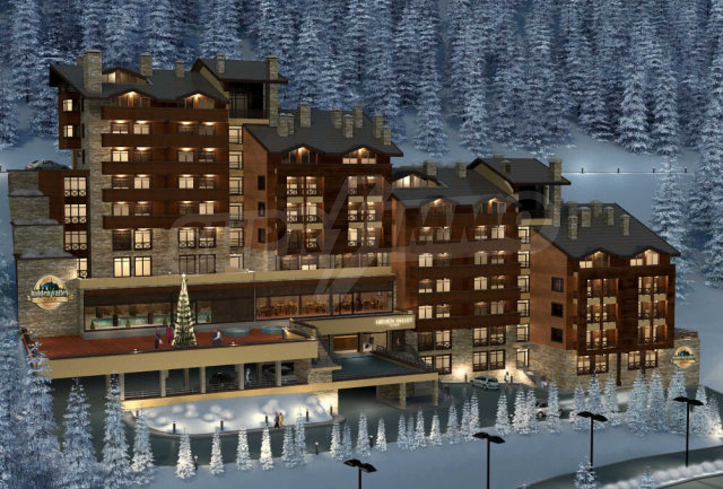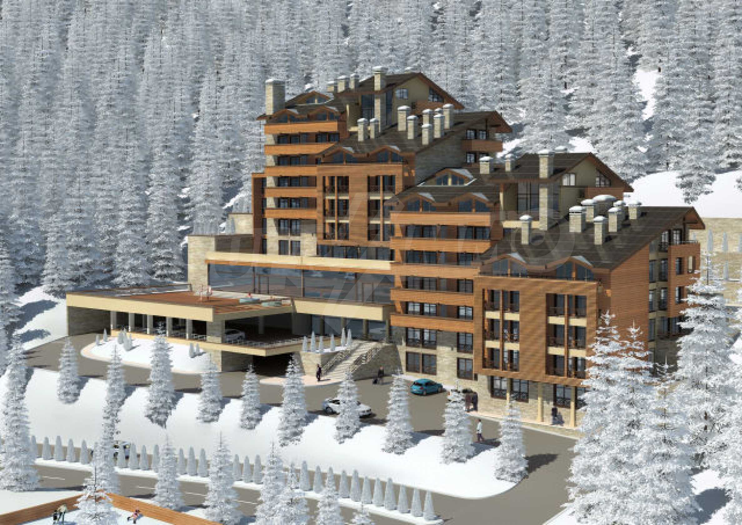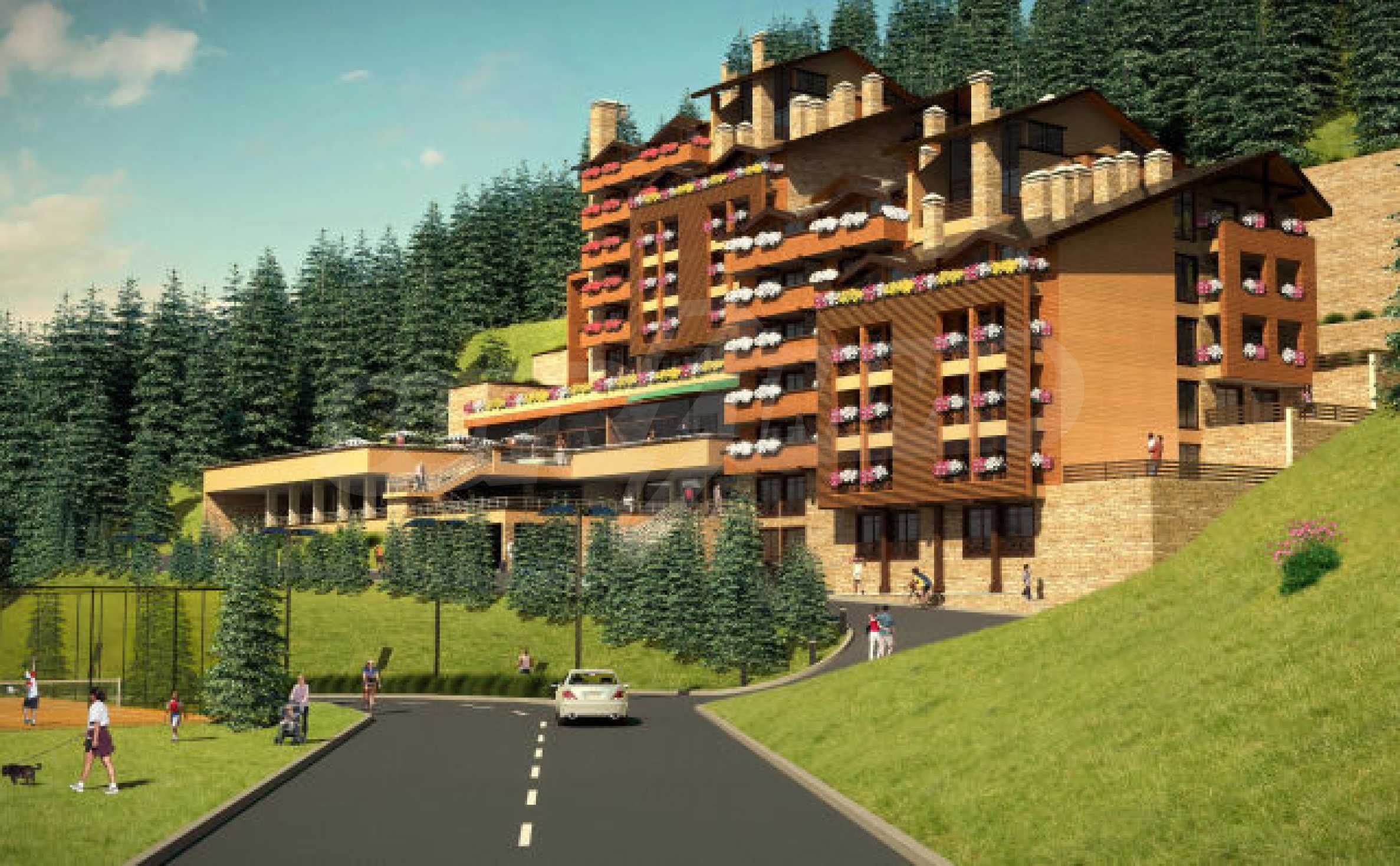 We present an investment plot with a detailed project for a holiday complex with apartments. The plot is located at the beginning of Pamporovo, 150 meters from the center of the resort and about 60 meters from the ski slopes. It is on the road to the village of Stoykite and near the Malina complex, 15 km from the town of Smolyan and 85 km from the city of Plovdiv.