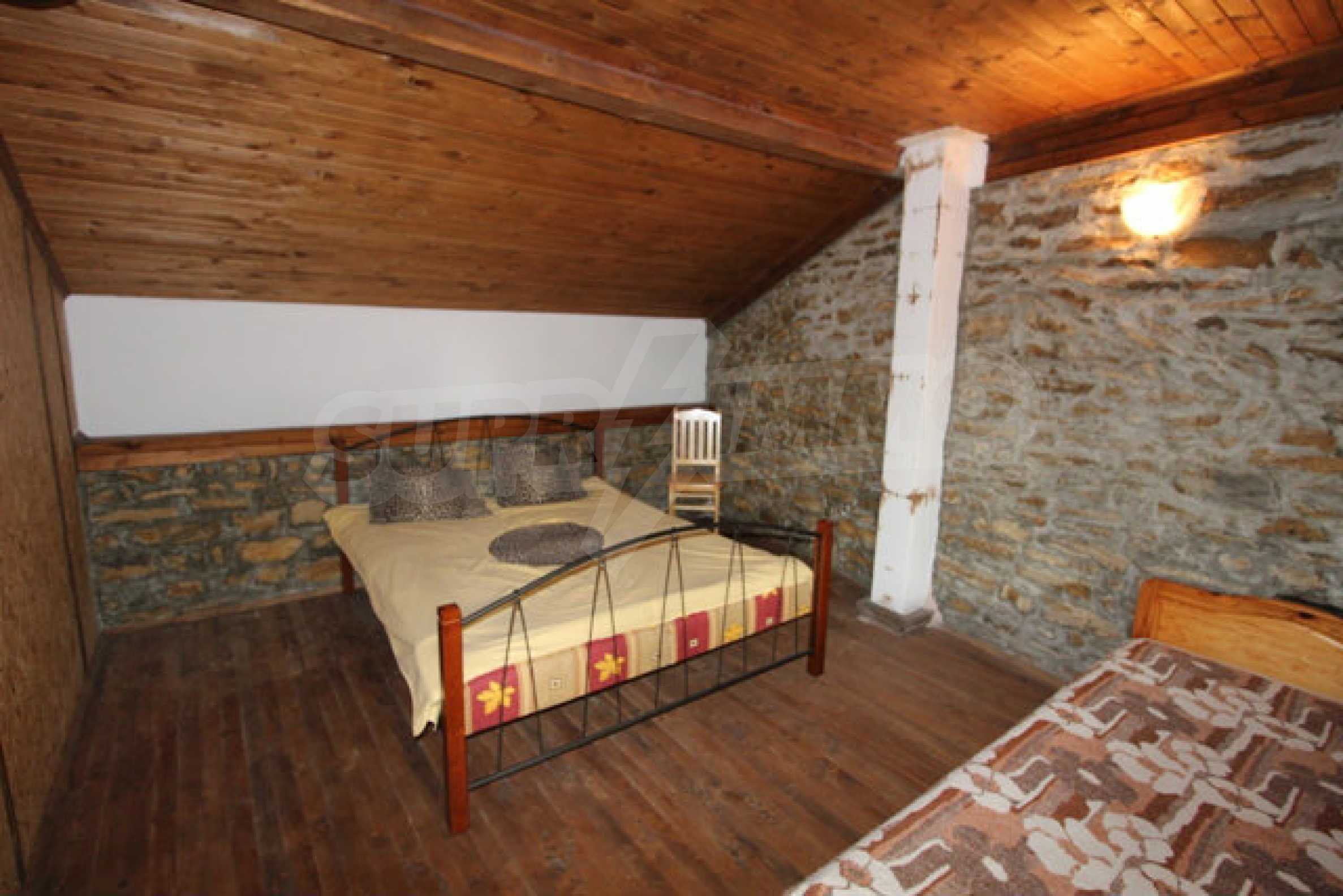The house is built mainly of wood, stone and bricks and has internal insulation. Located 25 km. from the old capital of Veliko Tarnovo, the house has a total area of 110 sq.m., located on 2 floors with a southwest exposure and views of the forest. First floor - two-level mehana / dining room and place for relaxation / hall, kitchen, bathroom, staircase. Second floor - 2 bedrooms with a size of 16 sq.m. each, glassed porch. The house is furnished with everything if you planning to rent it out / capacity of 10-12 /. The yard is with a size of 600 sq.m. There are functioning well, a wood shed, parking space for car / s/. Year-round access to the village and house. In the area there are two dams for fishing, river Rosica and the historic Roman village - "Nicopolis ad Istrum" are 7 km. away. The house has insurance and security system. Unspoiled nature in the region conducive to active recreation and leisure.