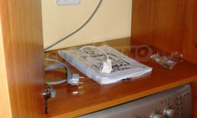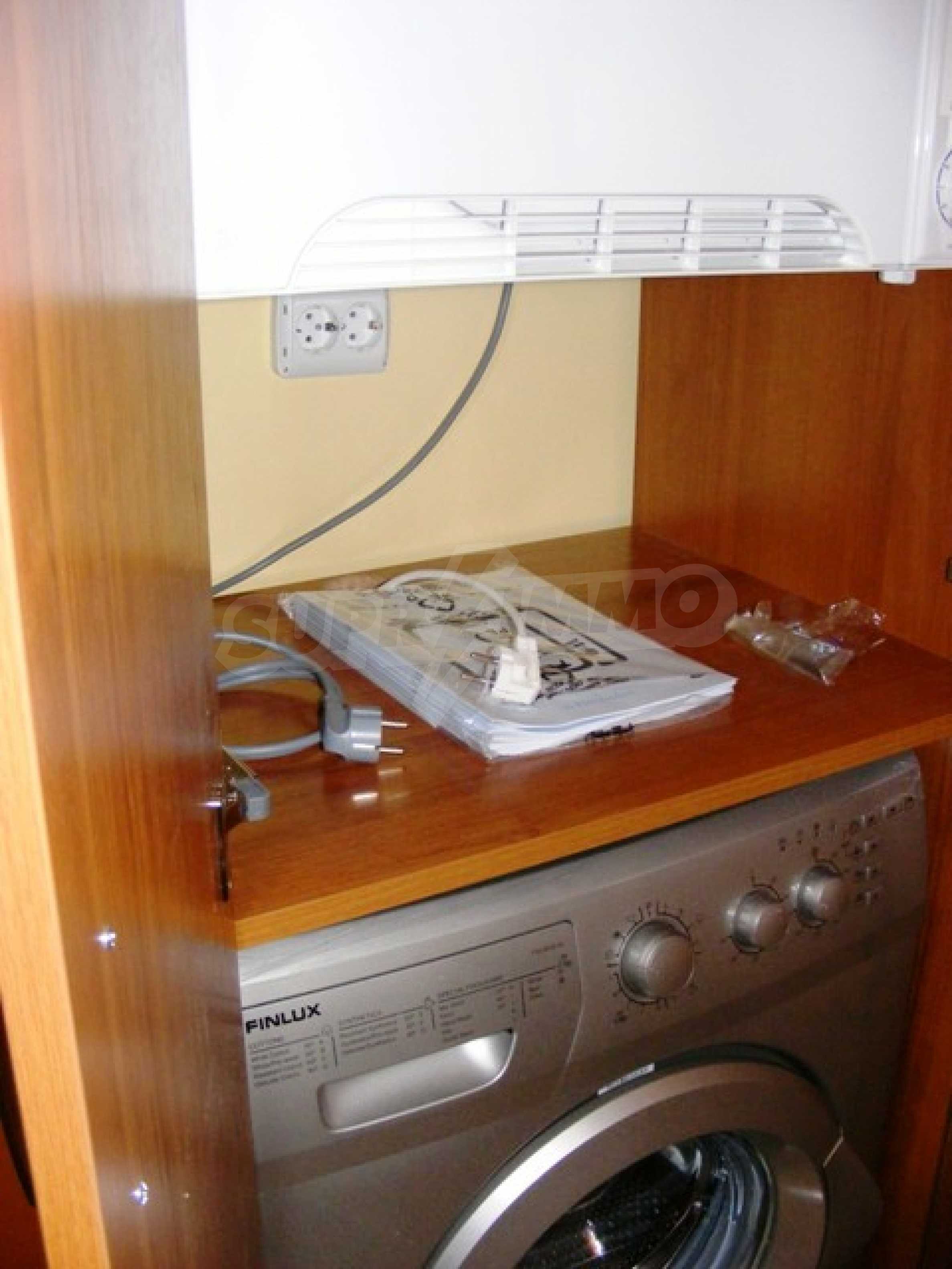 The apartment is located on the second floor. On total area of 110 sq. m. are distributed: spacious living room with kitchen, terrace with spacious view to the sea, two bedrooms, two bathrooms, built-in laundry room and hallway. The apartment is newly furnished and has all the necessary appliances for household: plasma TV, vacuum cleaner, coffee machine, dishwasher, refrigerator, oven, ceramic hob, washing machine, dryer, extractor, microwave oven. There are installed air conditioners in each room.