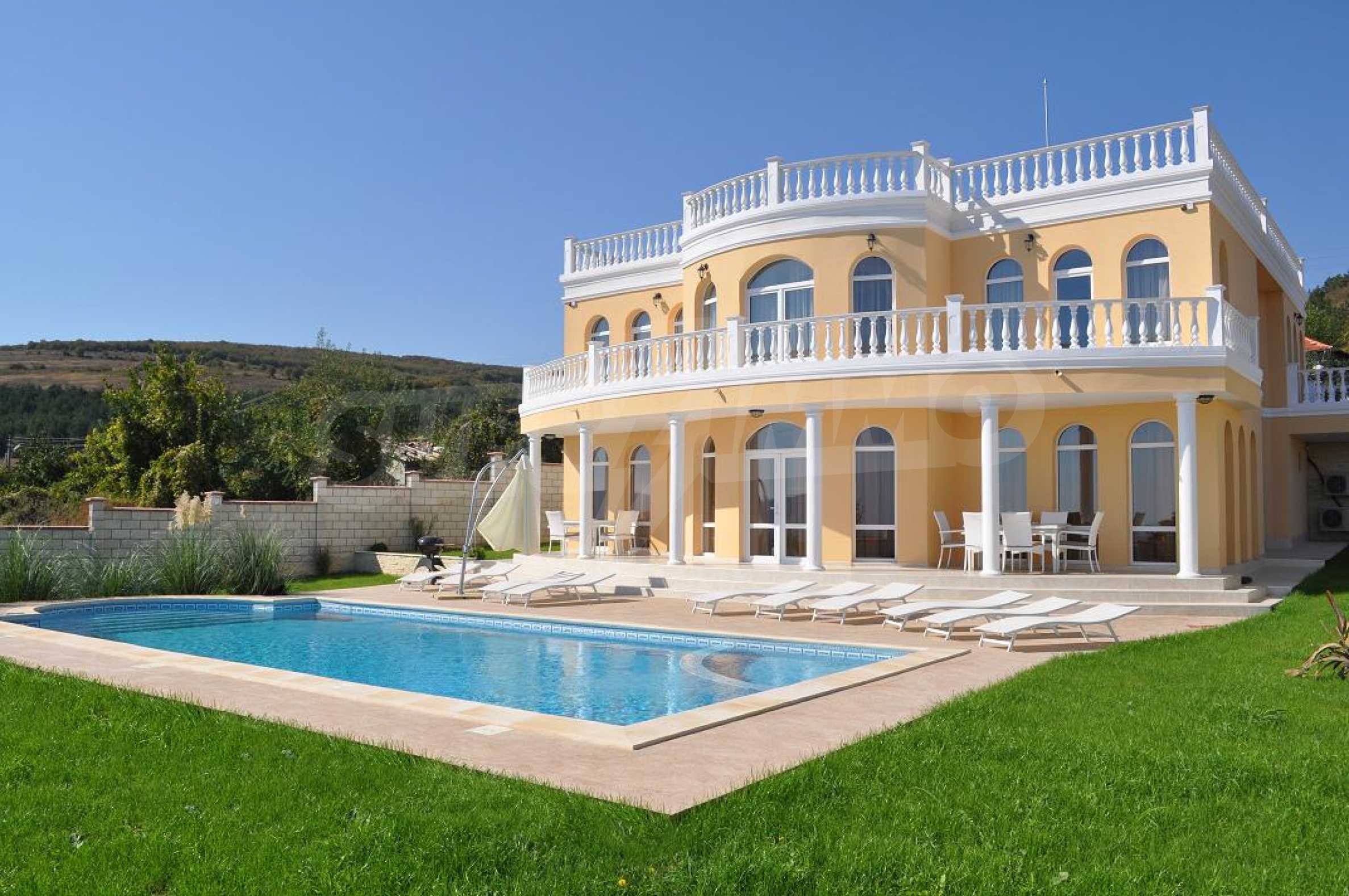 This magnificent villa - its own sunny palace - has plenty of space - it spreads over 450 sq m. As soon as you enter the sparkling atrium with classical columns and an ornate staircase, you can safely drop your bags in admiration!