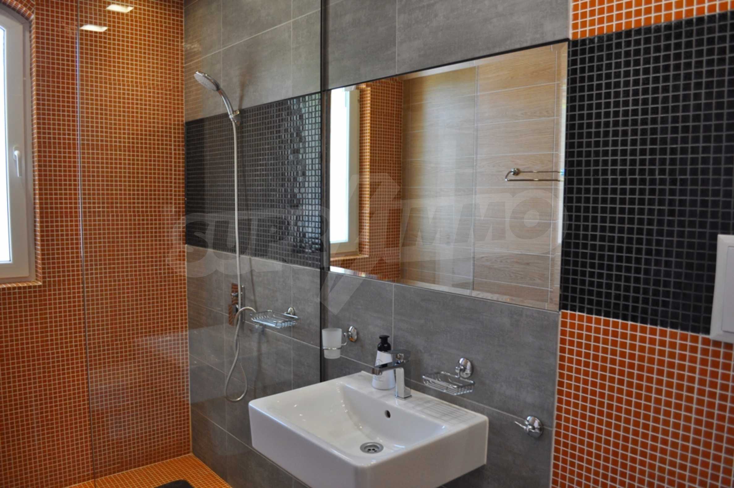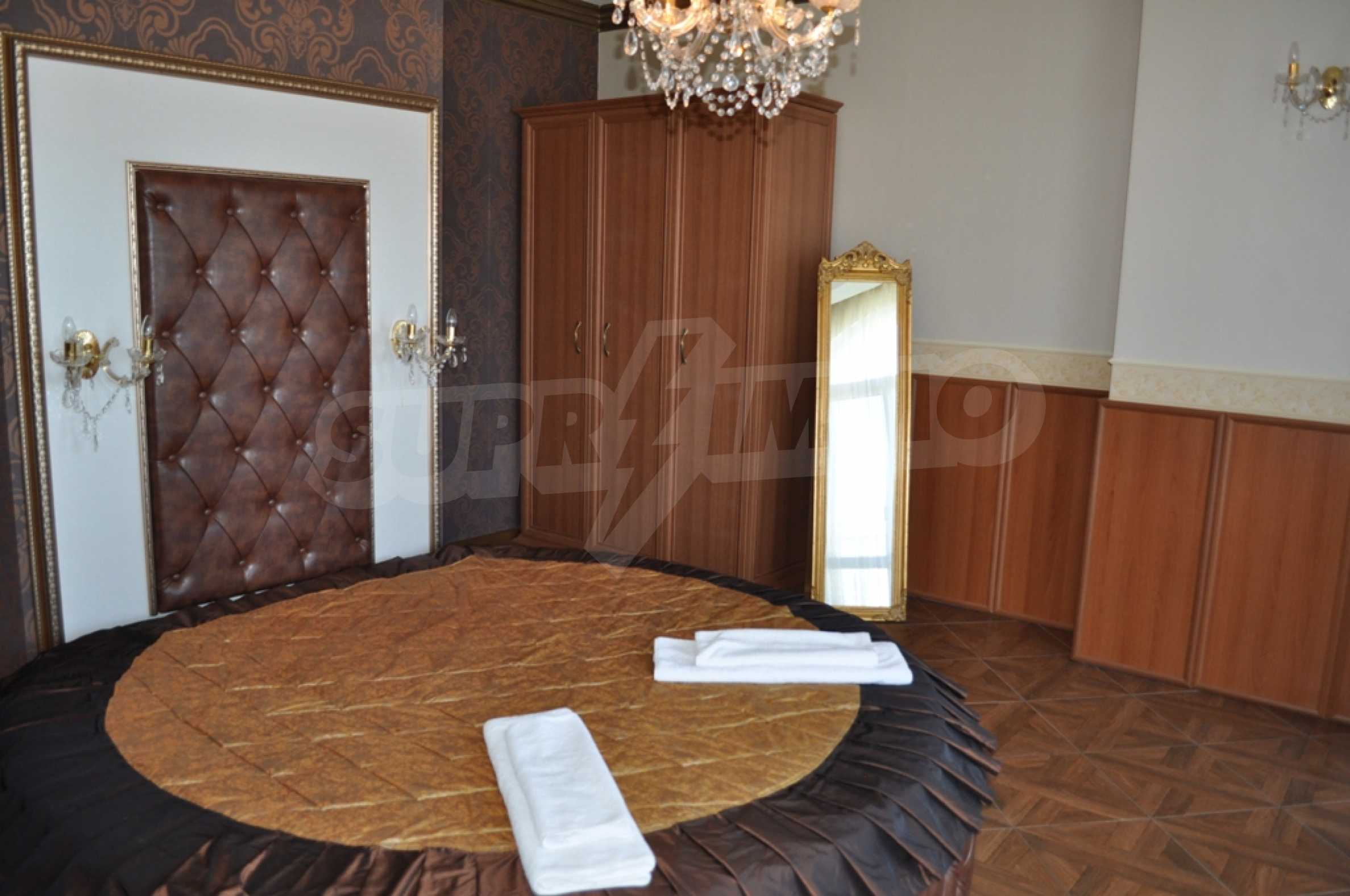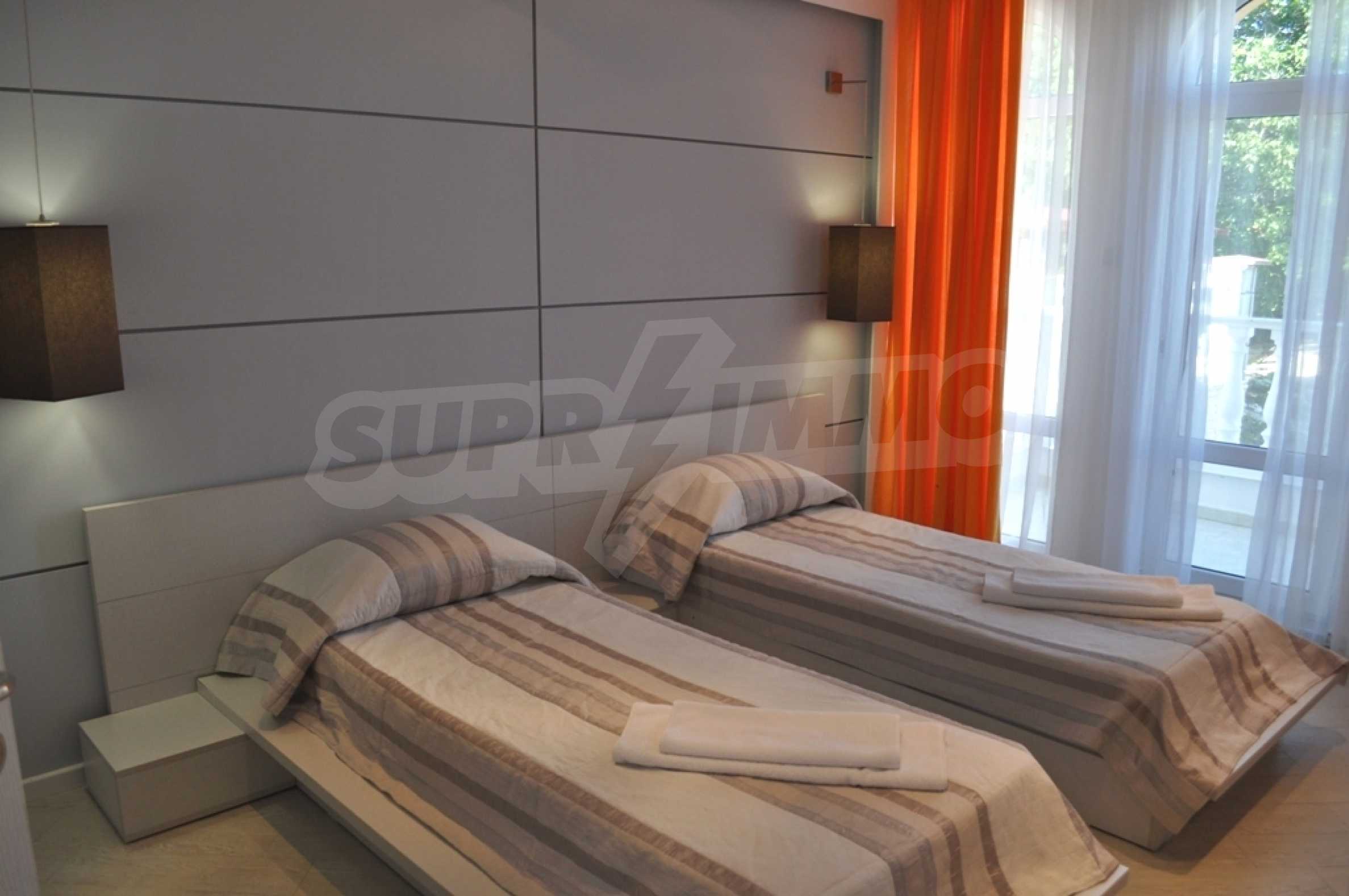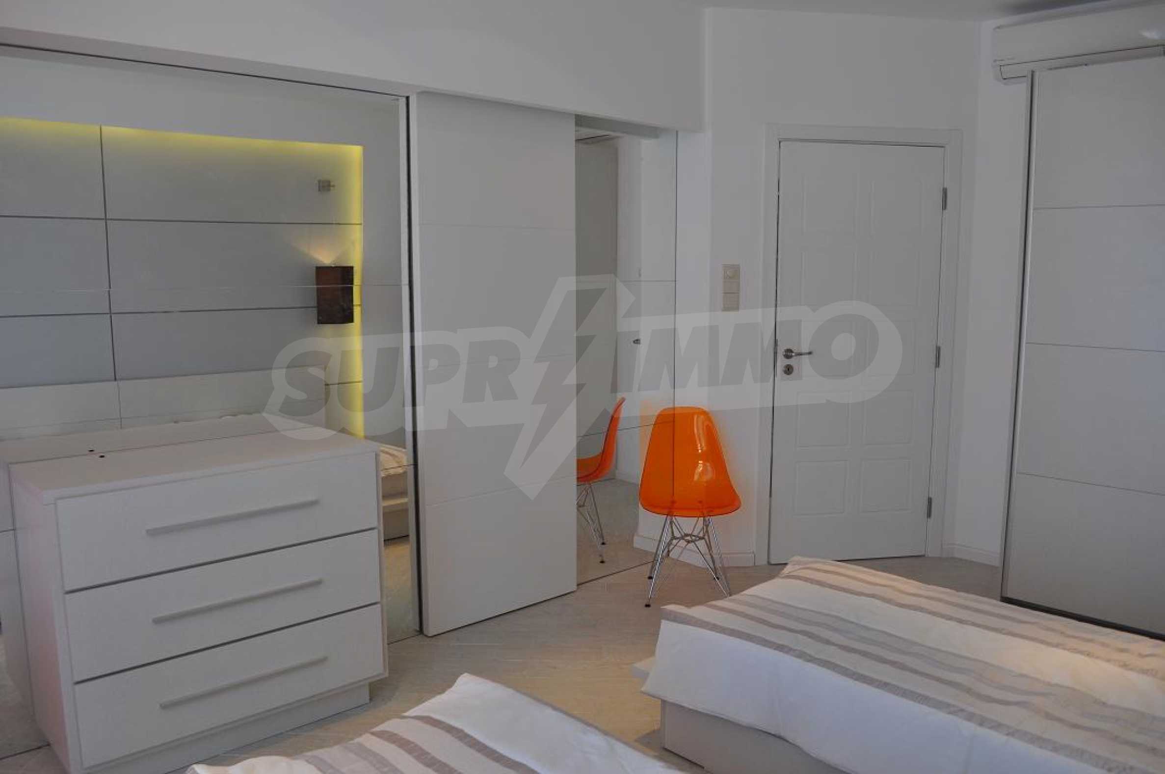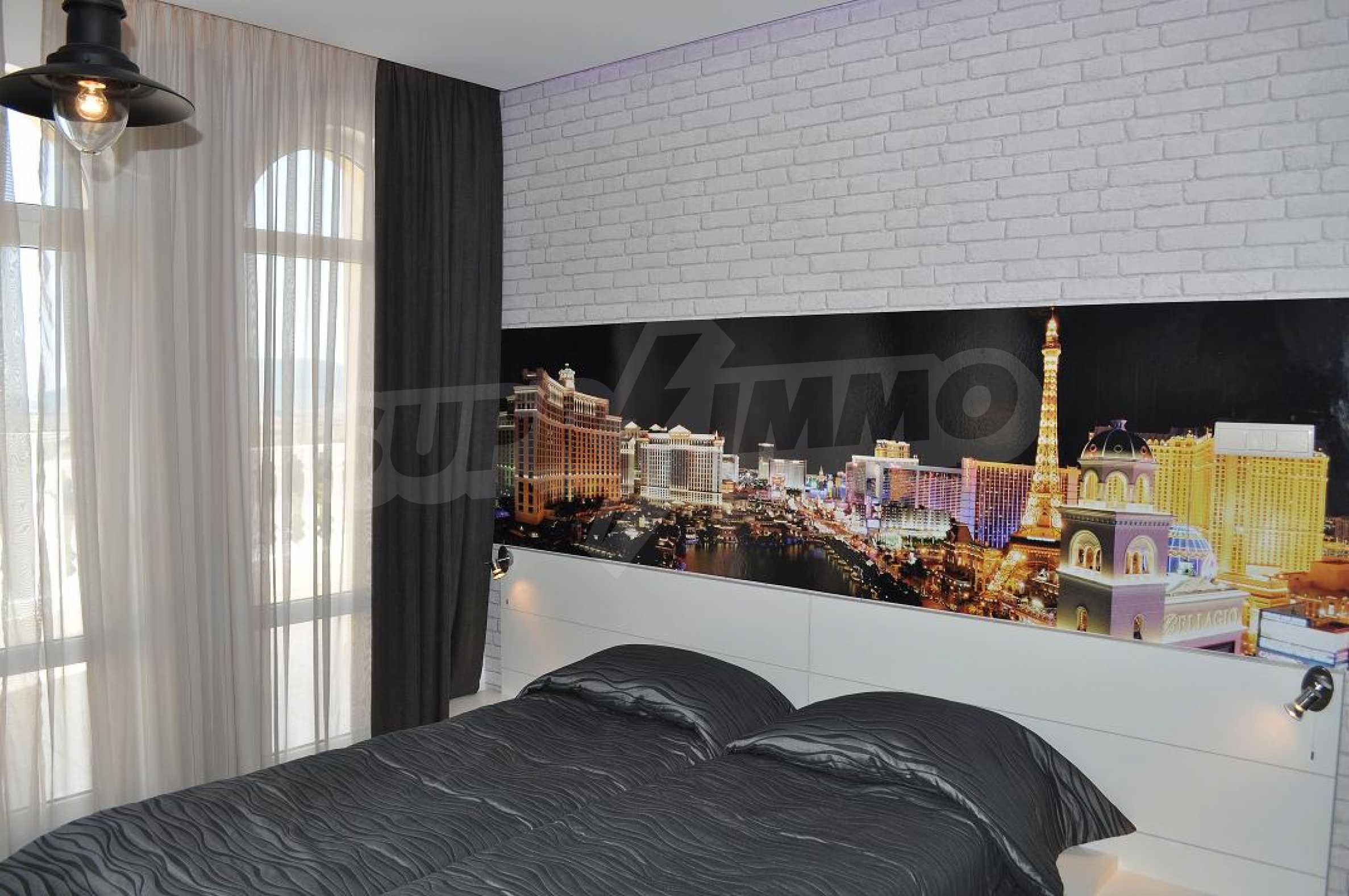 Villa "Sinatra" has 3 bedrooms with double beds and 2 bedrooms with 2 single beds, offering maximum comfort and accommodation for 10 guests. Each bedroom is luxuriously furnished in the style of one of the icons of Las Vegas or symbols of the city, with its own bathroom and access to a terrace. Three of the bedrooms have access to a large sunny veranda with a wonderful panoramic view of Albena.