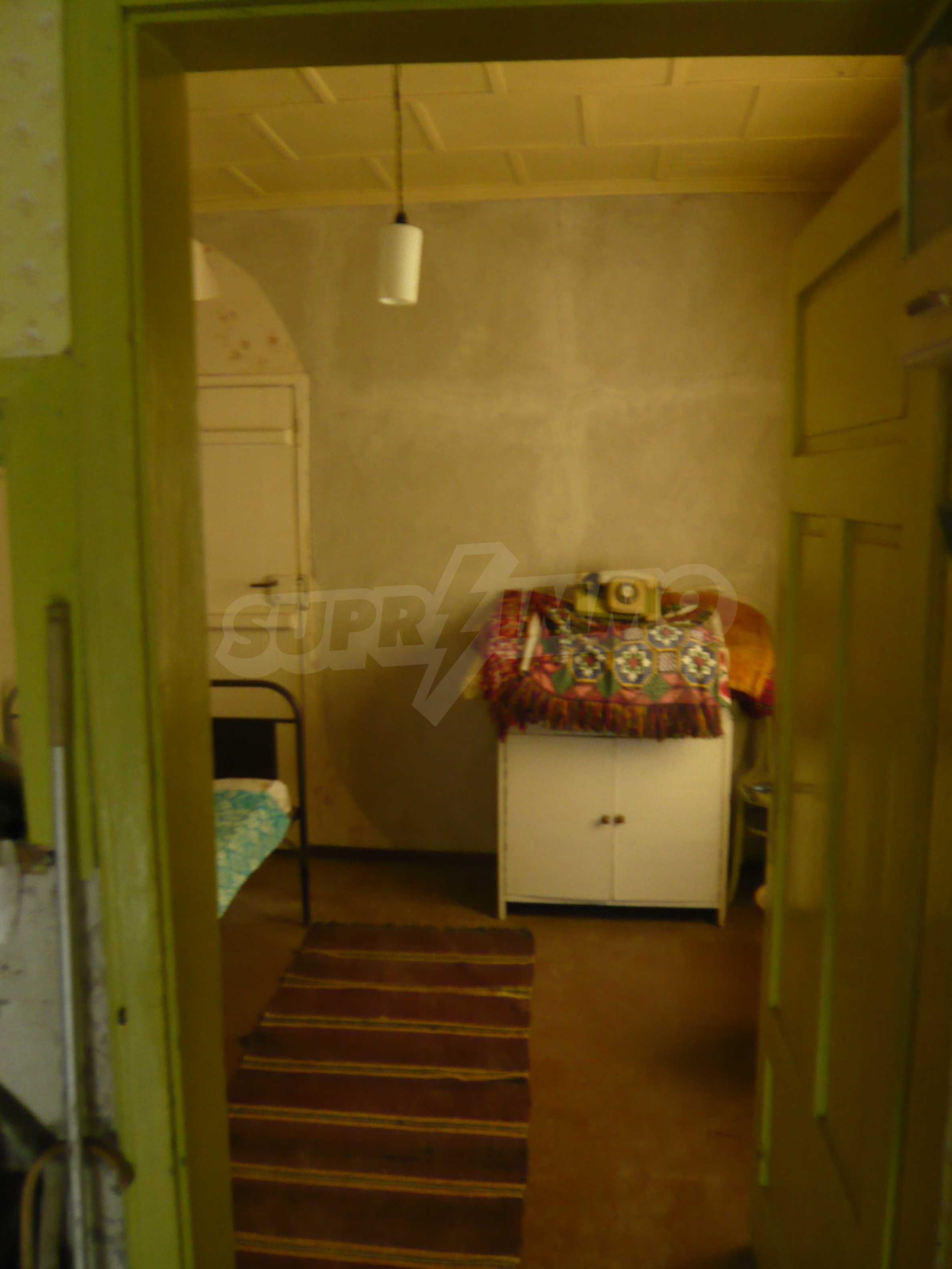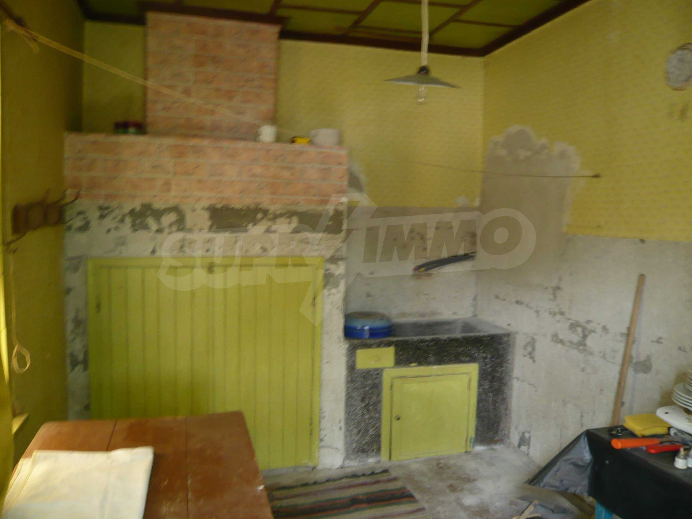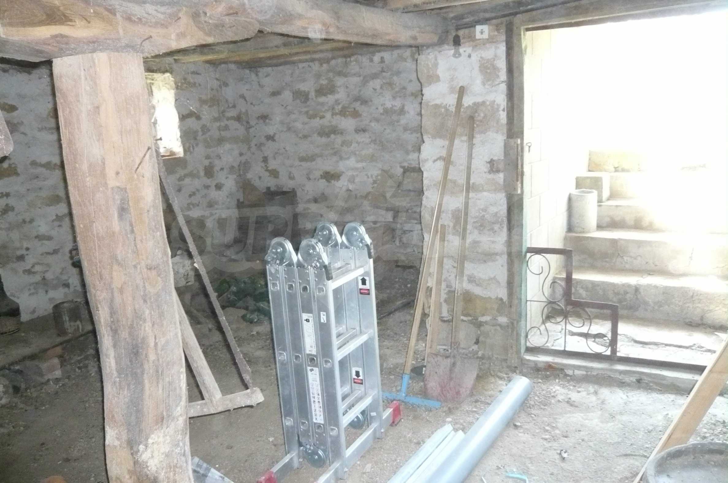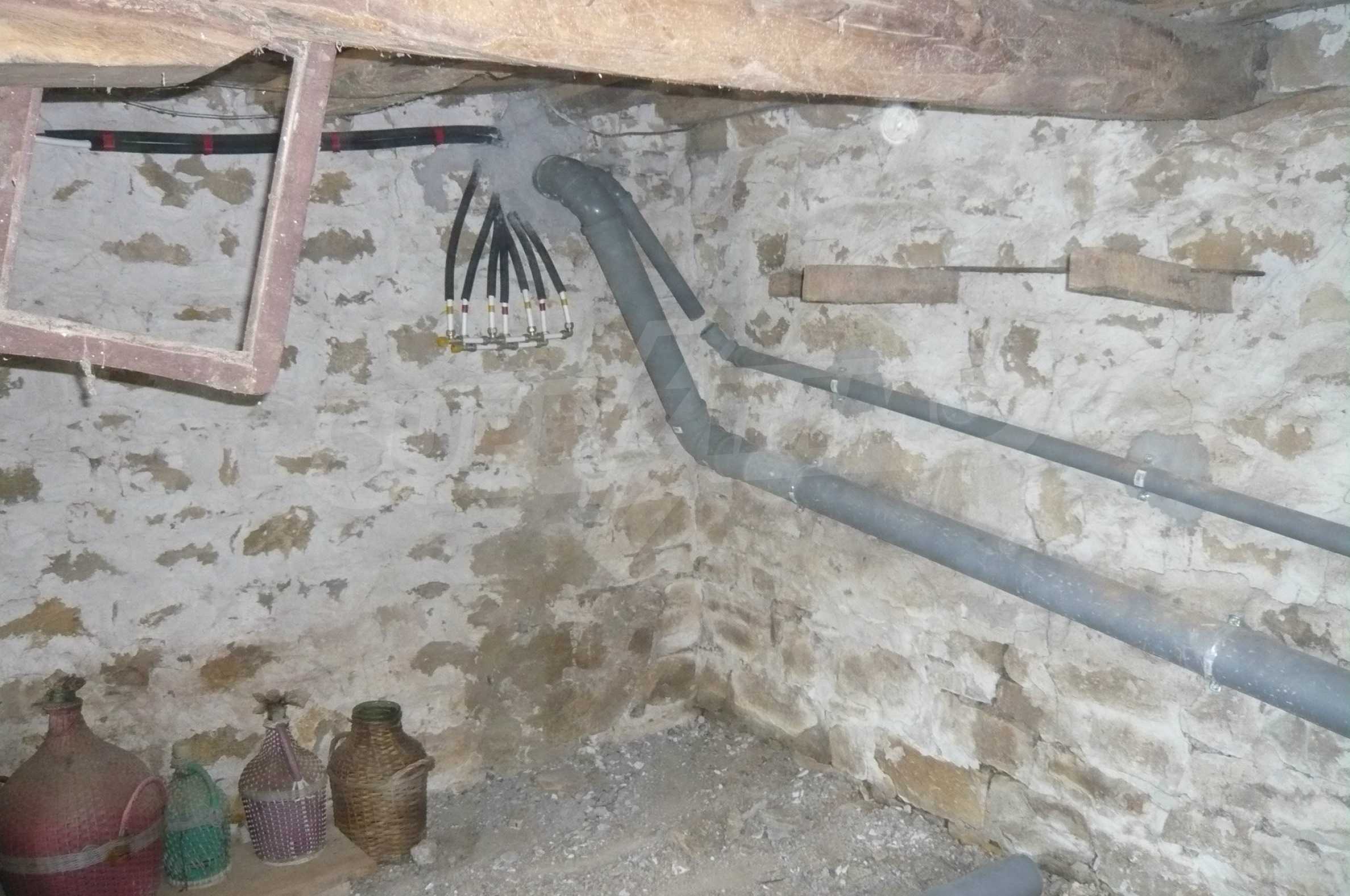 The area in which the village is located is hilly with fertile land. The village is big and well developed with about 800 permanent residents. The village offers all necessary amenities - shops, restaurants, post office and doctor office. The house has two levels with a total living area of 80 sq. m. The first floor is semi-underground and consists of a spacious cellar with stone walls, which can be easily transformed into a typical "tavern" or additional living space of another type. On the second floor there is a kitchen, living room, hallway, two bedrooms and a premise for bathroom and toilet which has all water and electricity connections and new plastic boards’ walls. The yard is spacious with a size of 2,200 sq. m. with many fruit trees, a well for irrigation needs and outbuildings in excellent condition. Electricity and running water are available in the property. The center of the village where you will find shops is located about 150 meters from the house.
