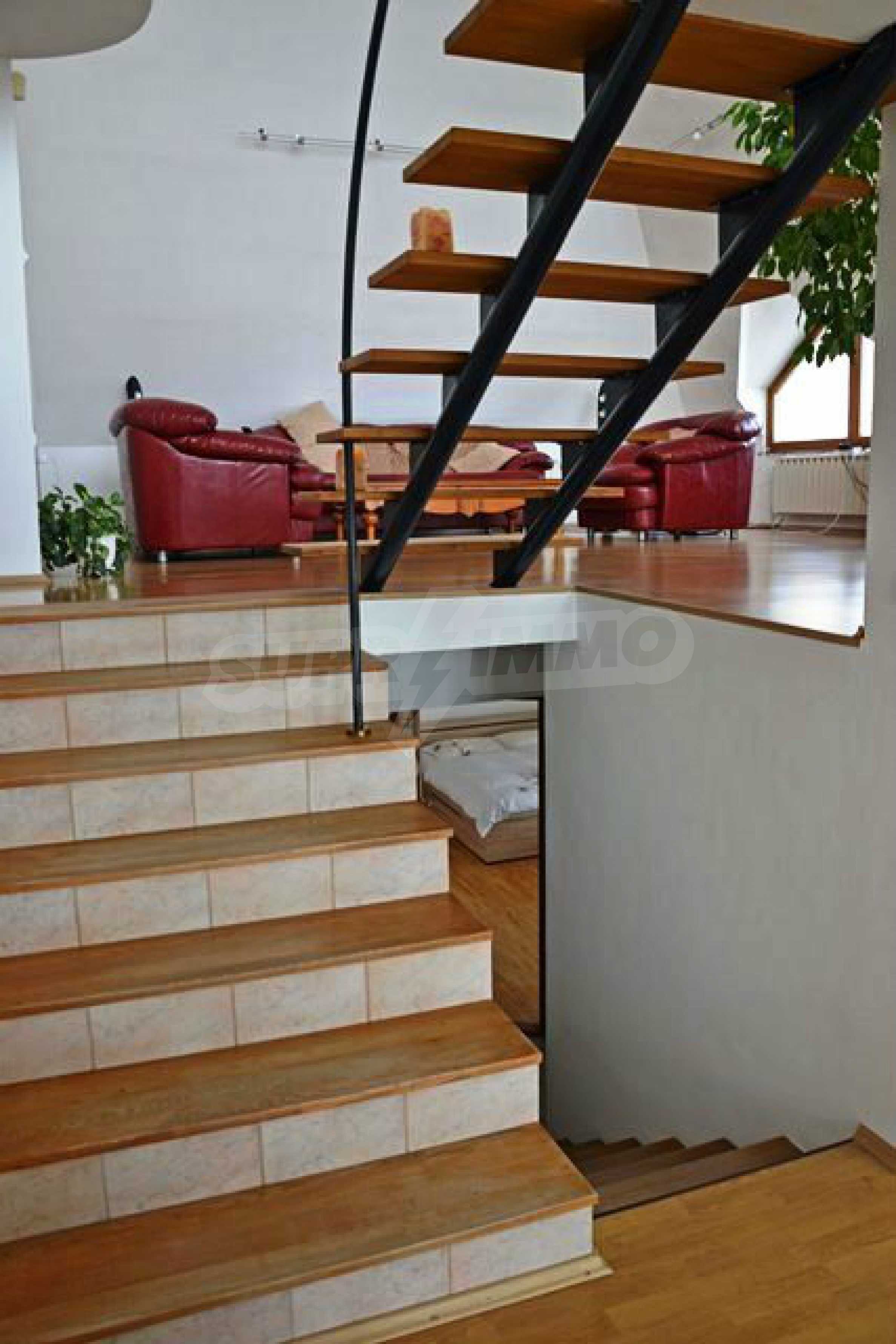 On the first level are located two bedrooms and one smaller room which can be used as an cellar or another bedroom. At this level there is also a laundry room and bathroom and balcony.