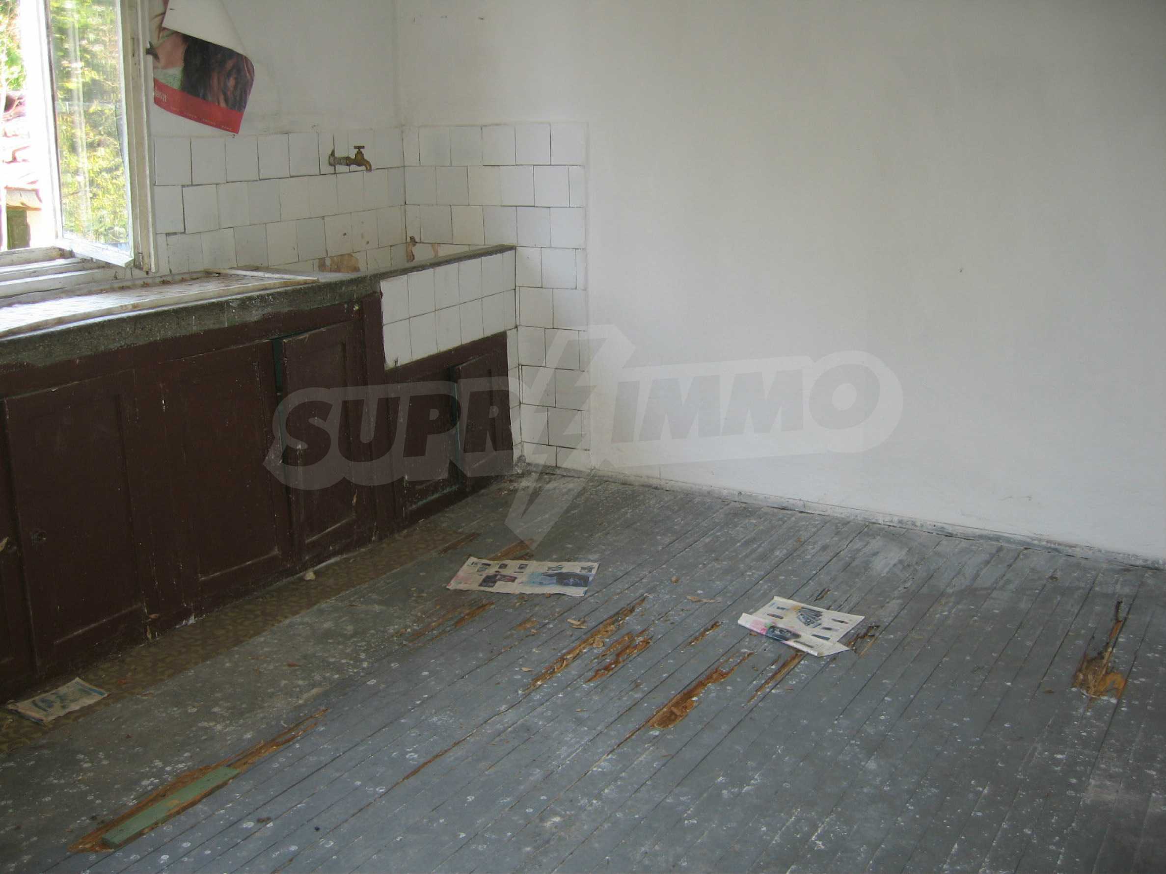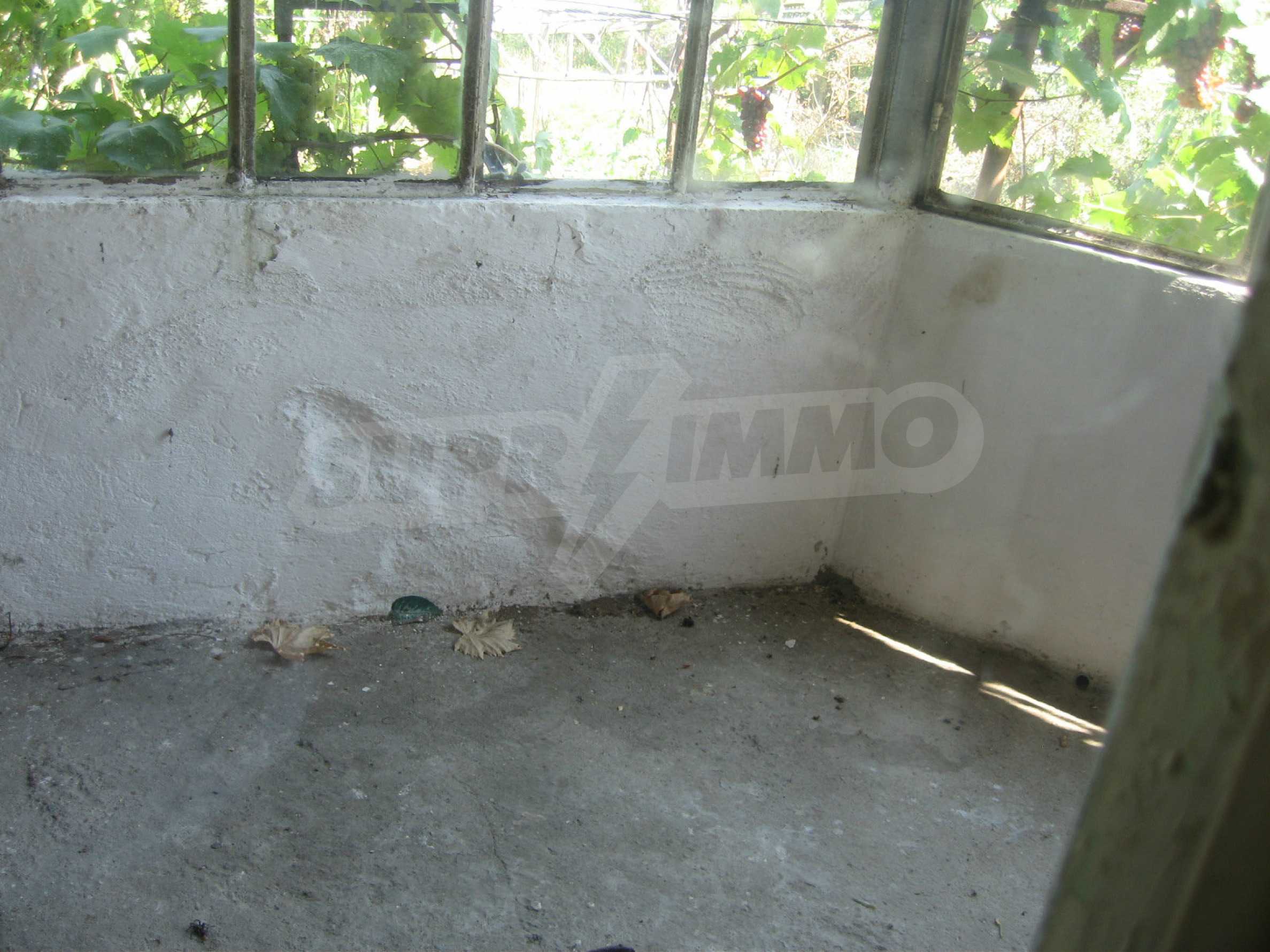 The dwelling is finished with brick-trimmer joists construction and comprises of an hallway, a living room, a bedroom, a kitchen and a balcony, ideal for transforming into an internal bathroom with WC. The floors and the window frames are wooden. The house is fully equipped with electricity and water (inside and outside - a well). The property is equipped with an outdoor toilet. It is in need of repairs and of internal transformation and upgrading to the taste of the client.