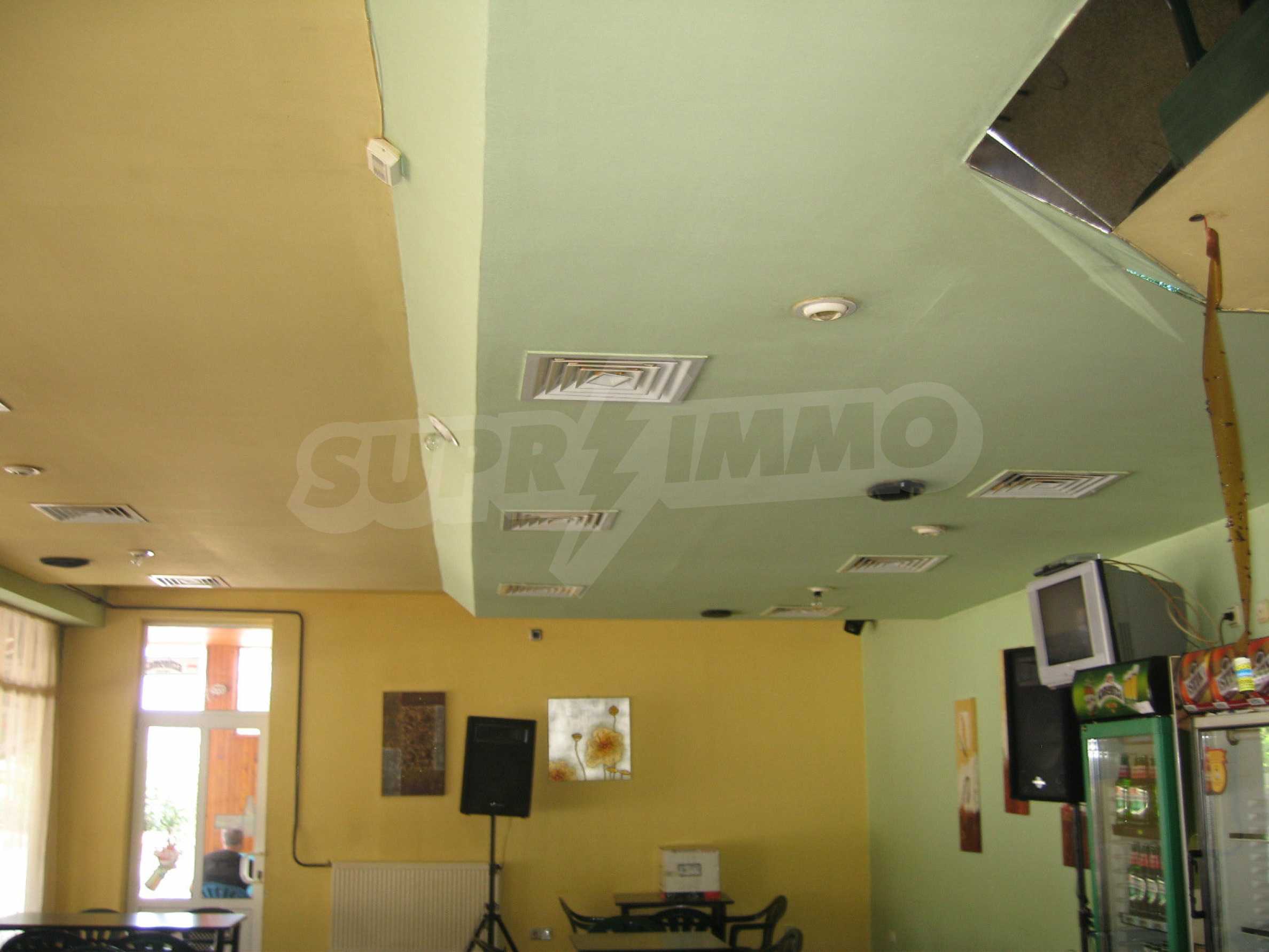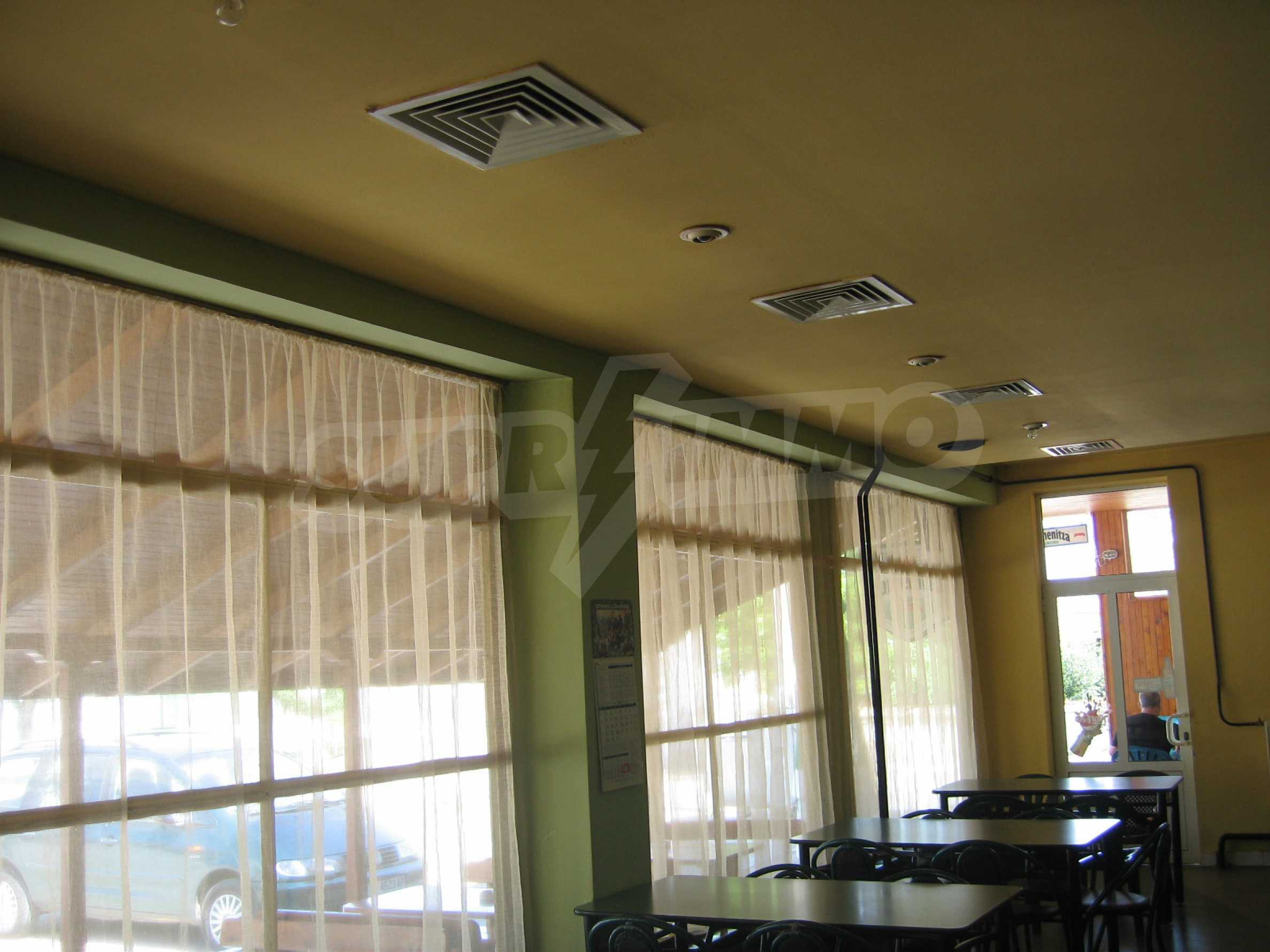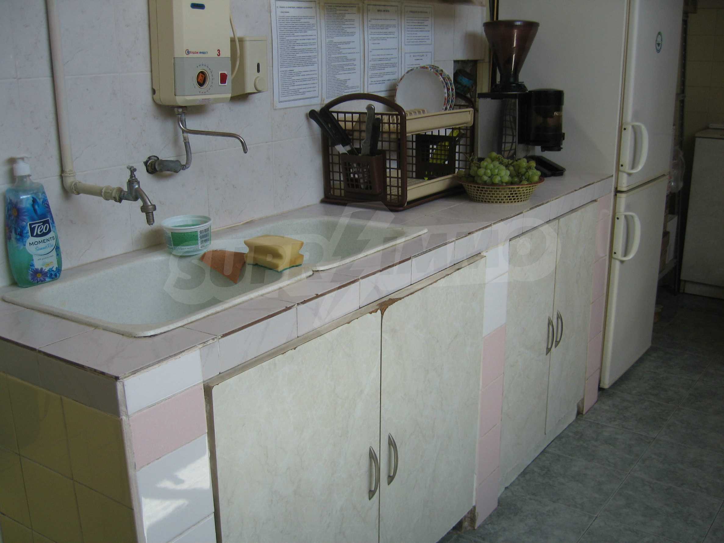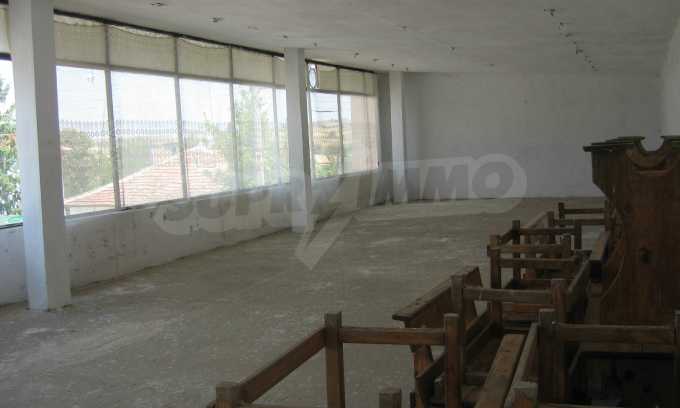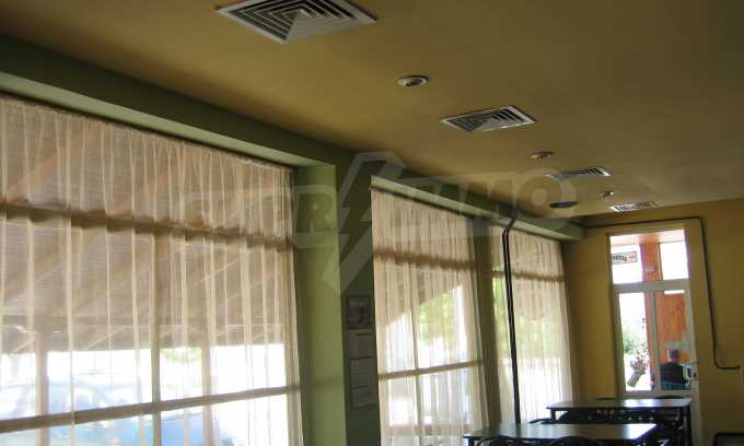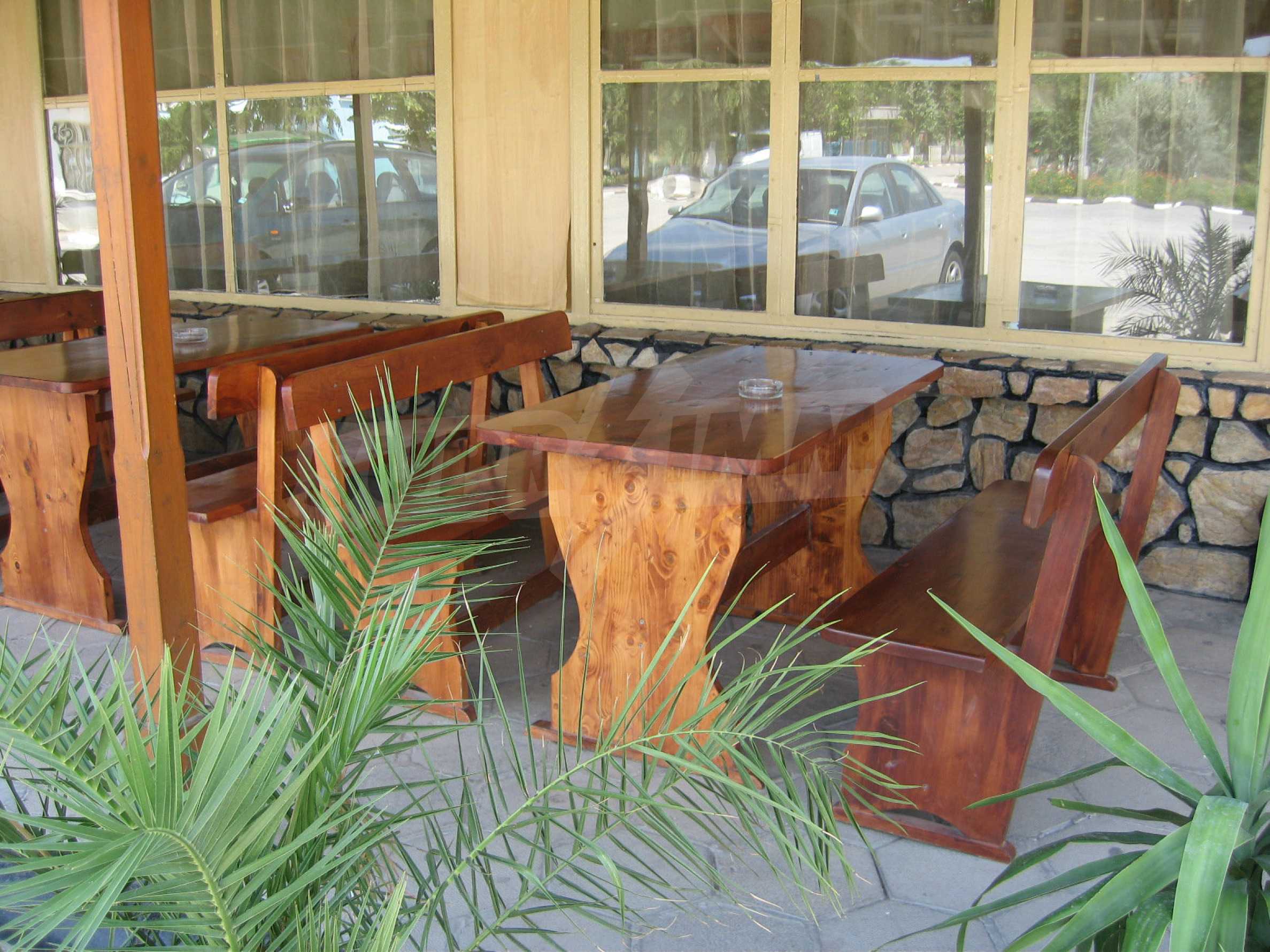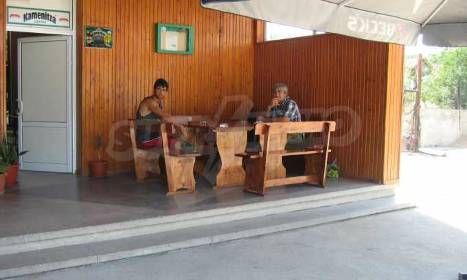 The building 2 (144 sq.m.) has 72 sq.m. on each floor. The first floor is an operating cafe-restaurant, consisting of a hall with a bar, a kitchen (20 sq.m.), a storage room (20 sq.m.), a boiler premise (3 sq.m.), a toilet (8 sq.m.). It is sold with all the equipment and 40 seats inside and 40 seats outside. The property is supplied with air conditioning, central heating, alarm system, ventilation and has liquor license. The second floor consists of a hall and a room, which are not used currently. The area is suitable for the construction of hotel rooms.