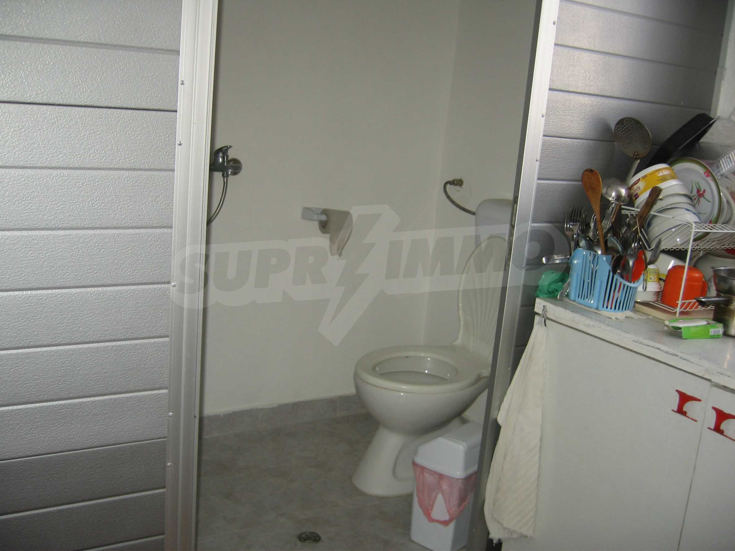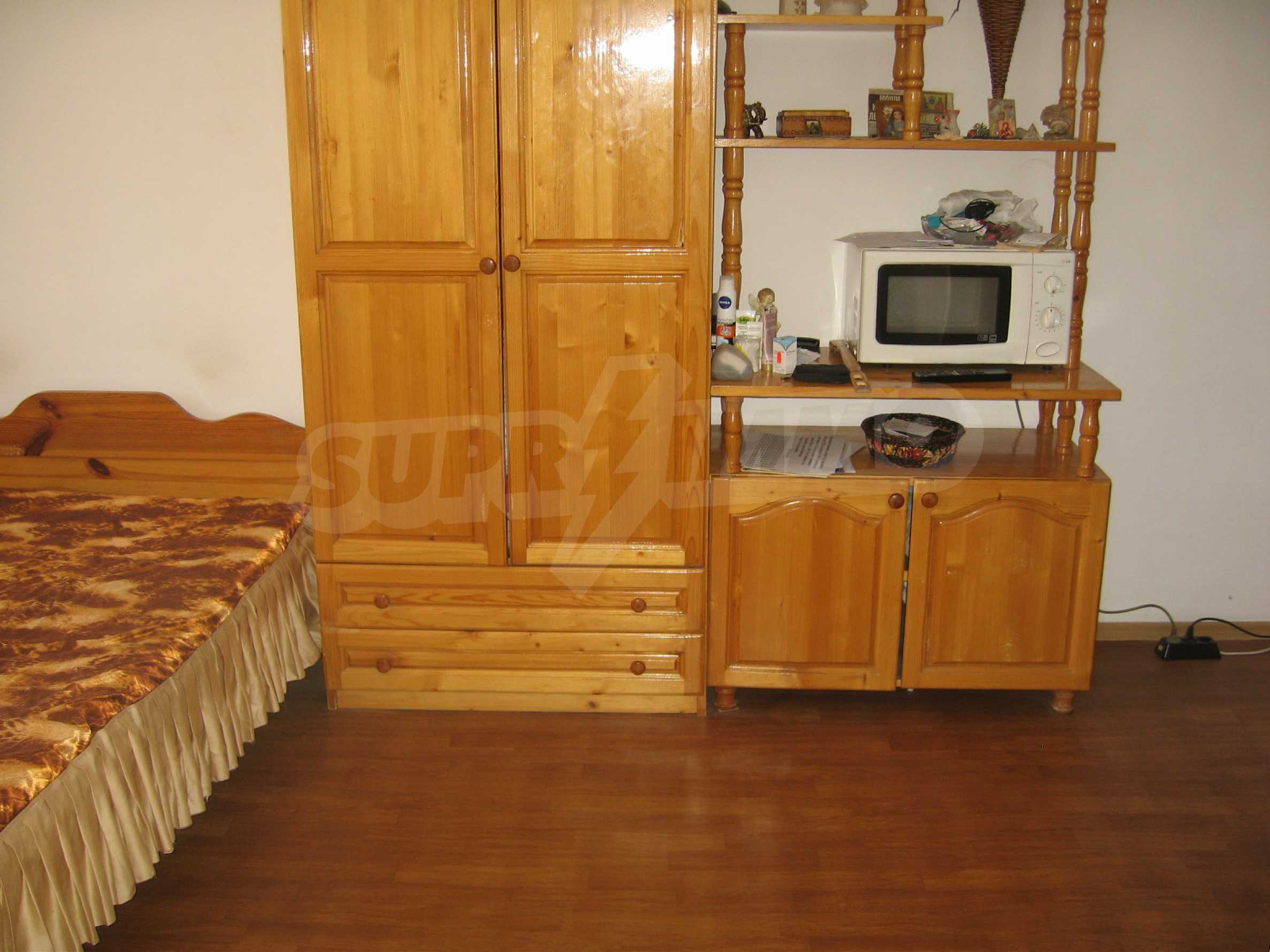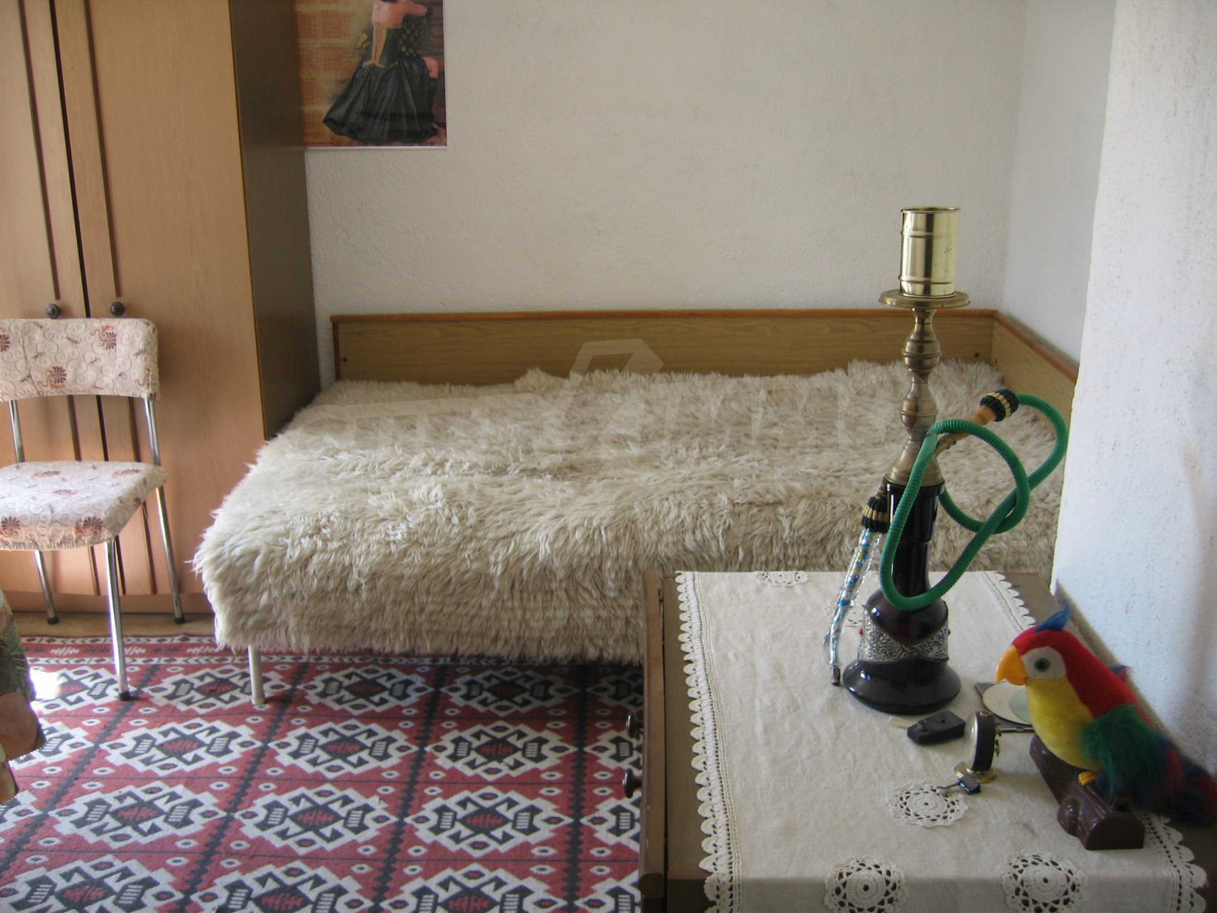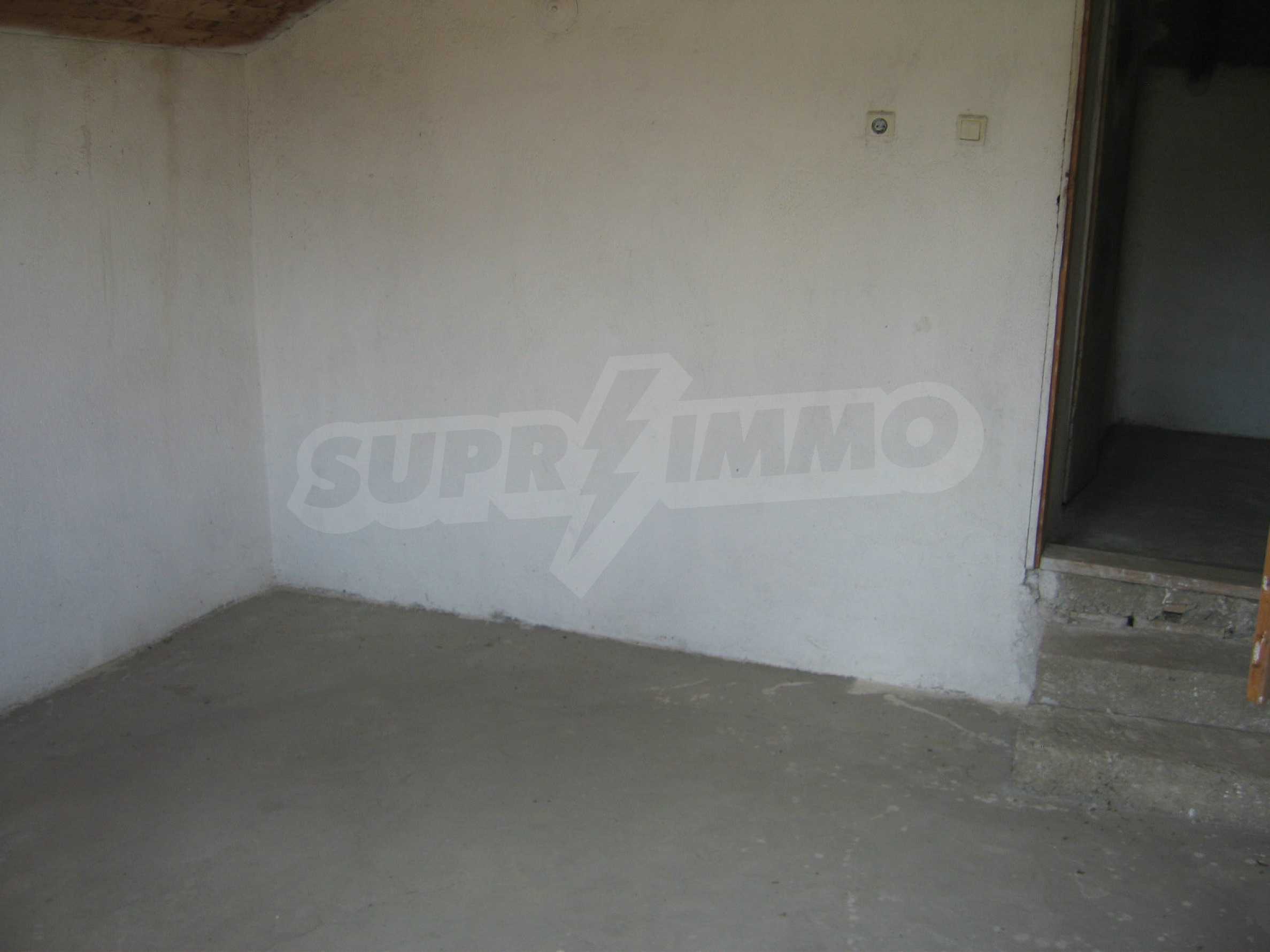 Second floor - a hallway, two bedrooms, a premise for bathroom, a storage room, a large balcony. The window frames are wooden and the walls with plasterboard. This floor is in need of finishing of the flooring and the bathroom.