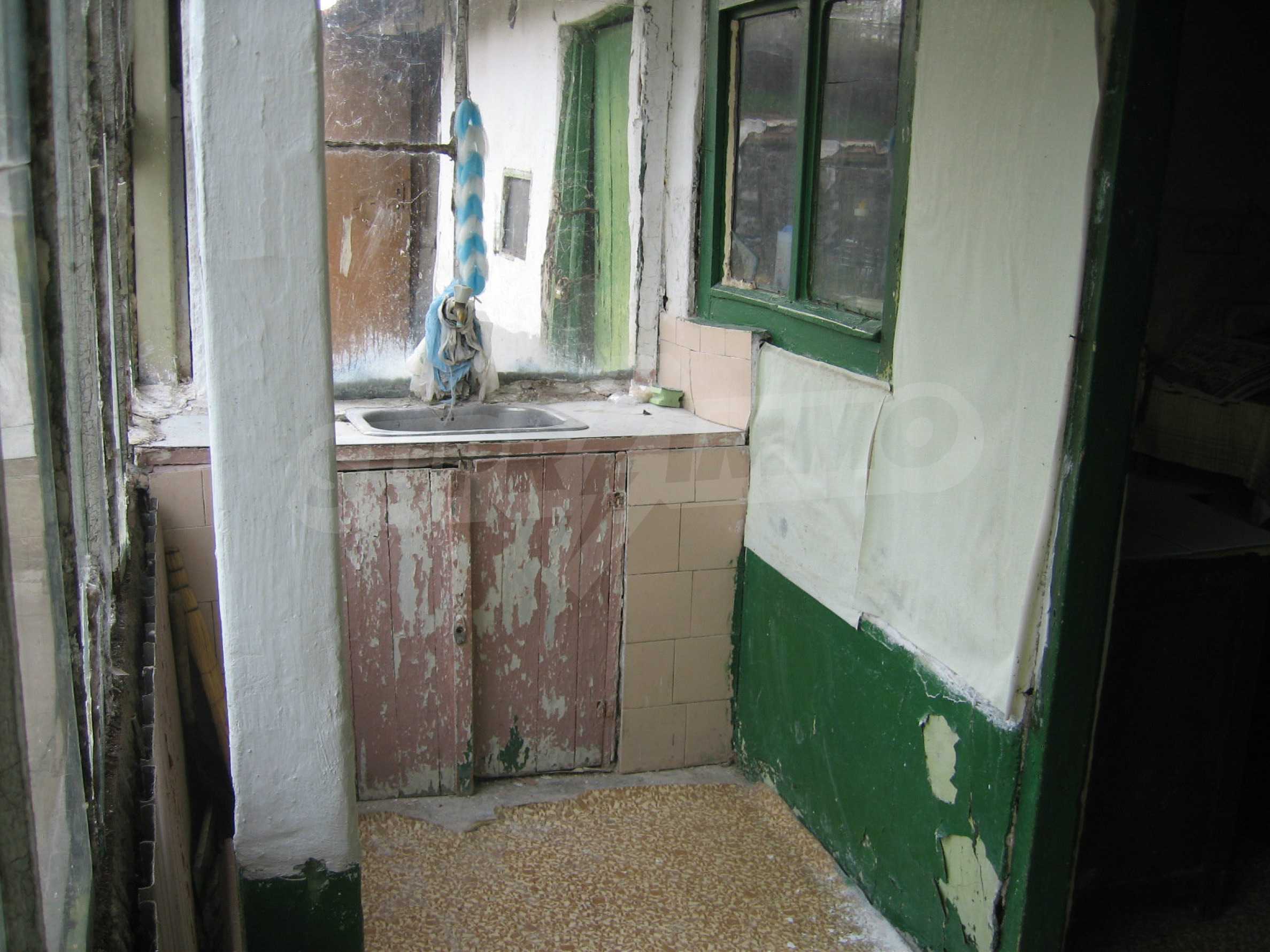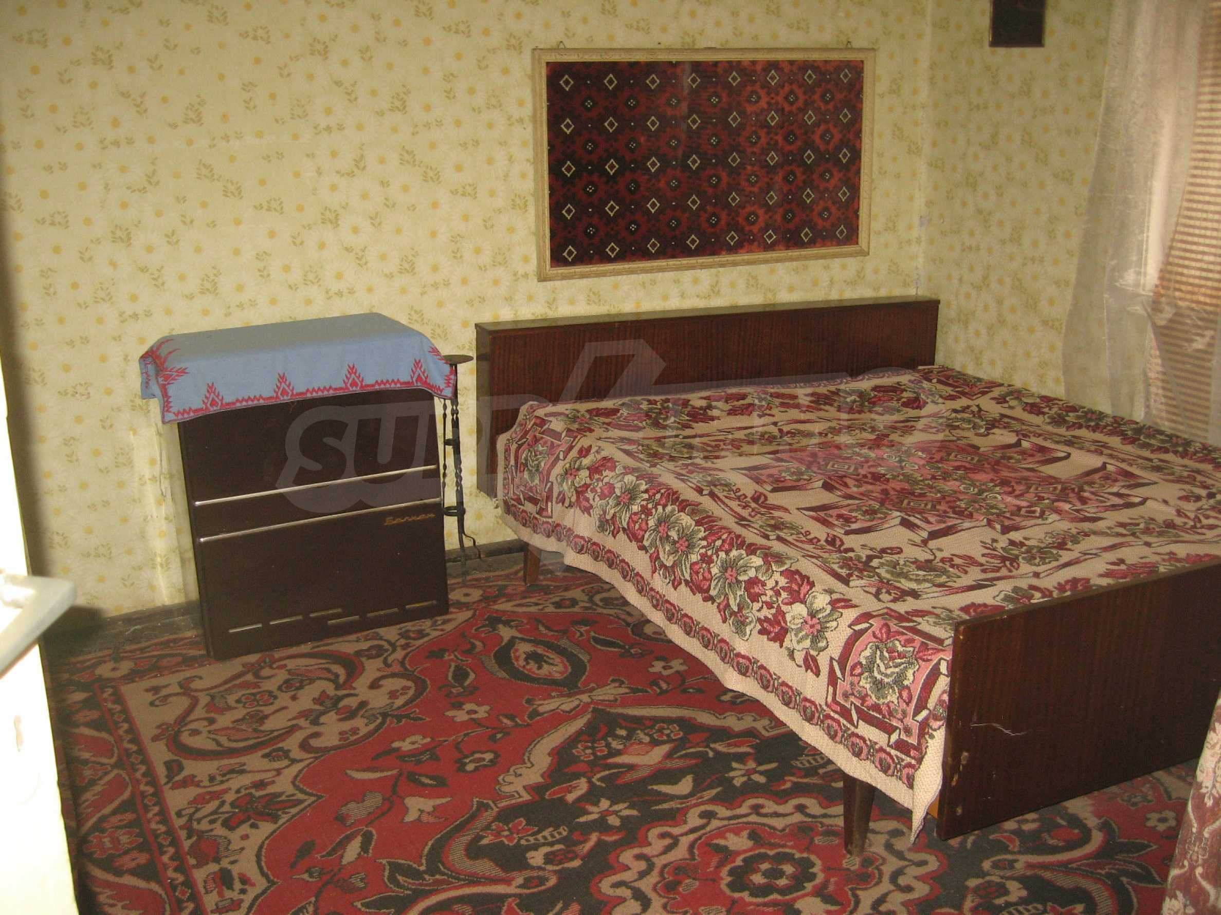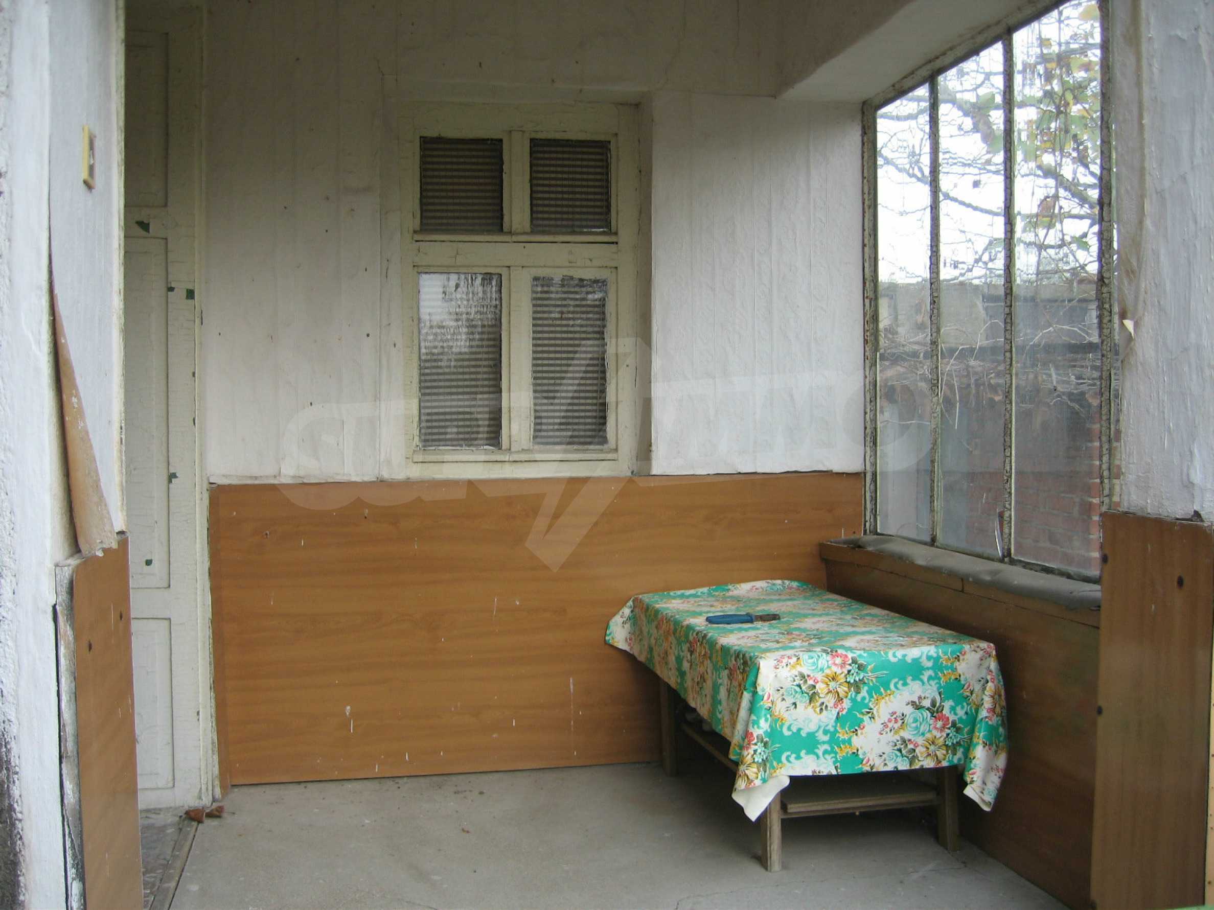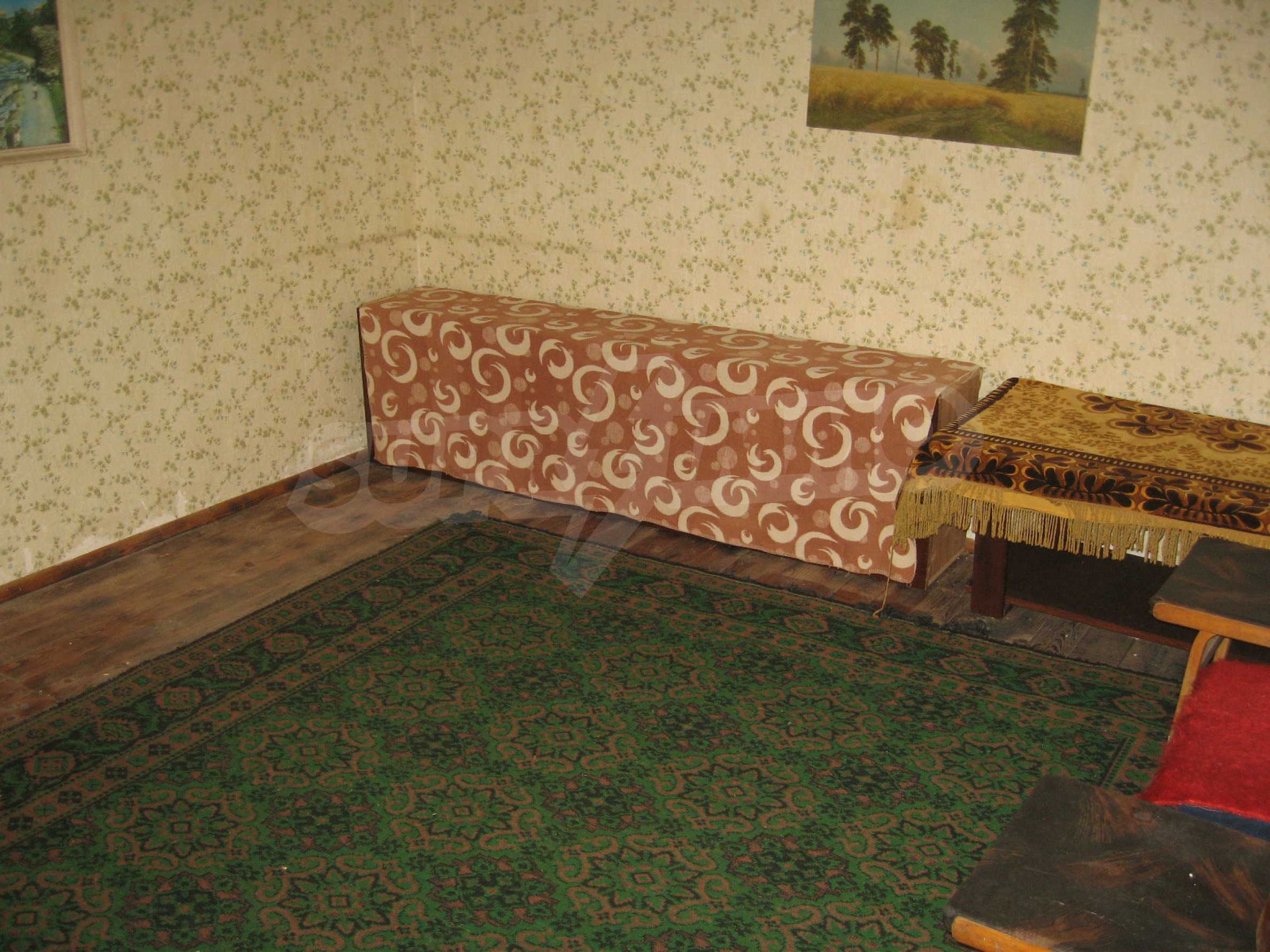 The house was completed in 1963 with brick-trimmer joists construction and sunny southern disposition. The living area includes a summer kitchen of two rooms and a hall. The main house consists of a hallway, a living room, a room, a bedroom with wooden flooring, walls with old wallpaper and wooden window frames. The property has electricity, water outside, an outdoor bathroom and WC. The dwelling needs repairs, as well as the making of a new bathroom.