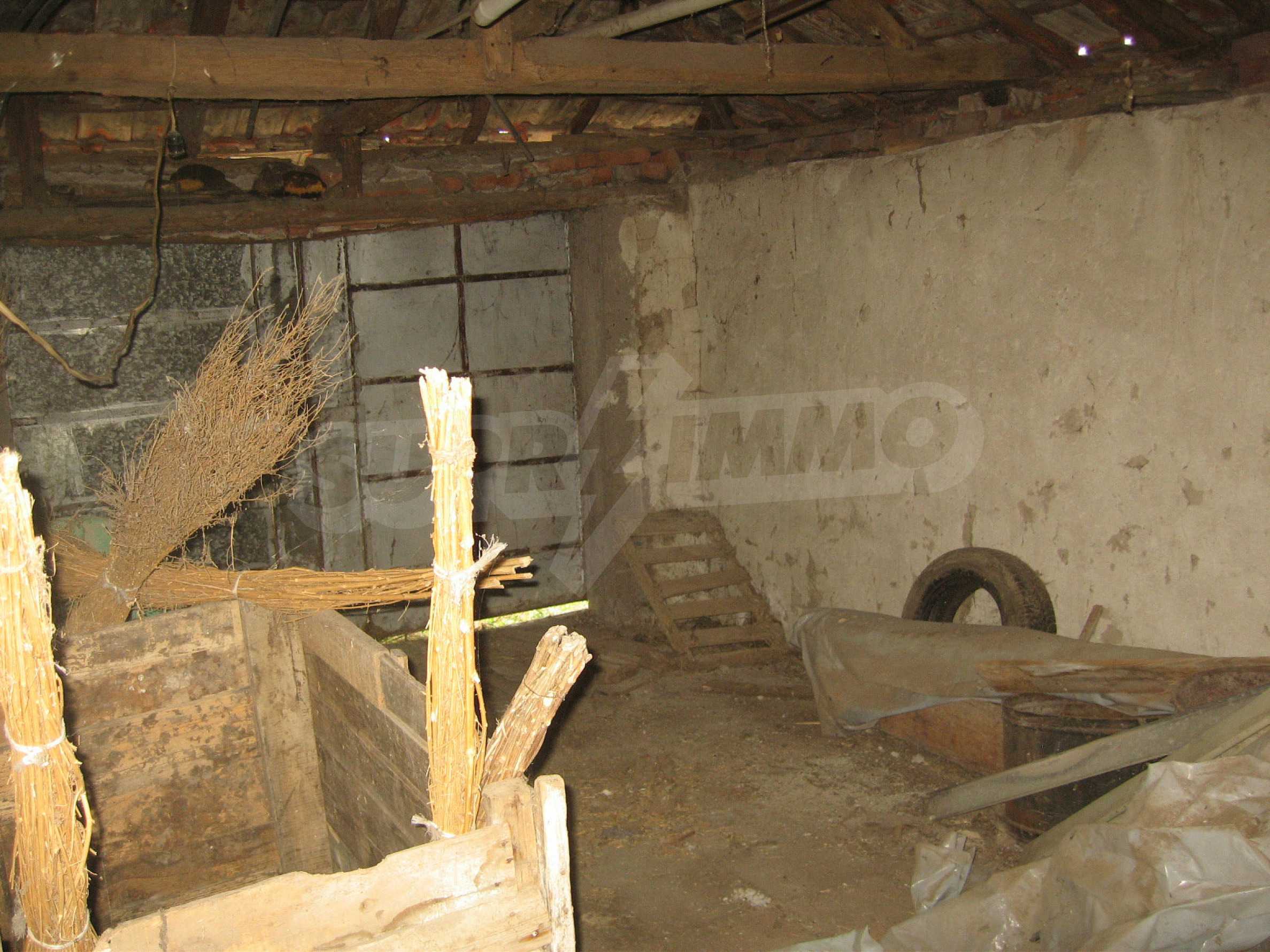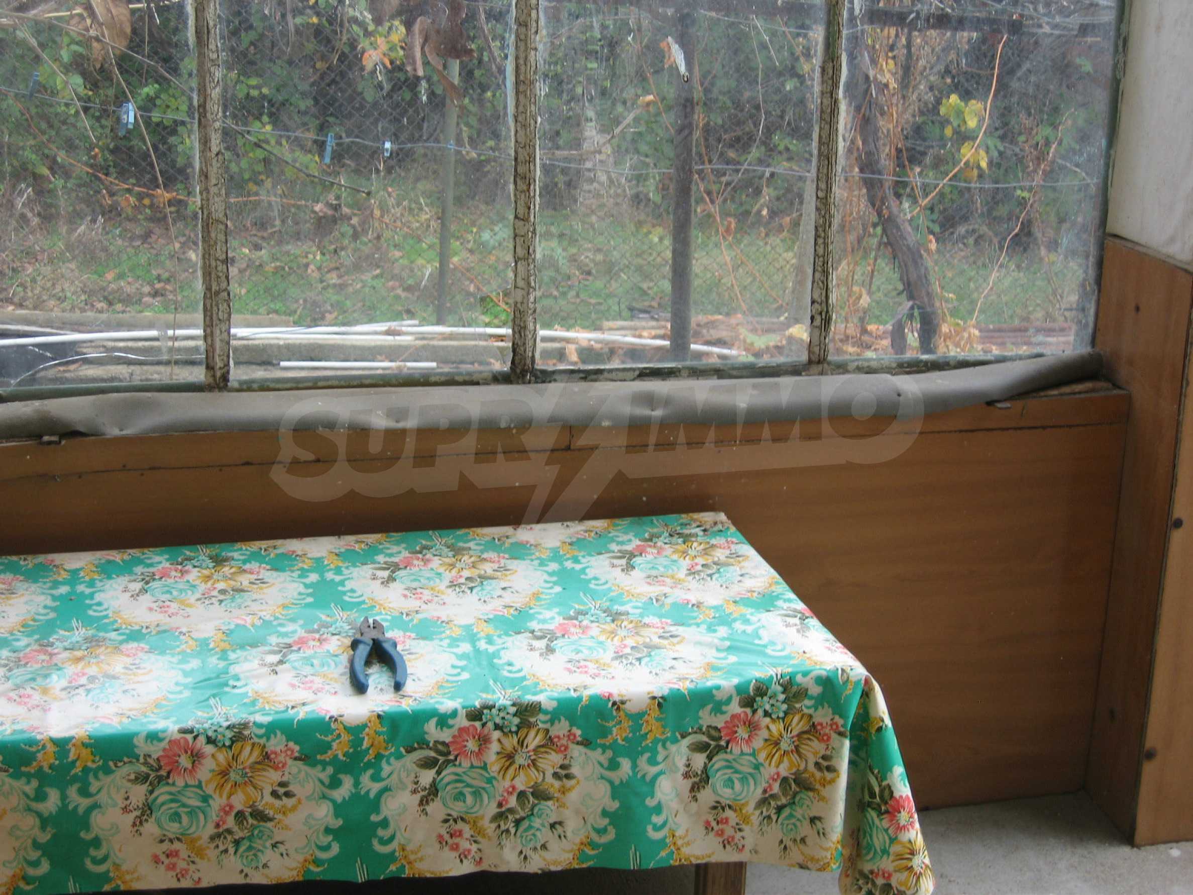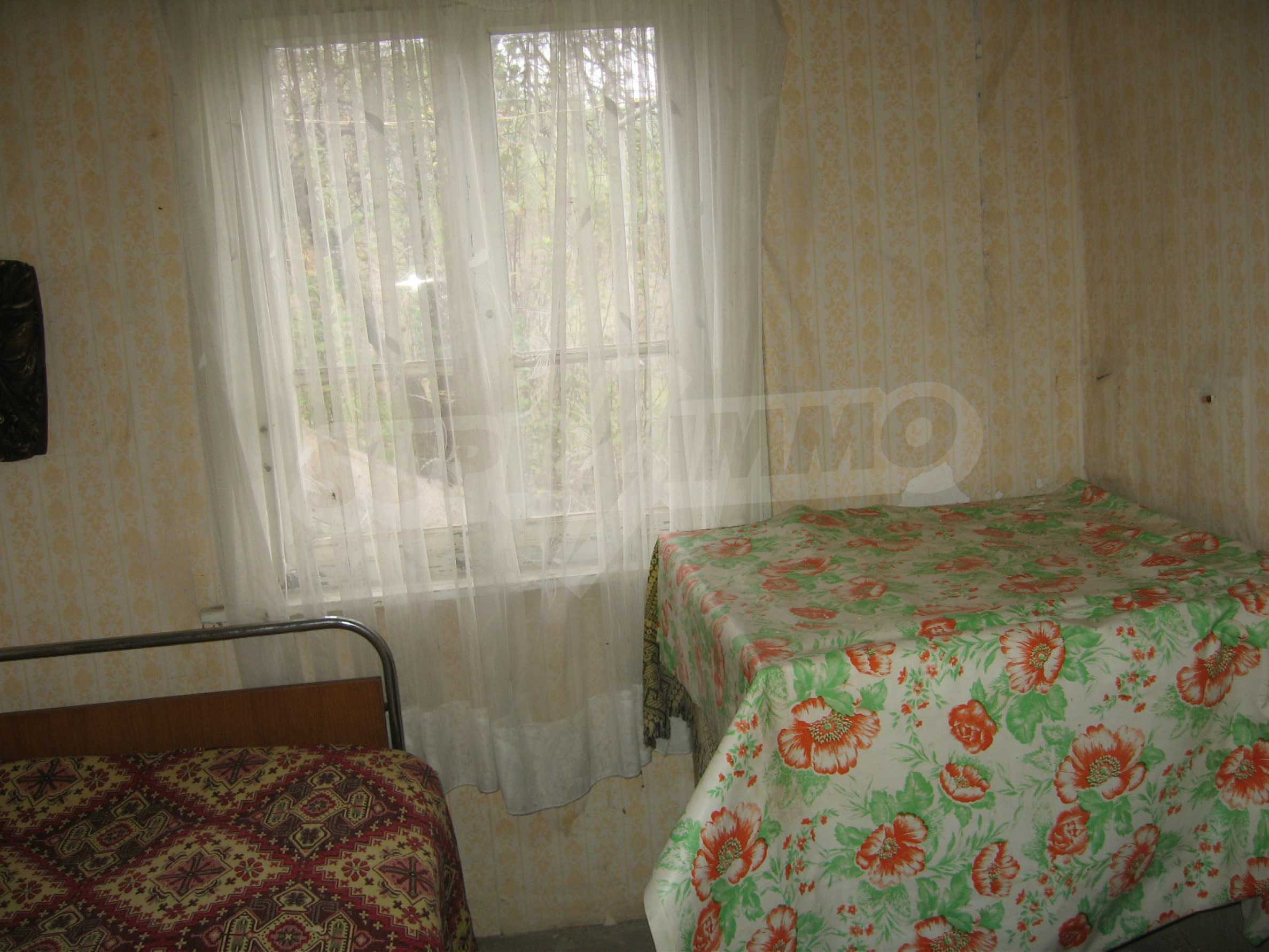 The garden is planted with fruit trees and vines and has a water drilling and shed. The property overlooks the neighboring house. It is located at an asphalt road, in the village center, equipped with shops, cafes, health service and regular transport. The hilly area is suitable for hunting, fishing (the dam Ovcharitsa is 3 km away) and for rural tourism.