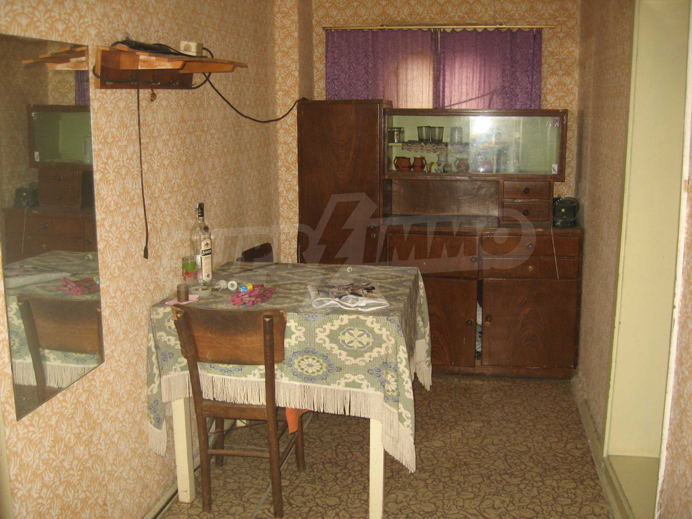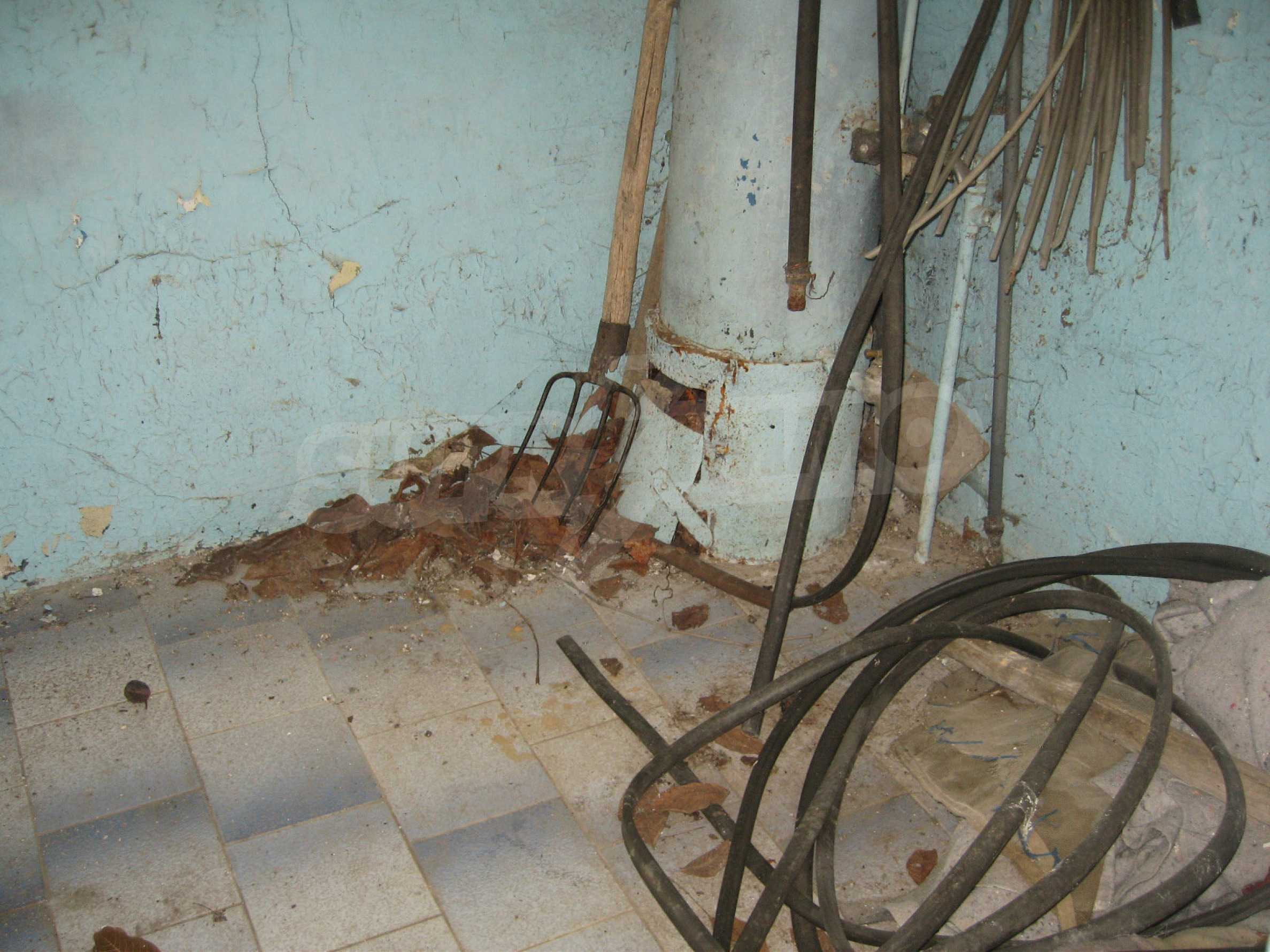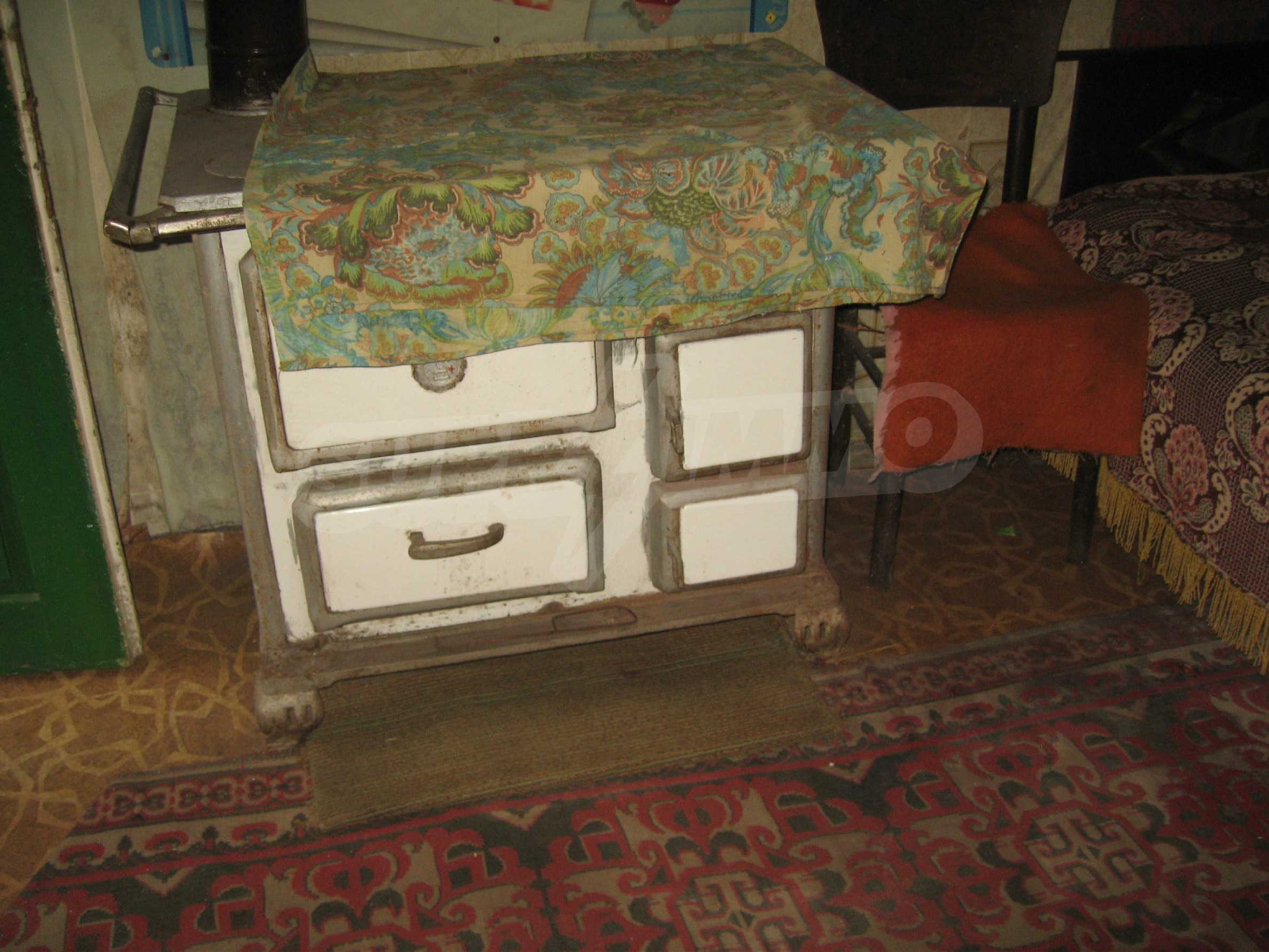 The garden is planted with fruit trees and vines and has a water drilling and shed. The property overlooks the neighboring house. It is located at an asphalt road, in the village center, equipped with shops, cafes, health service and regular transport. The hilly area is suitable for hunting, fishing (the dam Ovcharitsa is 3 km away) and for rural tourism.