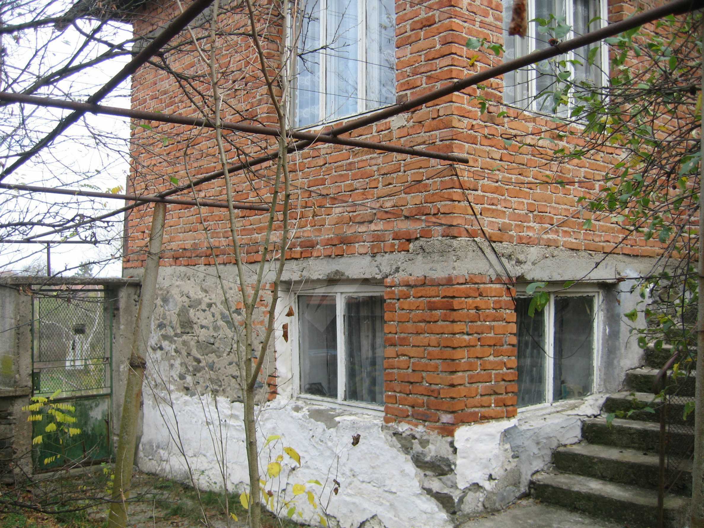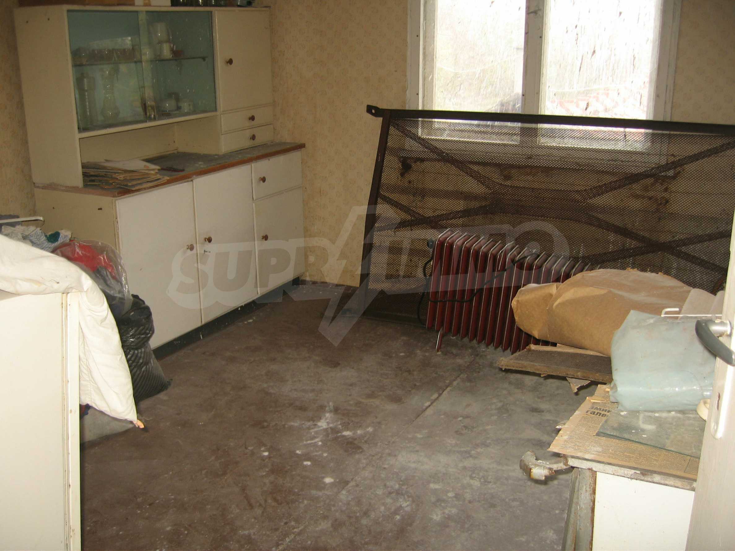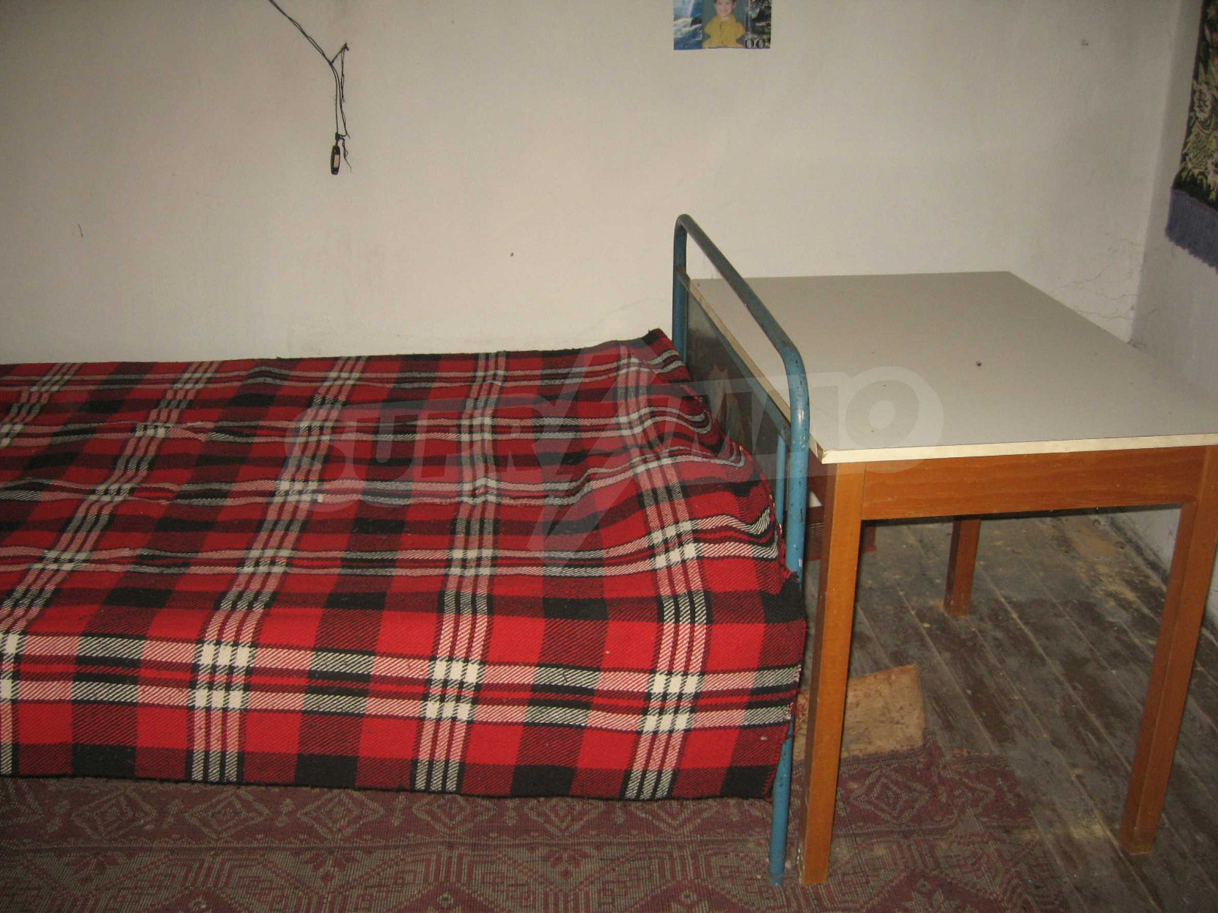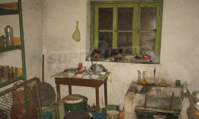First floor - a hallway, a living room, a storage area (equipped with water) and second floor - a hallway, two bedrooms, a living room, a terrace. The floors and the window frames are wooden and the plasters are old. The property has an outdoor toilet, electricity and water inside. It is heated by electricity and woods. The dwelling is in needs of complete renovation and modern furniture.