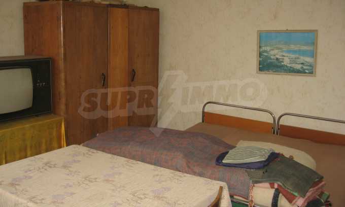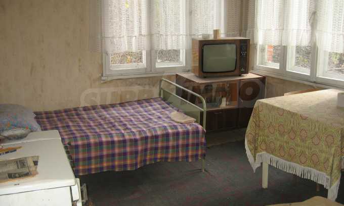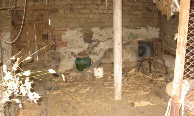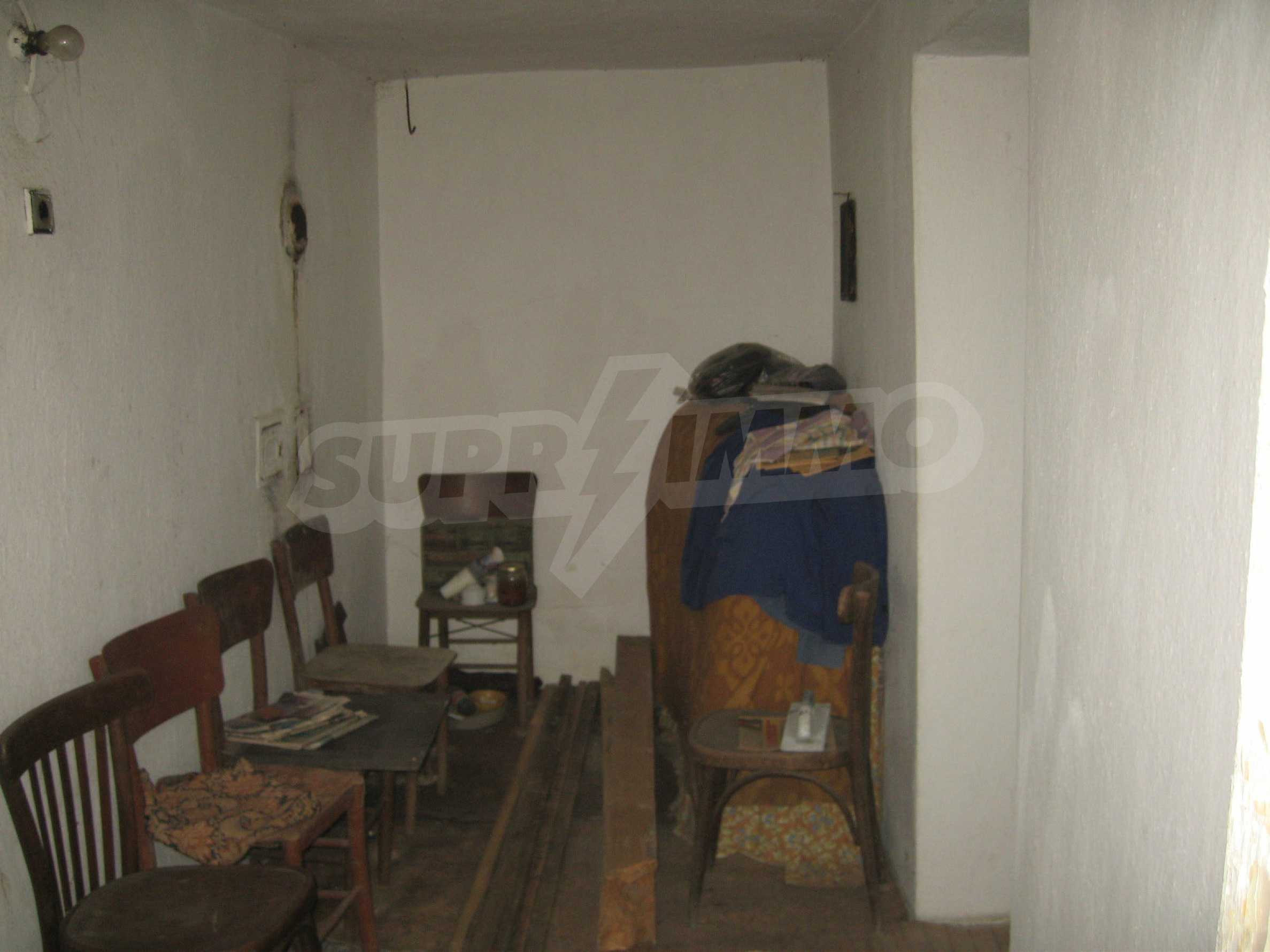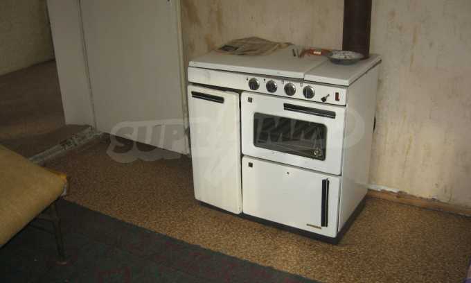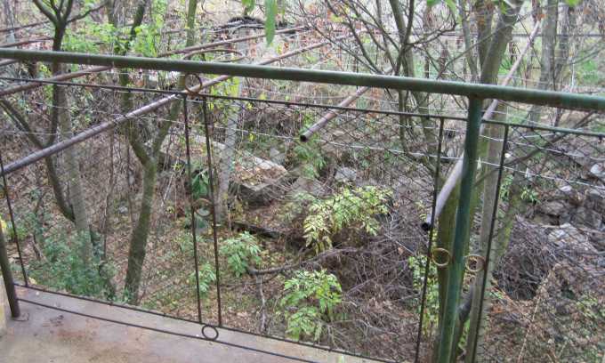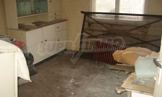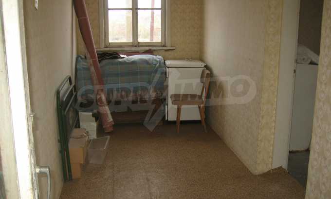 First floor - a hallway, a living room, a storage area (equipped with water) and second floor - a hallway, two bedrooms, a living room, a terrace. The floors and the window frames are wooden and the plasters are old. The property has an outdoor toilet, electricity and water inside. It is heated by electricity and woods. The dwelling is in needs of complete renovation and modern furniture.
