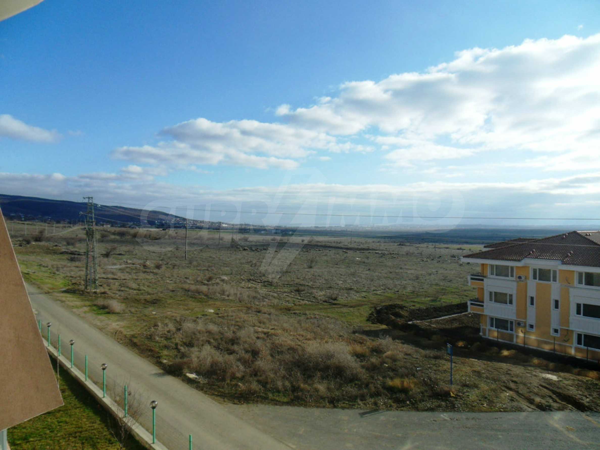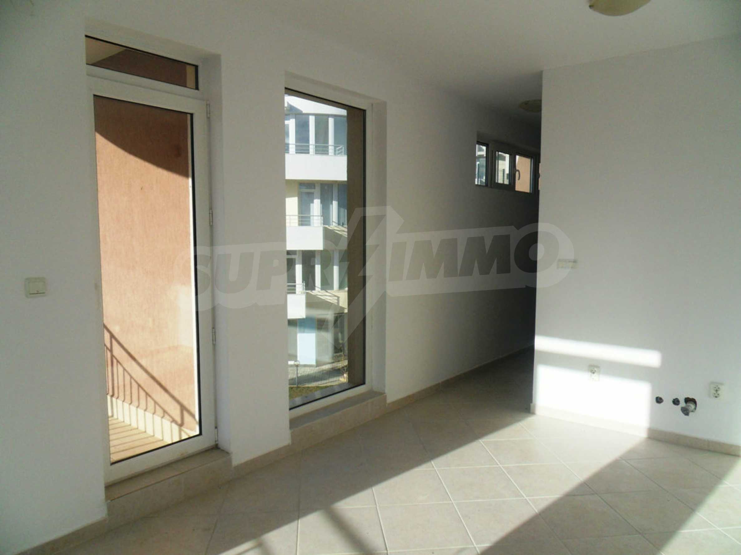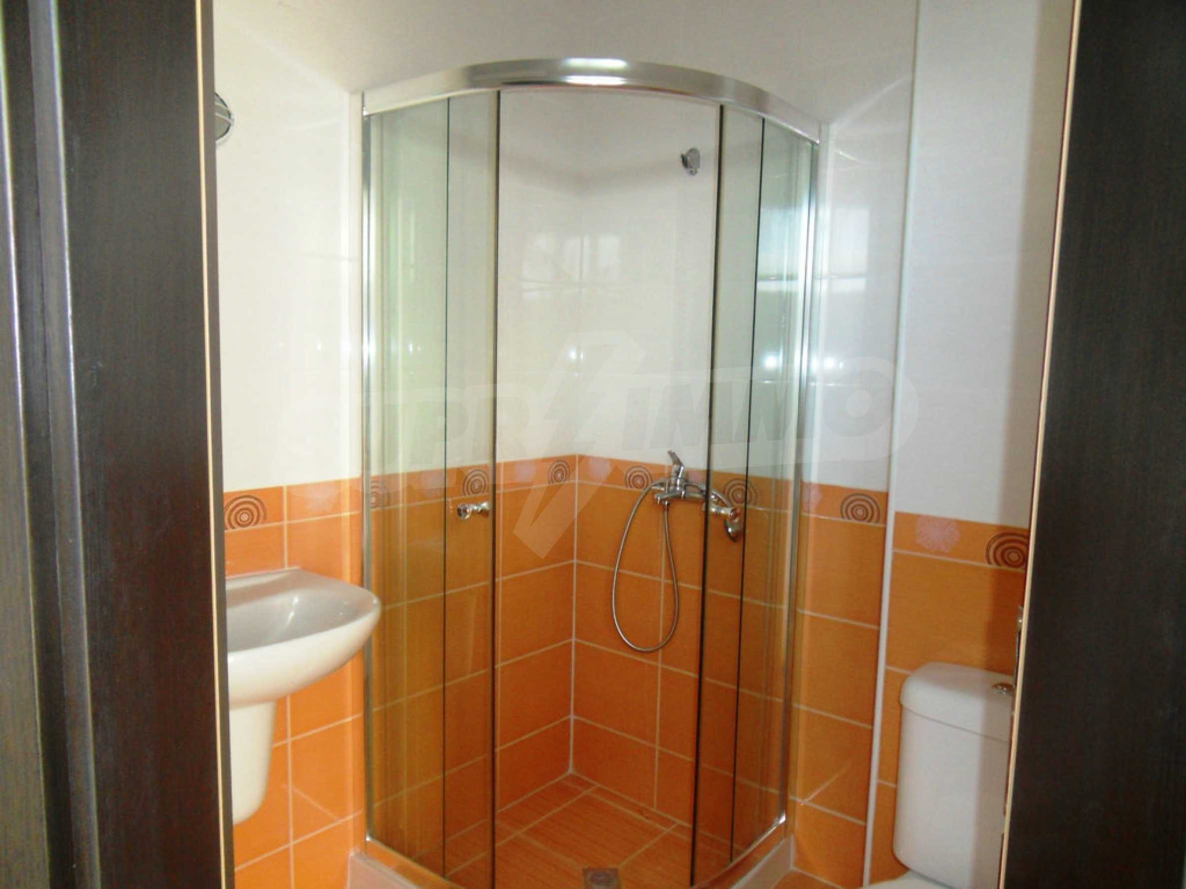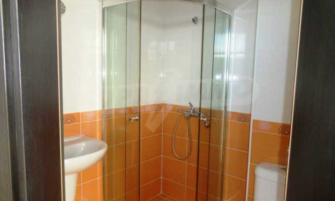 The apartment is with a floor space of 64,94 sq. m., is in top condition; it is for sale unfurnished. There is an open-plan kitchen with a living room, one bright bedroom, a bathroom with toilet, and two balconies with great views. It is situated on the second floor in building 1 of the complex. The property comes with equipped bathroom with shower cabin, sink & tab, toilet and shower. Ceiling and wall lamps are intalled too. The walls are plastered and painted with white latex paint.