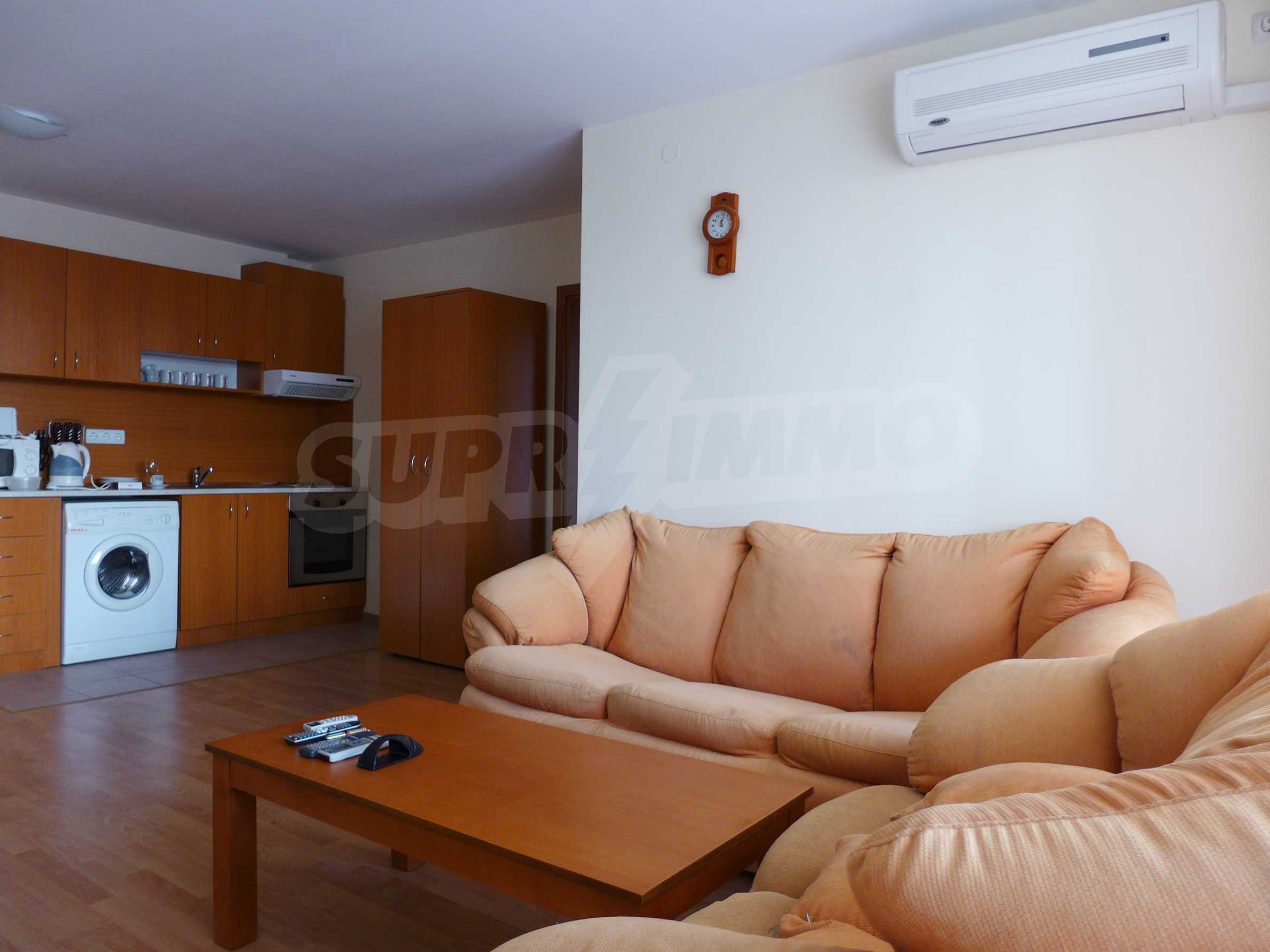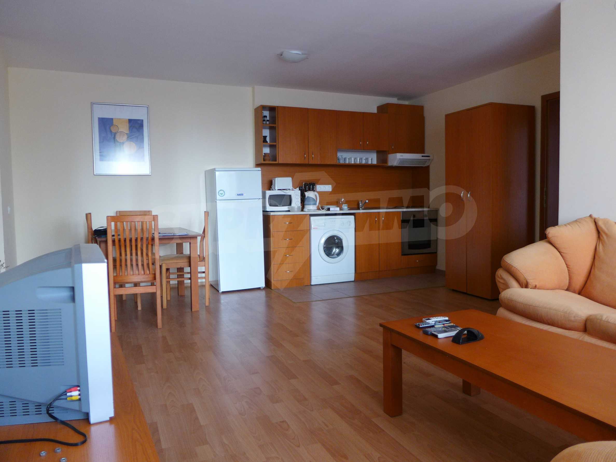 We are pleased to offer you to be the new owner of this spacious apartment with comfortable furniture and great location - first line from the water in the modern maintained complex Marina View Fort Beach, part of the apart-hotel Grand Resort combining the described complex with the Panorama Fort Beach apart-hotel. The complex is located between Sunny Beach and Elenite, in a picturesque, quiet bay, right on the beach Robinson. The Grand Resort complex reveals exceptional views of the bay, Sunny Beach and Nesebar.
