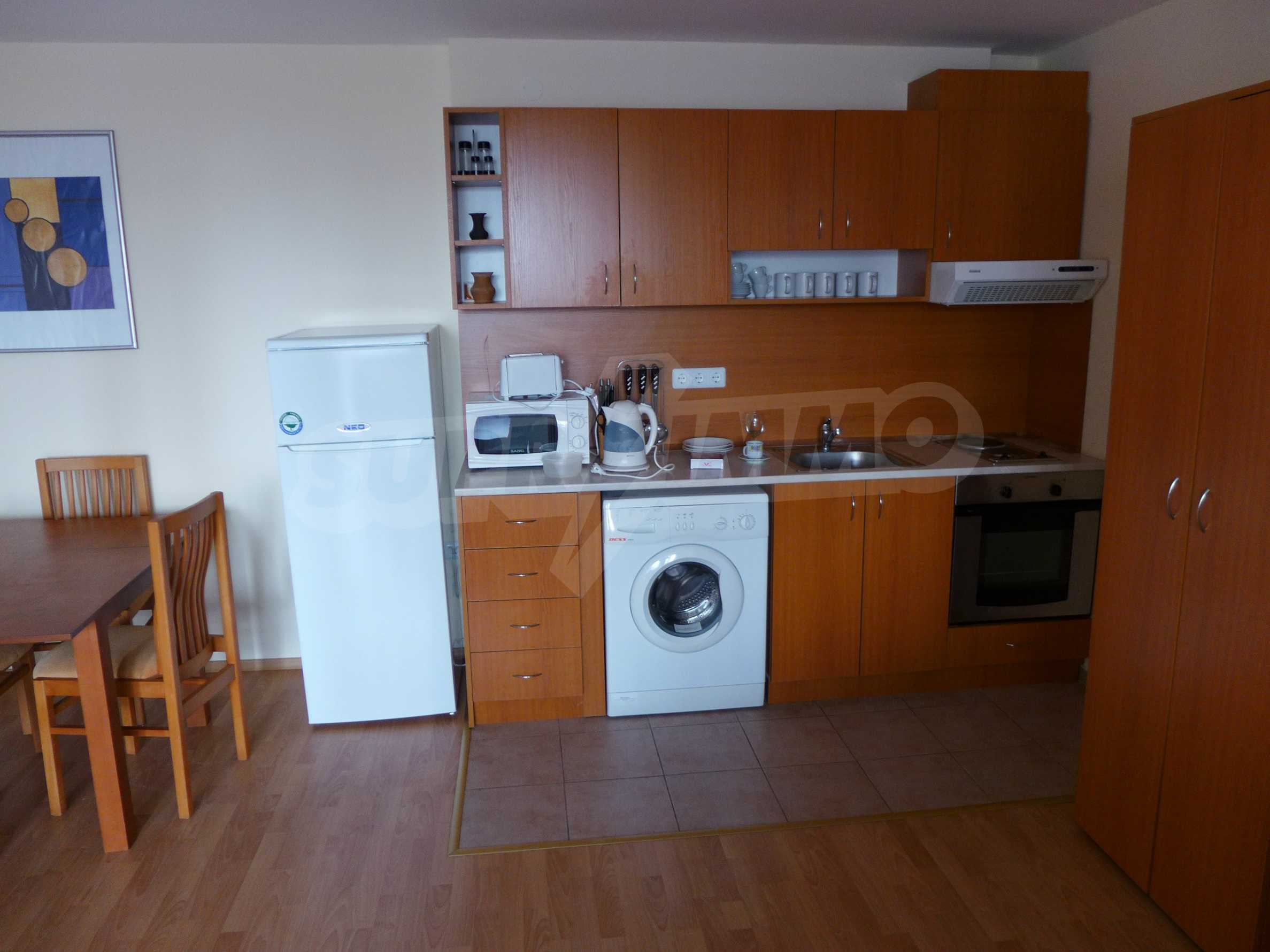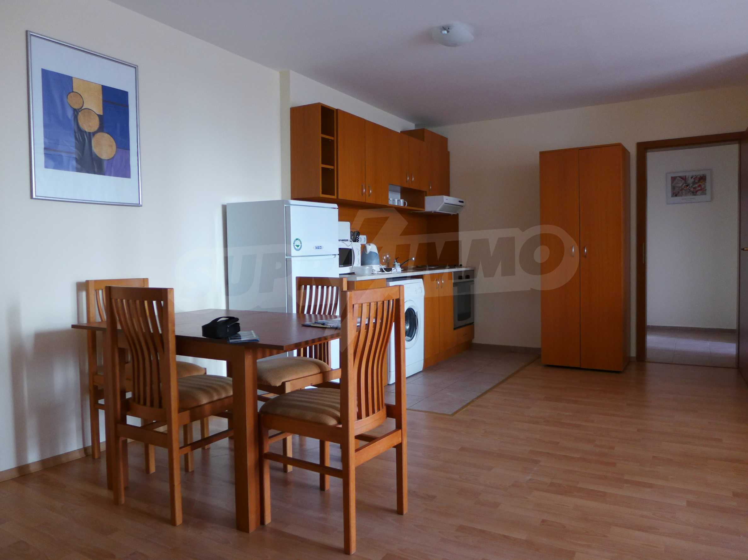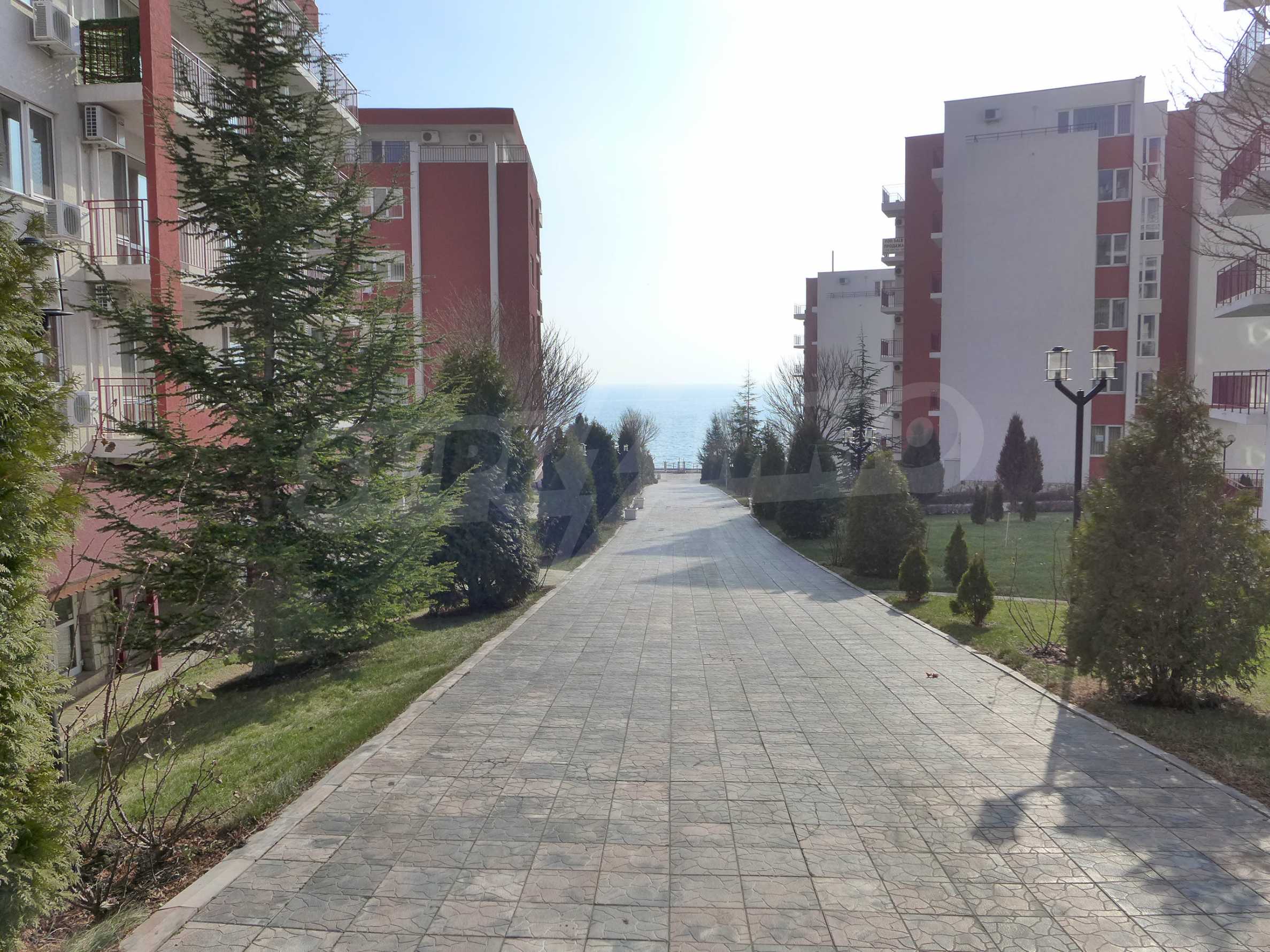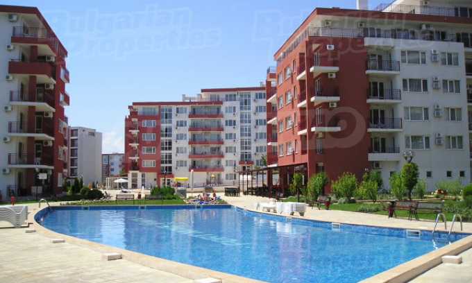 The apart-hotel has seafront location, with well-maintained common areas and a variety of modern amenities, including 3 restaurants, bar, cafe, 10 swimming pools, one with artificial waves and other with Jacuzzi, five children's swimming pools with water attractions, 6 children's playgrounds, two food stores, one for meat and shop for beach accessories, souvenirs and clothes, beauty salon with hairdresser, manicure, pedicure, SPA center with hammam, sauna, laundry service, currency exchange office, pharmacy, medical center, fitness center, tennis court / mini football pitch, outdoor fitness equipment, mini golf, table tennis and billiards, volleyball court, bikes rental, electronic games, library and children's entertainment center. The complex offers free parking lot, internet and swimming pool lounge chairs. Gift yourself this fabulous holiday home where you will be surrounded by kind attention and excellent services and amenities nearby.