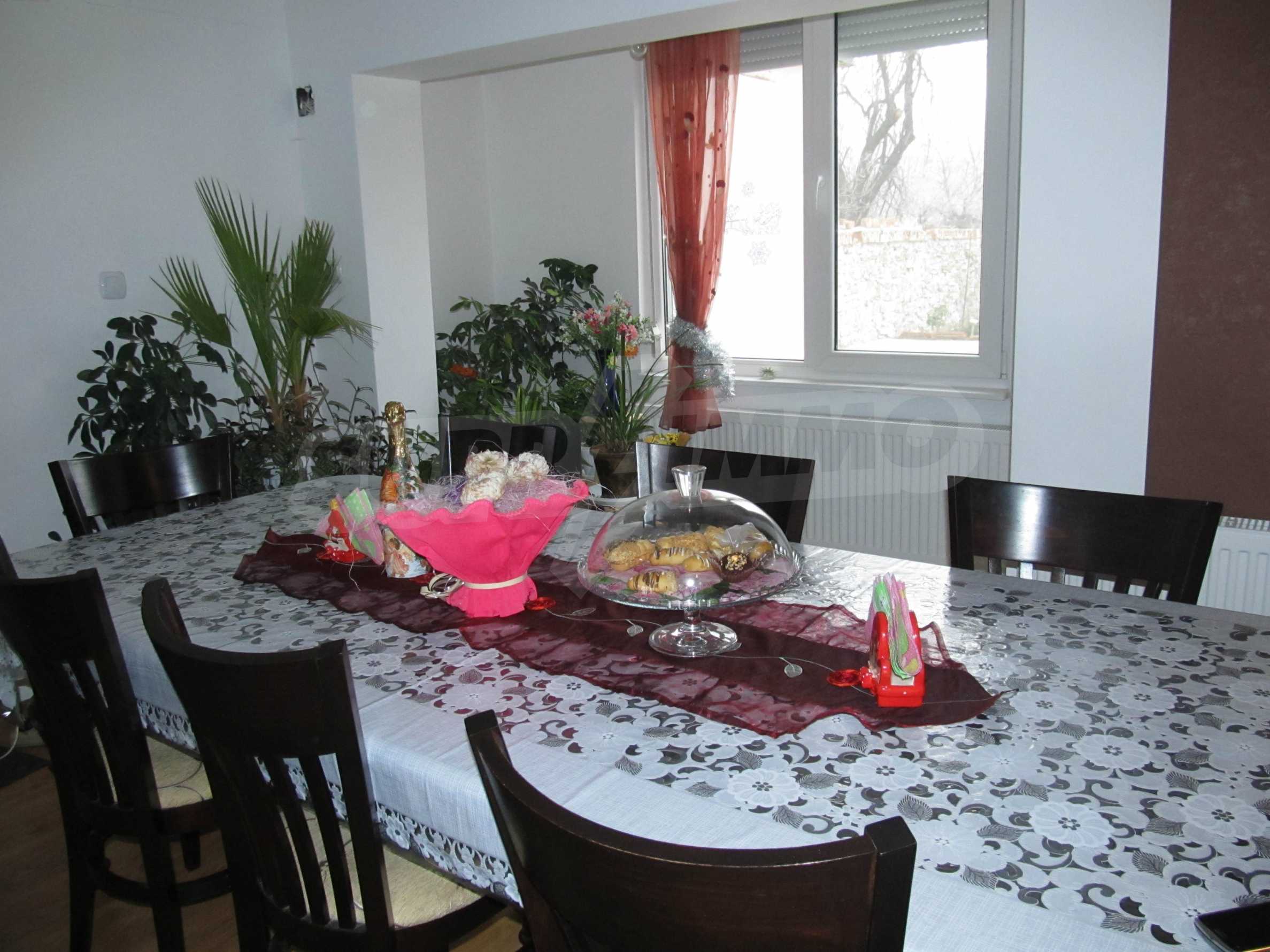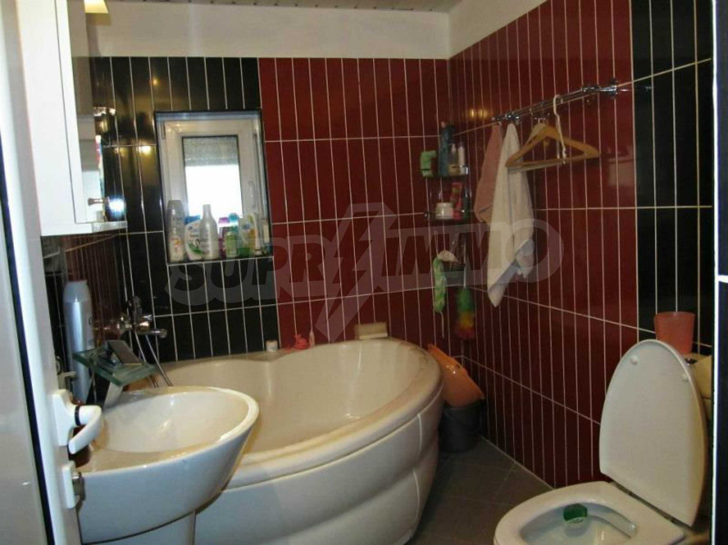 The house has two floors with area 200 m2 and was built in 90-s, with recently made many improvements. It is solid build and the present condition is very good. Between the first and second floor is solid concrete slab. The roof is in excellent condition and recently renovated. The house has central sewer and not a septic tank, as most of the houses in the villages . The property has a central heating system with a boiler, which is in a separate boiler room.