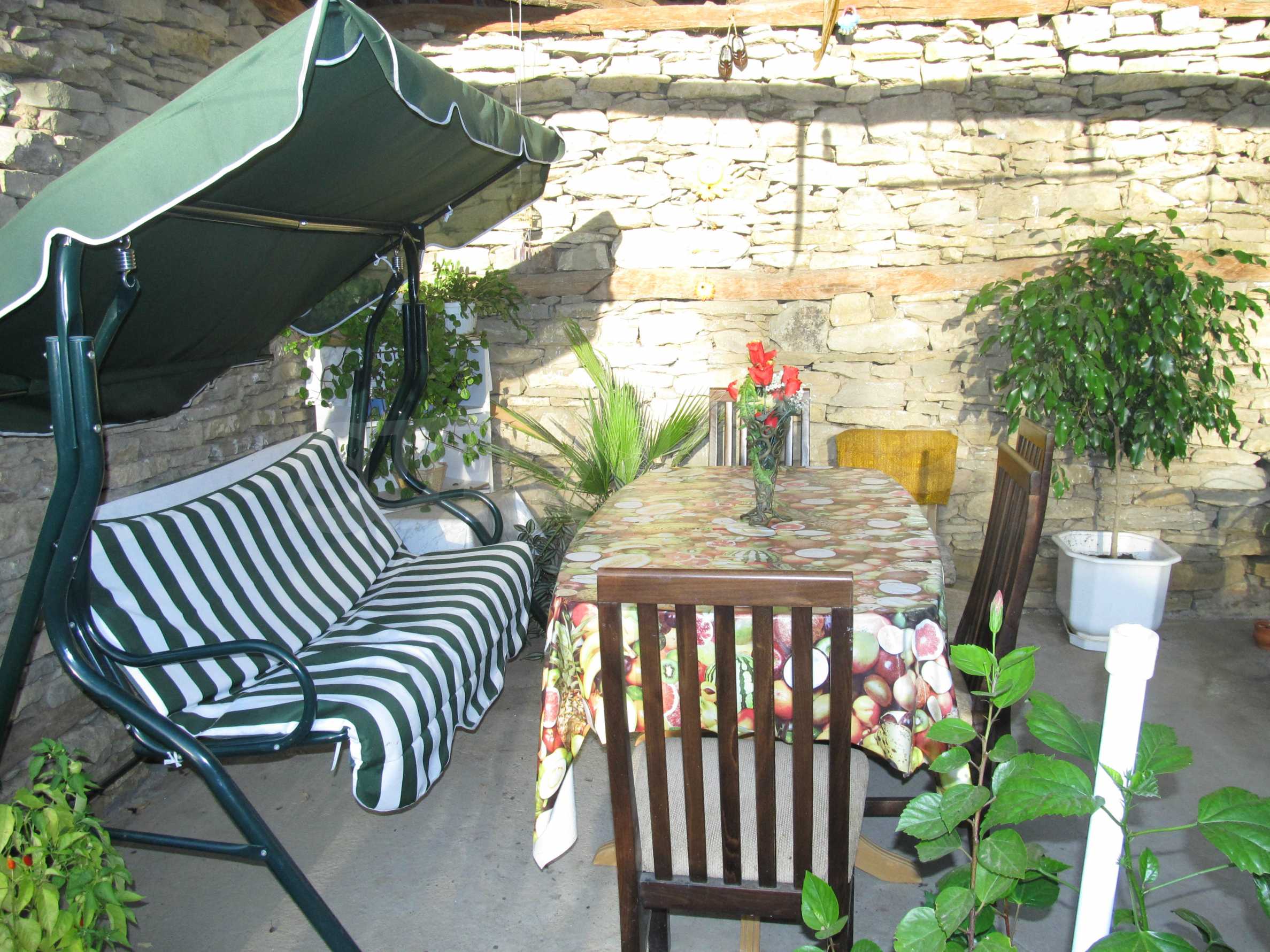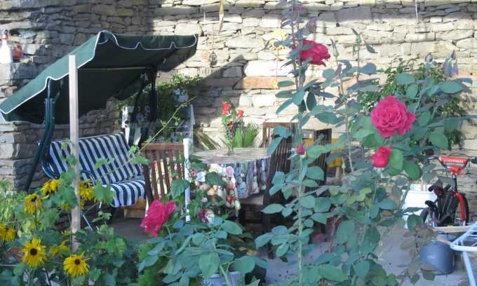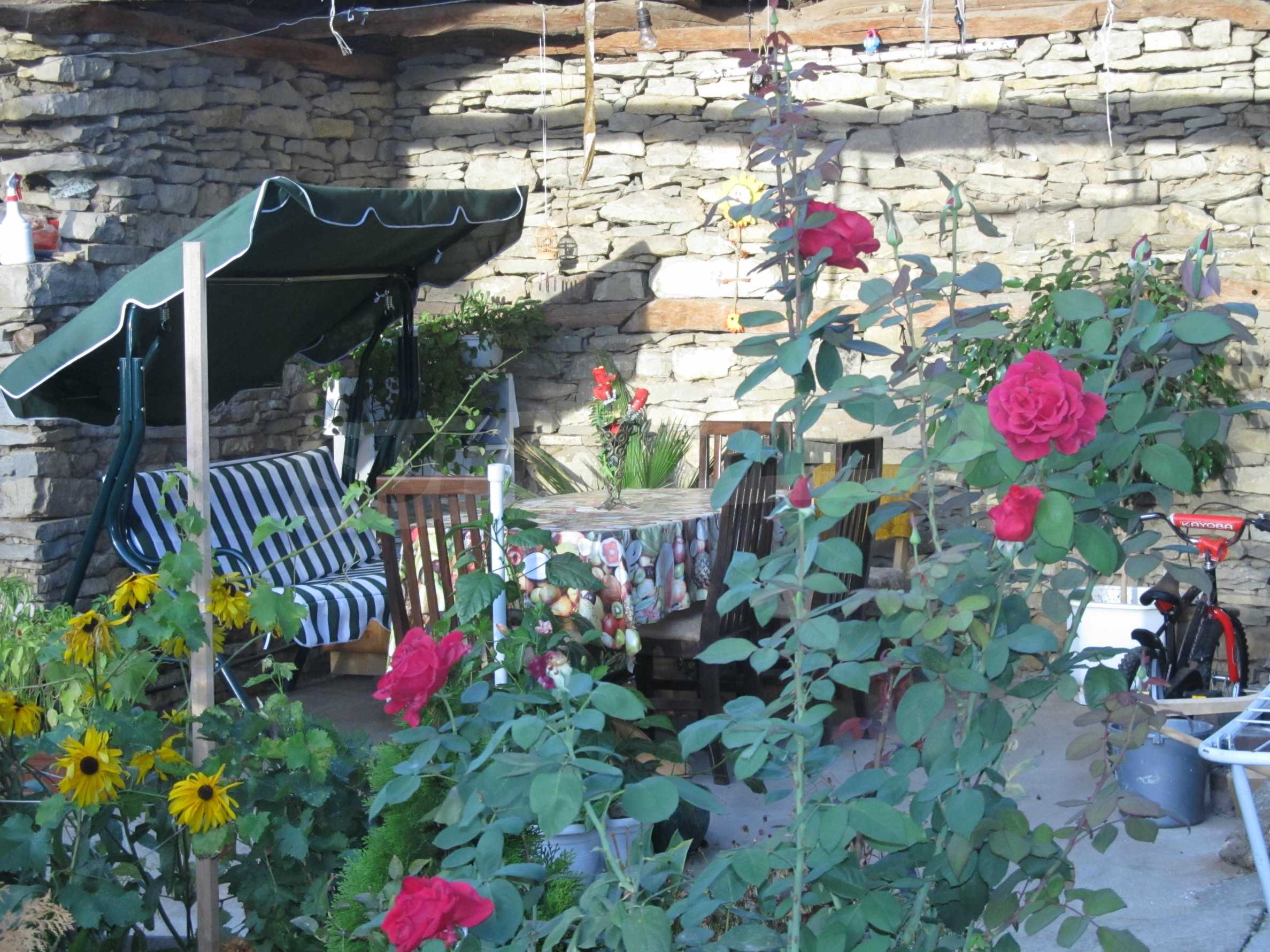 The property is located in the yard of 600 square meters, where there are outbuildings. Stone wall surrounds the area of the property, and there is a shed where made recreation area and can build and barbecue.