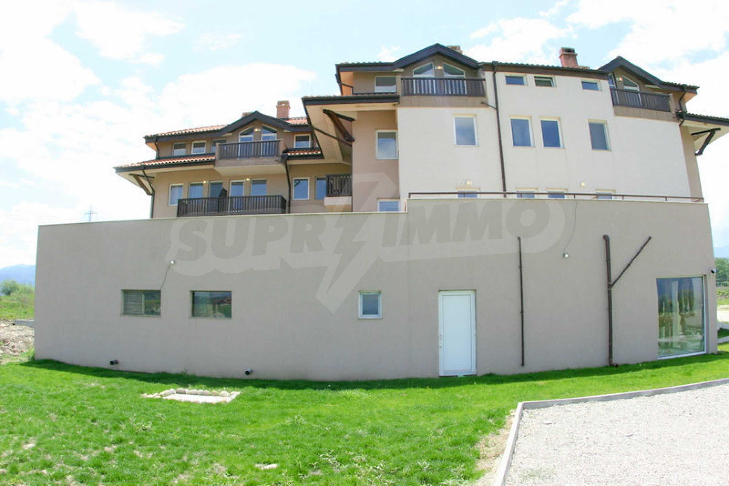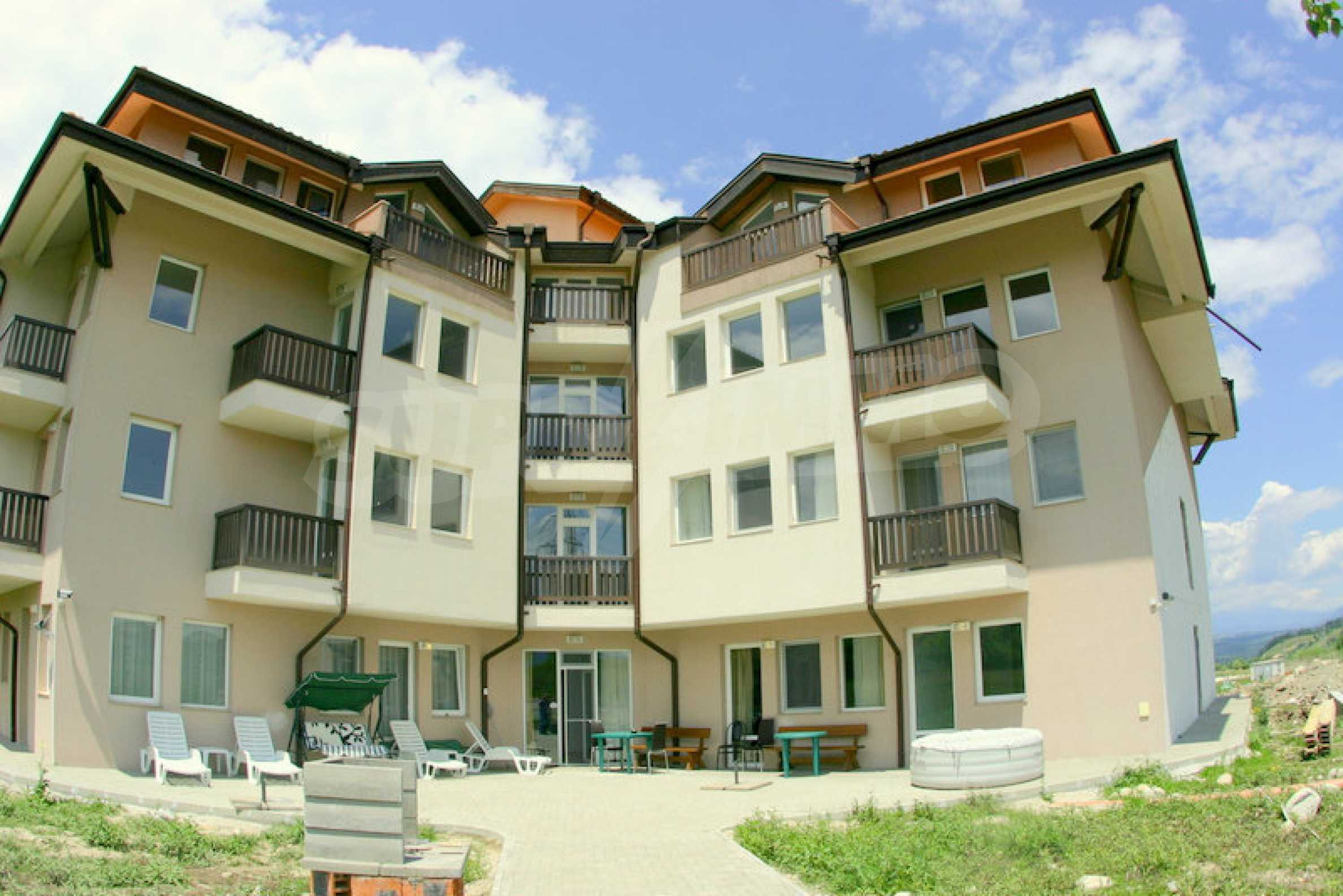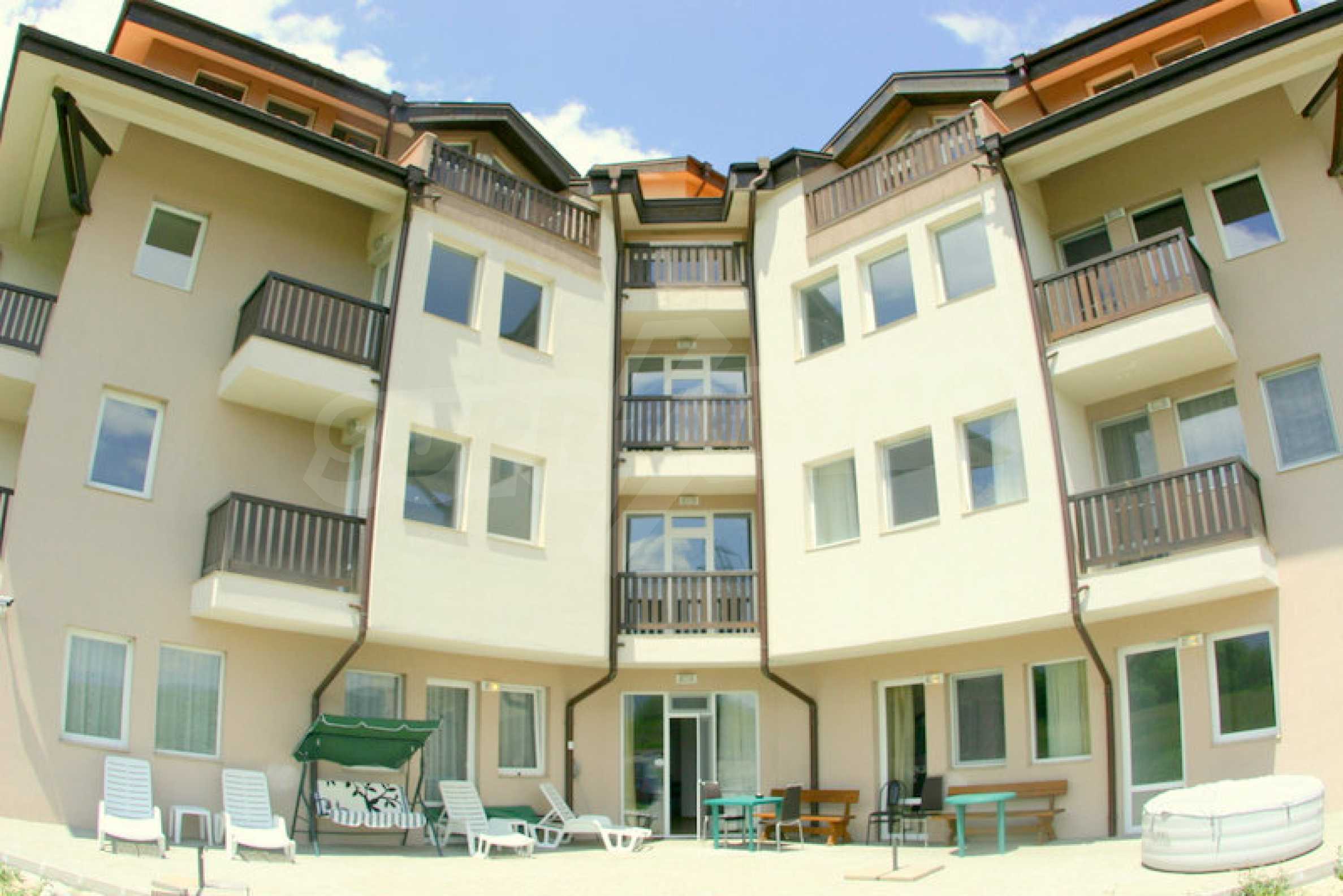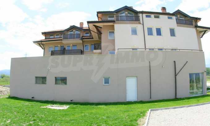 The apart-hotel reveals spacious panoramic views and enjoys comfort and suitable conditions for relaxation in perfect combination with the easy access to all modern amenities of the SPA and ski resorts located nearby. The distance to Sofia is 165 km, to Plovdiv - 155 km, to Burgas - 460 km, to Kavala - 160 km, to ski resort Bansko - 6 km (15 minutes by car to the lift in the ski resort) and 3 km to the Banya village.