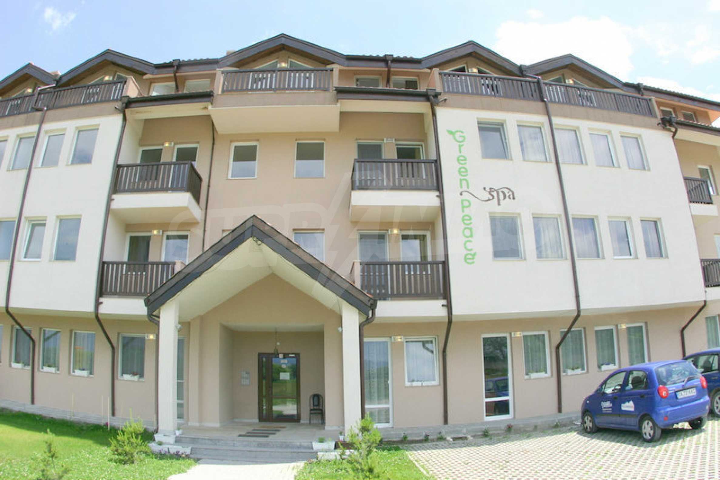 Green Peace SPA complex is completed in 2012 with large open spaces with an area of 8000 sq.m. The 5-storey luxury apartment hotel consists of 60 pieces ready to move in apartments, indoor and outdoor swimming pools with mineral water, SPA center with sauna and massage room, common living room with extra room for snacks, restaurant, café, free parking lot and open spaces monitored by security cameras.