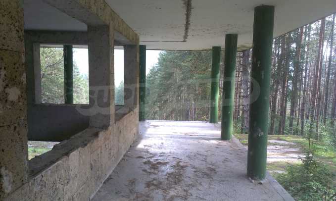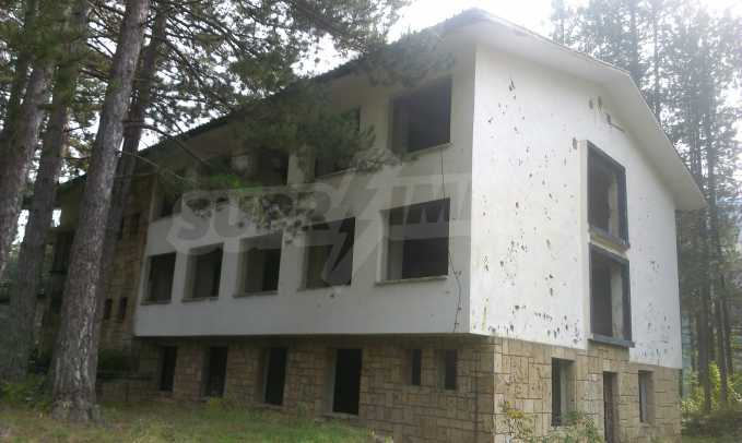 A wonderful hotel with floors which was used as a tourist base complex before is located 1 km. from the town Teteven in an old pine forest. The property is located on a plot of land with a size of 6000 sq. m. The area has a ski slope. The area of the hotel is 1350 sq. m. The property is not renovated and has an approved project for reconstruction of existing facilities with a capacity of 12 rooms and 4 suites / 40 seats / restaurant with 80 seats and a terrace with 120 seats. There is permission for building of a new hotel part on another 3600 sq. m. of land with magnificent views and an opportunity for the construction of a holiday village. The property has its own water source. The hotel should be renovated.
