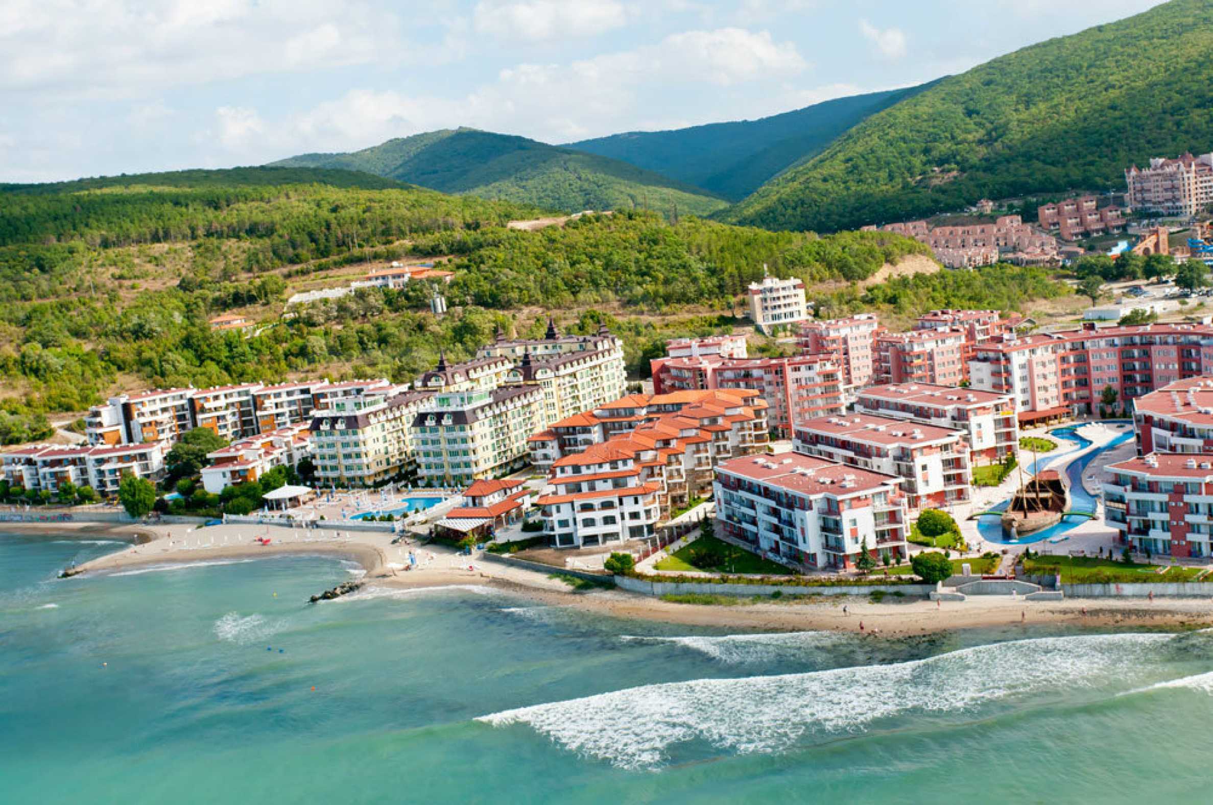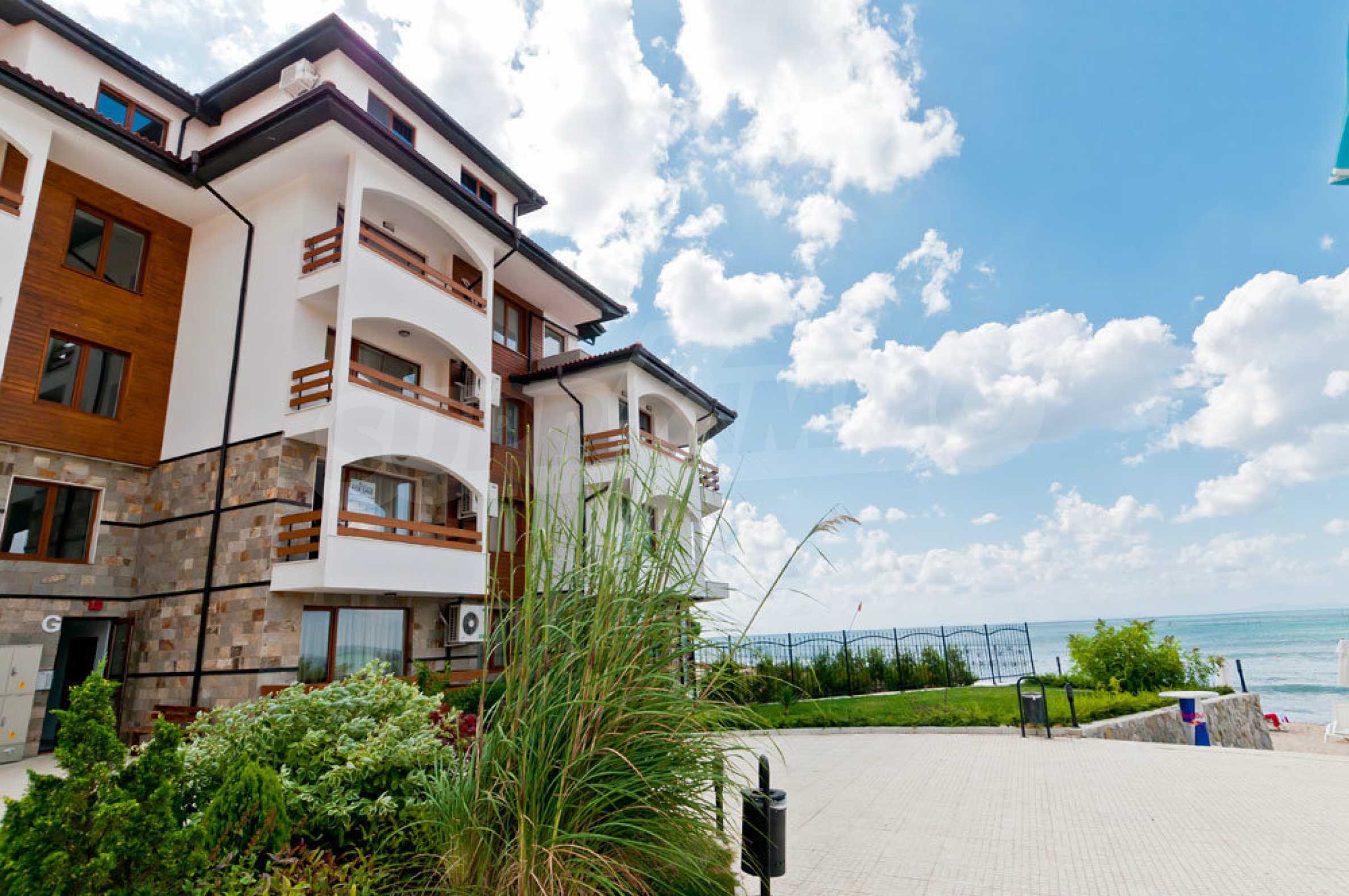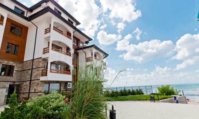 Lovely 1-bedroom apartment (59.59 sq.m.) with beautiful sea views, located in the holiday complex Robinson Beach on the Black Sea (first line from the water) in the holiday settlement Elenite near the prestigious seaside resorts St. Vlas and Sunny Beach. The architecture of the complex is consistent with the traditional houses of the Bulgarian Revival.