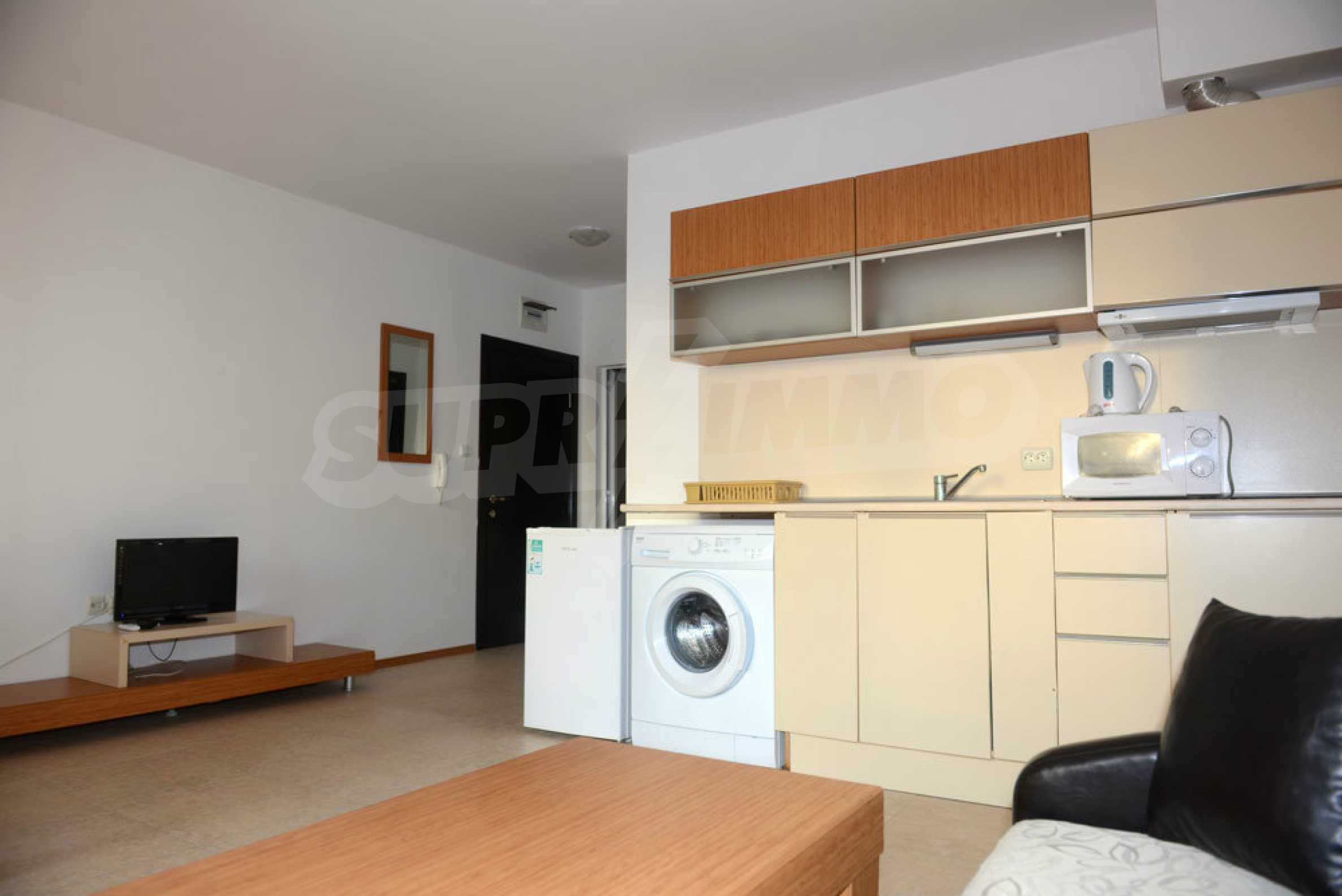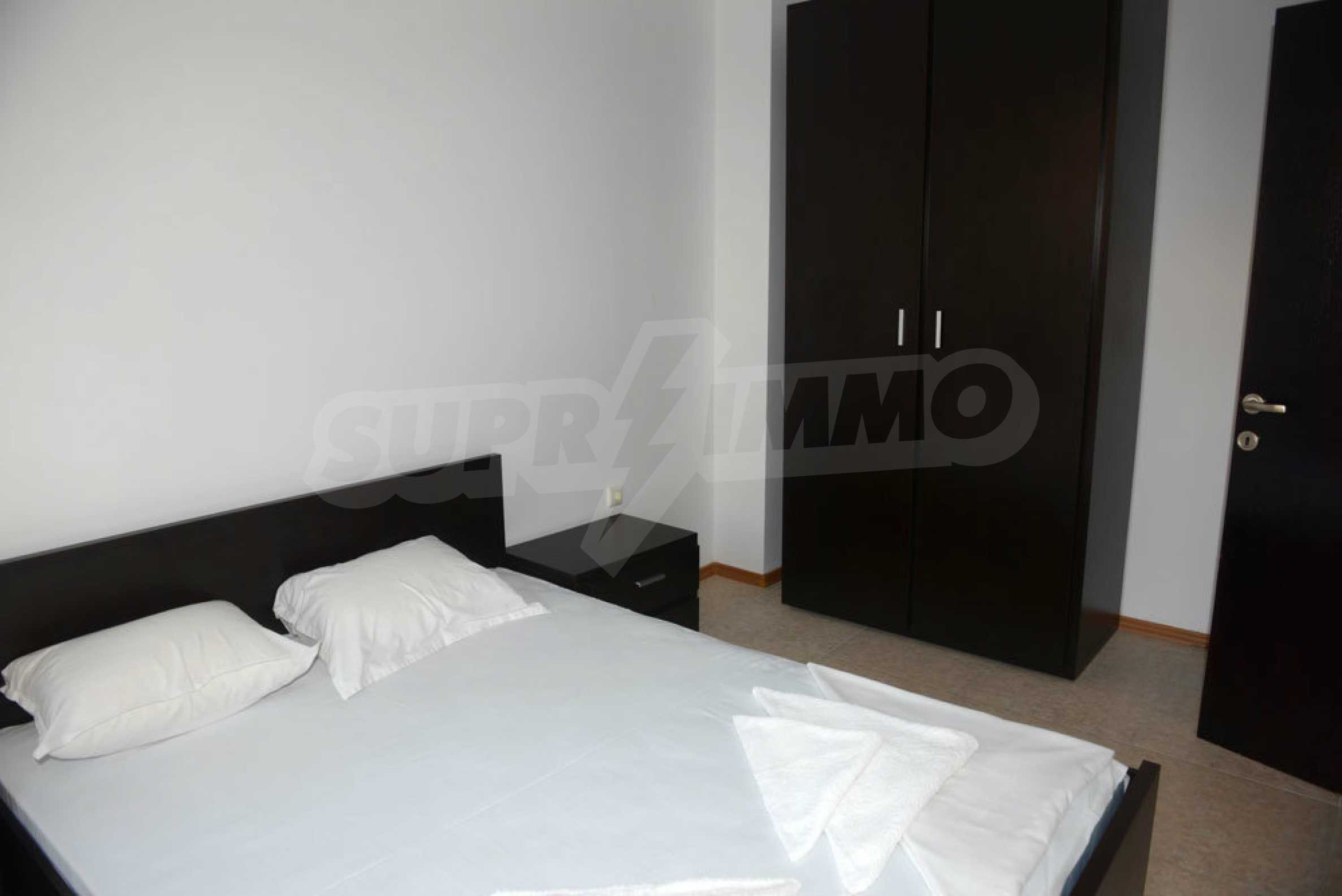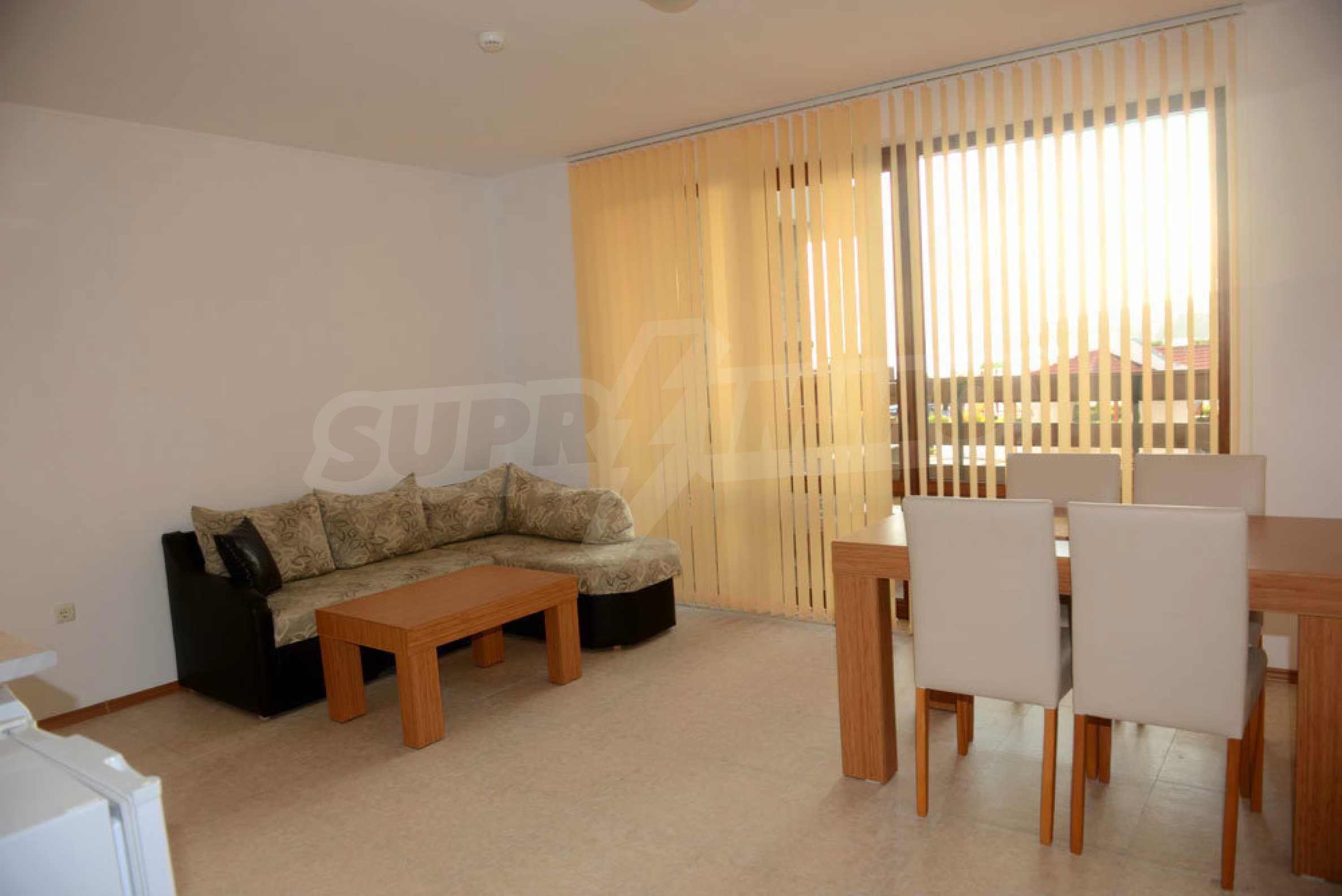 Lovely 1-bedroom apartment (59.59 sq.m.) with beautiful sea views, located in the holiday complex Robinson Beach on the Black Sea (first line from the water) in the holiday settlement Elenite near the prestigious seaside resorts St. Vlas and Sunny Beach. The architecture of the complex is consistent with the traditional houses of the Bulgarian Revival.