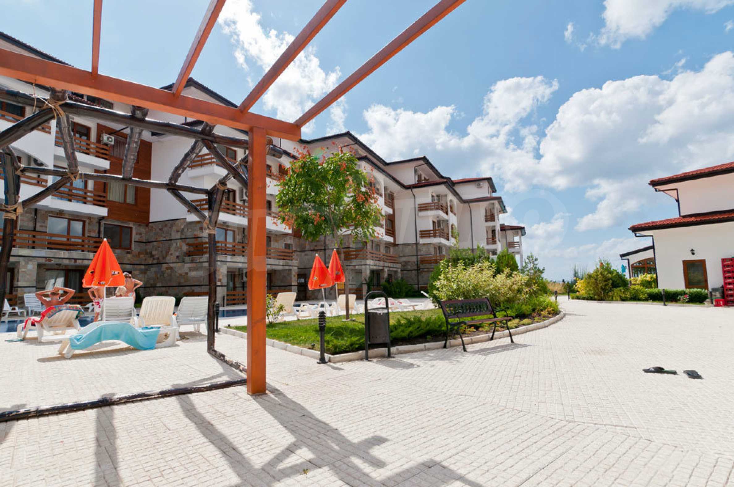 Here you can enjoy a unlimited number of opportunities for sport, relaxation and entertainment. The complex has parking lot, restaurant, beach bar, outdoor swimming pool for adults and children, massages, outdoor area for sun loungers, children playground, reception, green areas, video surveillance and security. Besides perfect holiday home for you and your family, the property is suitable for renting.