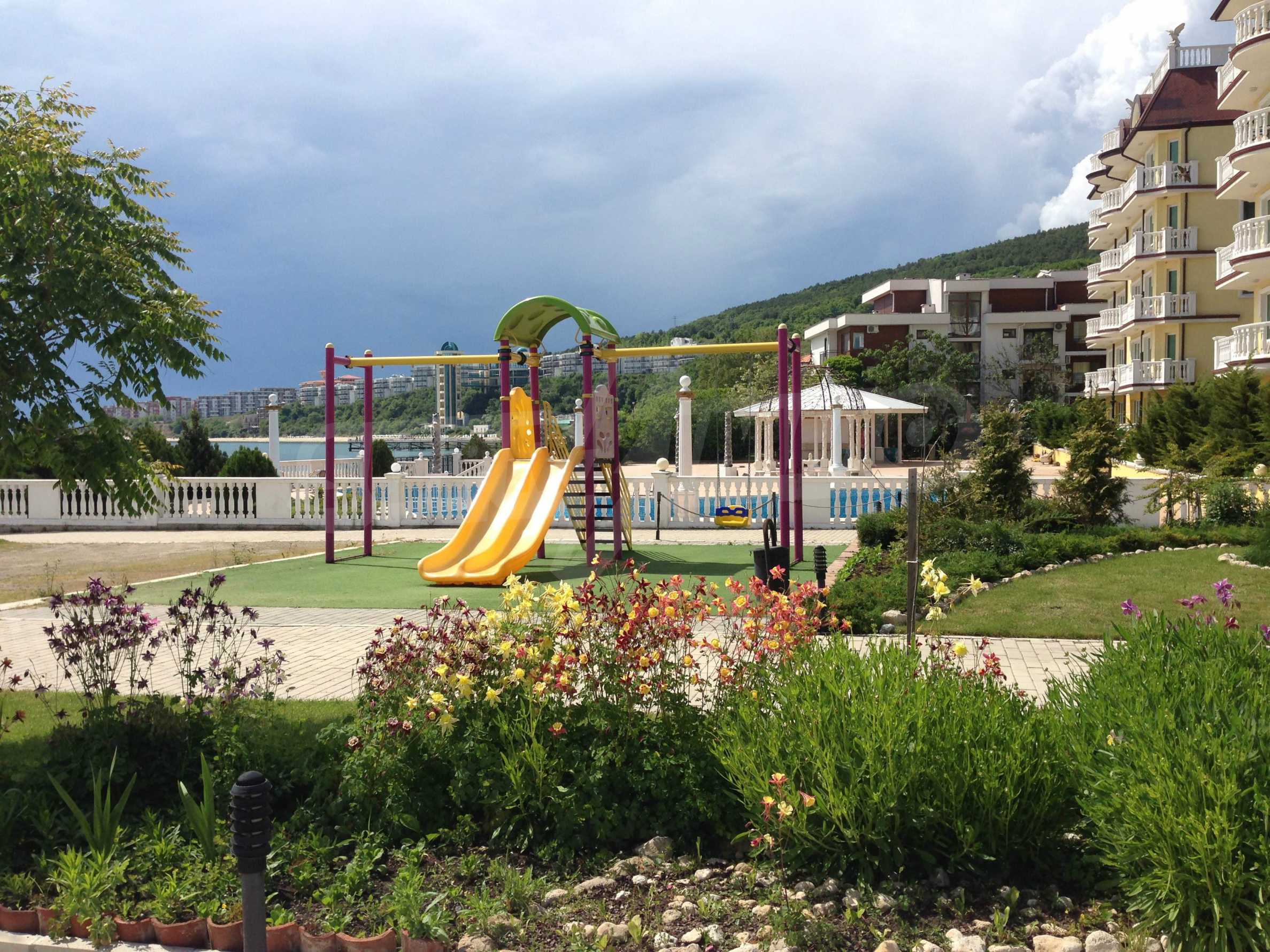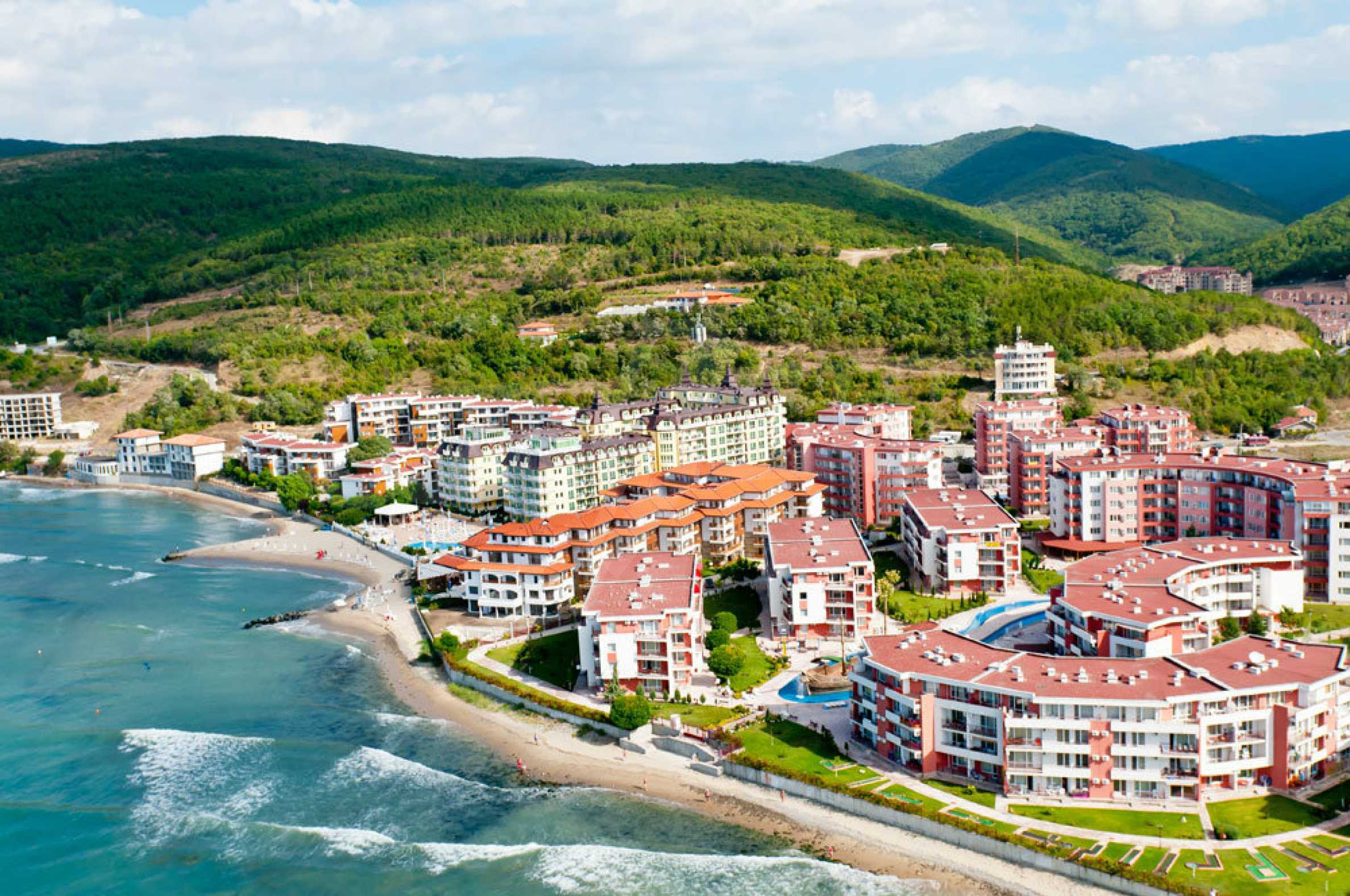 The complex consists of 4 separate houses, 7 residential blocks (each floor has two or three apartments and elevator). Most of the homes reveal stunning views of the sea and the bay of Sunny Beach. The brick buildings was completed with hydro and thermal insulation of the roof and the facade, with well-maintained common areas with stairs (floors of granite tiles), metal railings.
