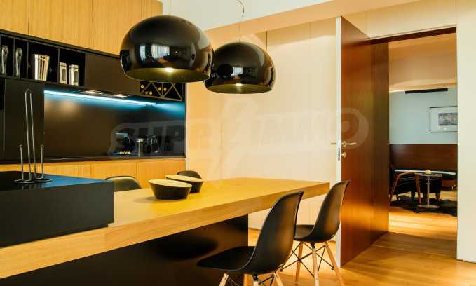 The apartment occupies the third floor above the ground one in a five-storey building. The exposure is towards south / east / west directions, overlooking "Vitosha" Blvd. The apartment is stylishly finished, using only selected high quality materials: