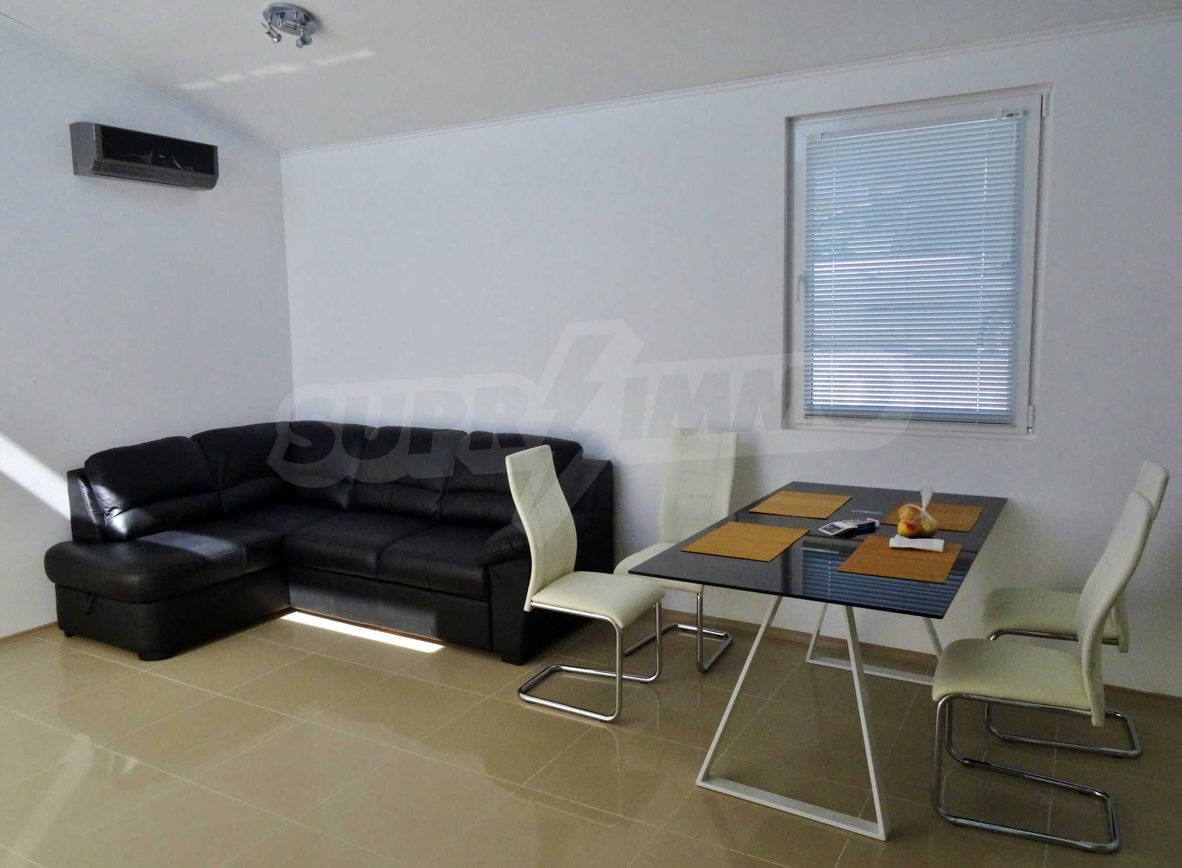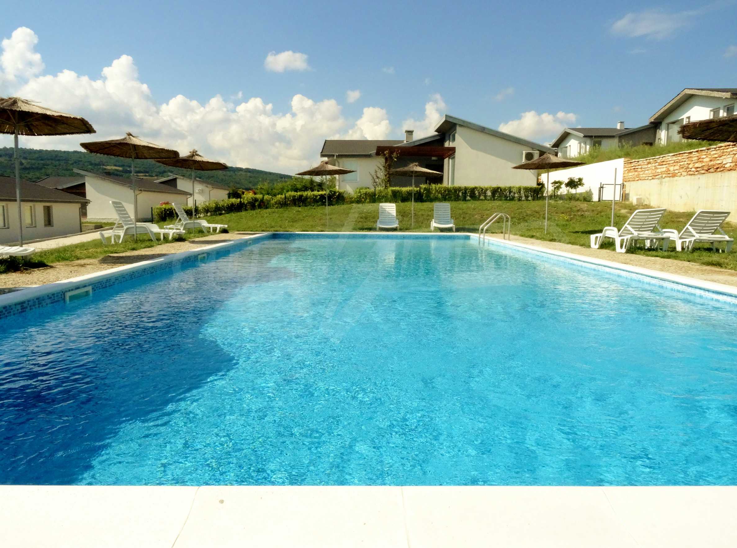 The house is located in a gated area of 9000 m2 and has its own plot of 300m2. The area of 60 sq.m is distributed between: a hallway, a living room, a kitchen, a bedroom, a bathroom, a toilet and a veranda. The house is for sale fully furnished.