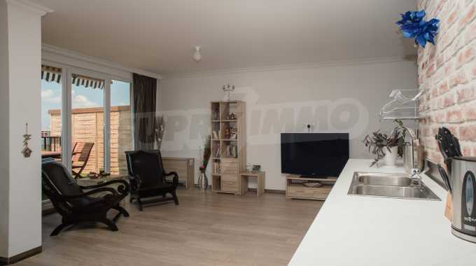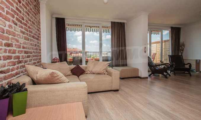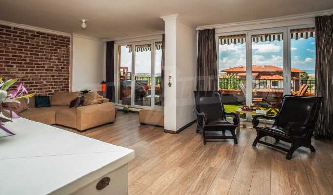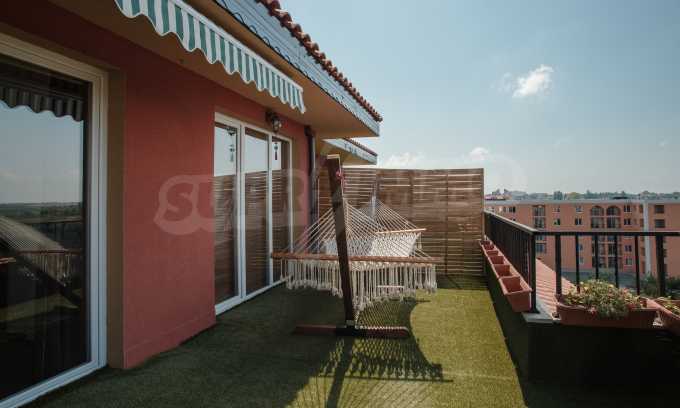 The penthouse apartment is stylish and has well-proportioned interior, providing everything that one could expect from a holiday home. It is located on the top, fifth floor in the first building of the complex. The apartment spreads over an area of 234.13 sq.m, with usable area of 202.60 sq.m and common area of 31.53 sq.m.