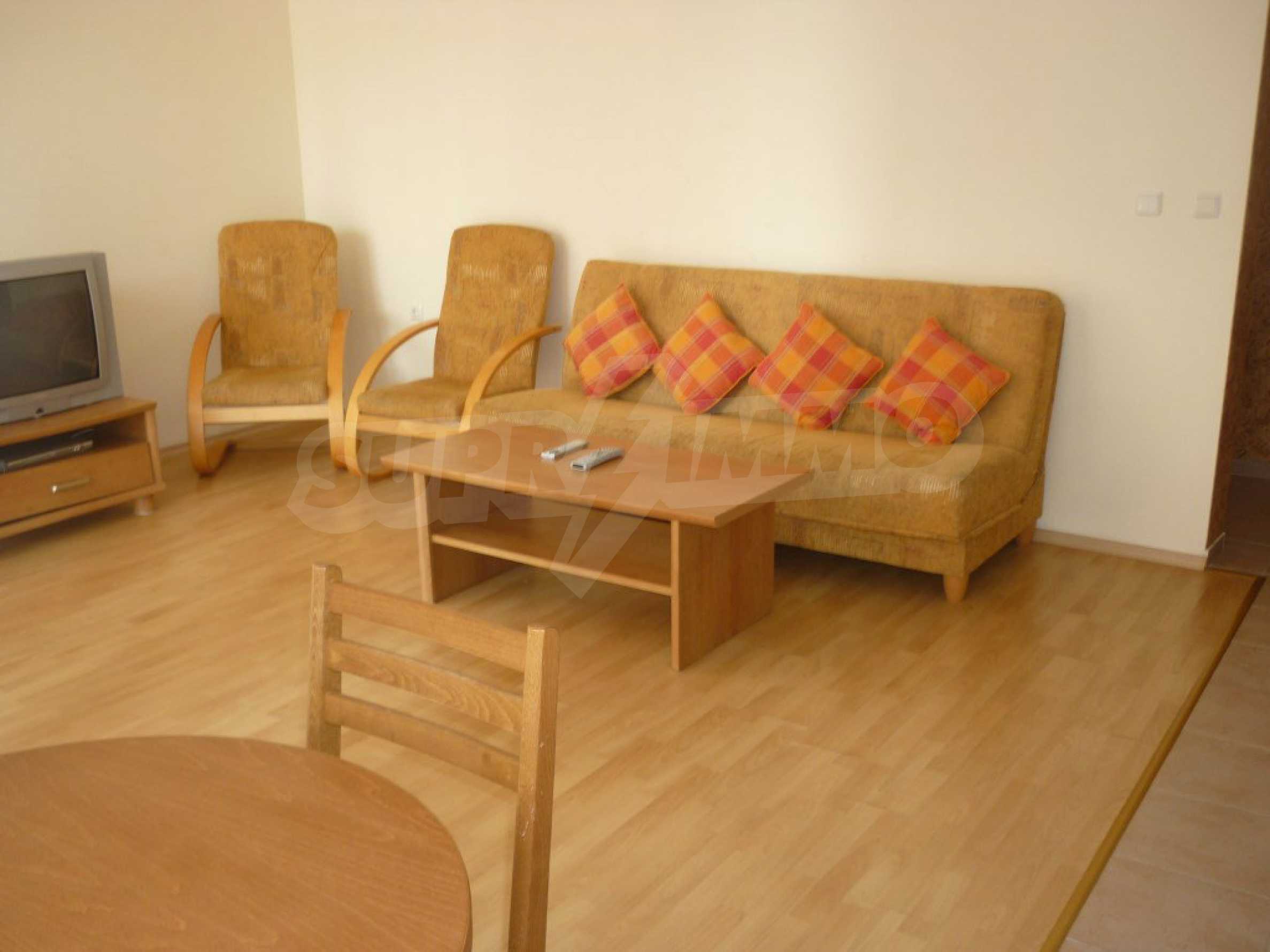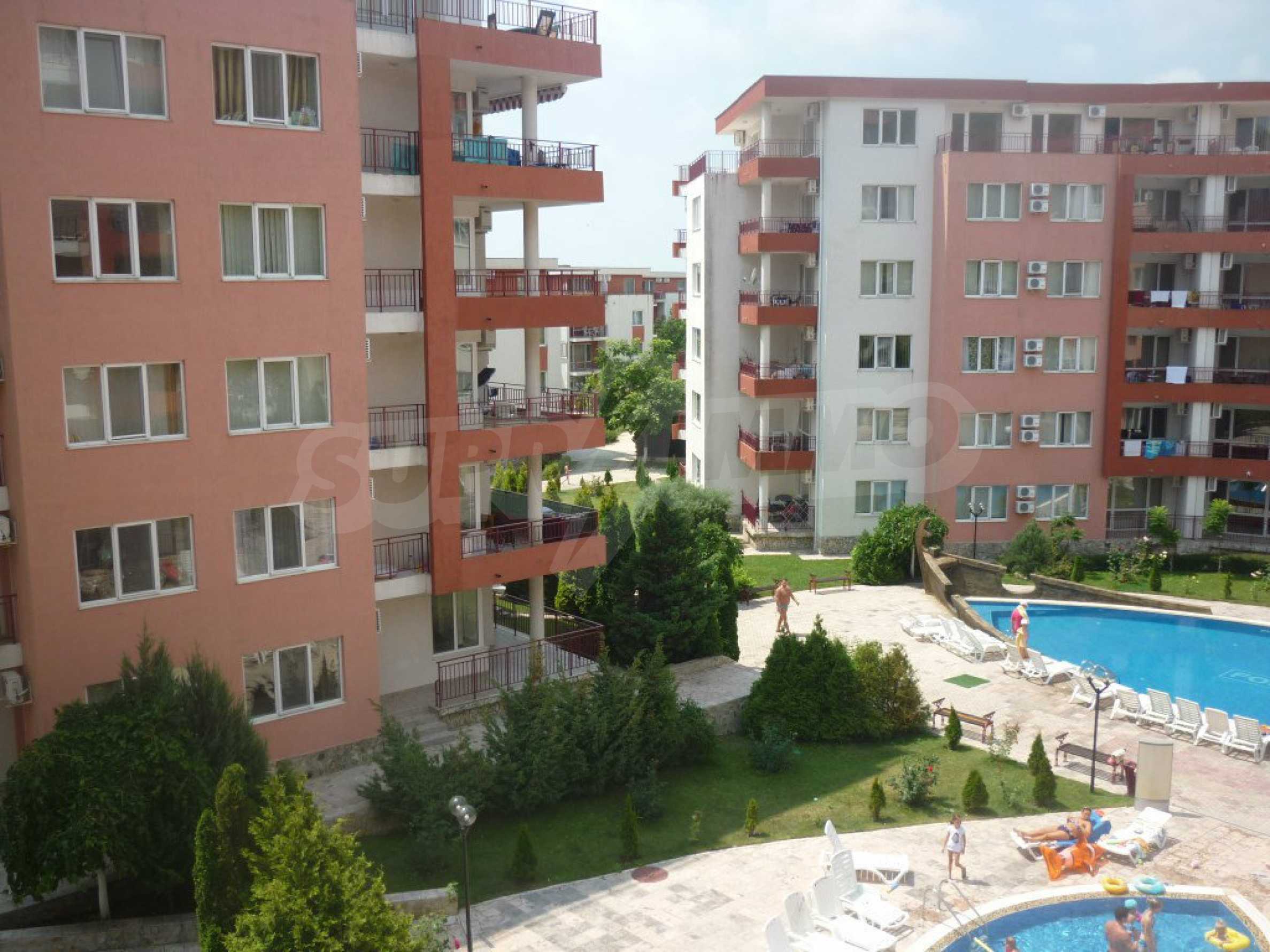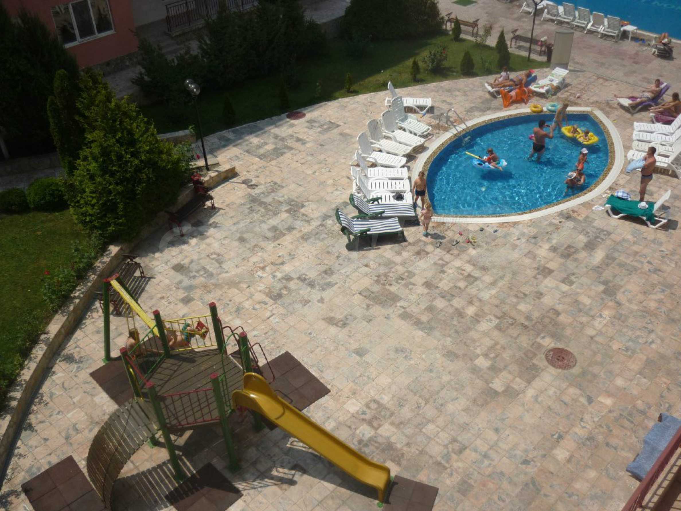 We are offering for sale a lovely one-bedroom apartment located on the sea shore in one of the most picturesque summer resorts on the Bulgarian Black Sea coast – Elenite. It is located in the popular holiday complex called Privilege Fort Beach. The complex is situated on first line to the sea between Elenite and Sunny Beach, on the beach, in the spectacular calm southern bay with the famous beach called Robinson. The complex begins from the beach itself and ends in a pine forest, offering an extremely rare and healthy combination of sea and mountain climate. The complex has all the facilities you would need - restaurants, cafes, food centers, mini-market, swimming pools with water attractions, children's pool, children's playgrounds, cosmetic and medical center, fitness club, sauna, tennis court / football field, parking.