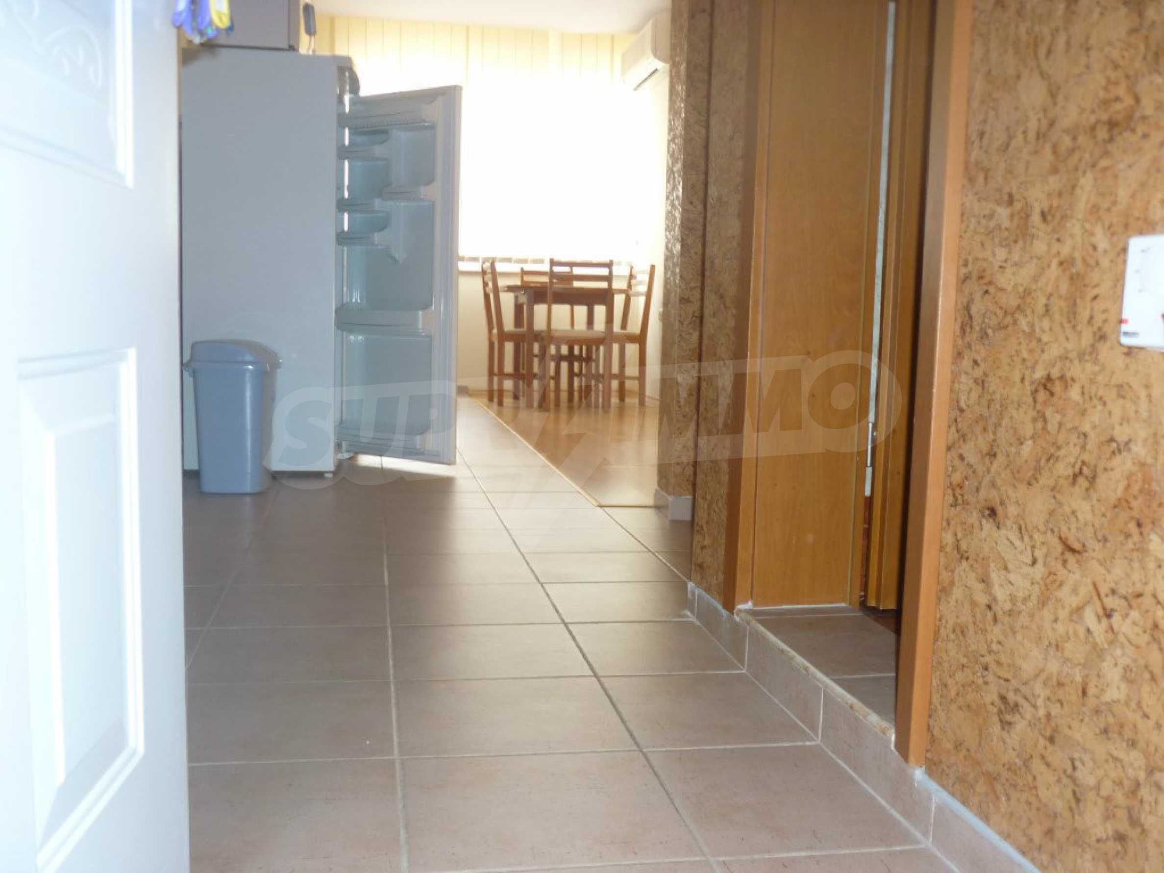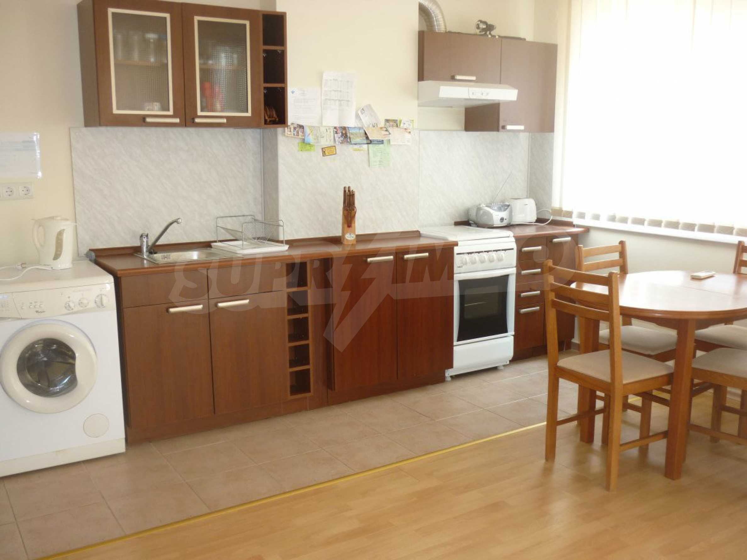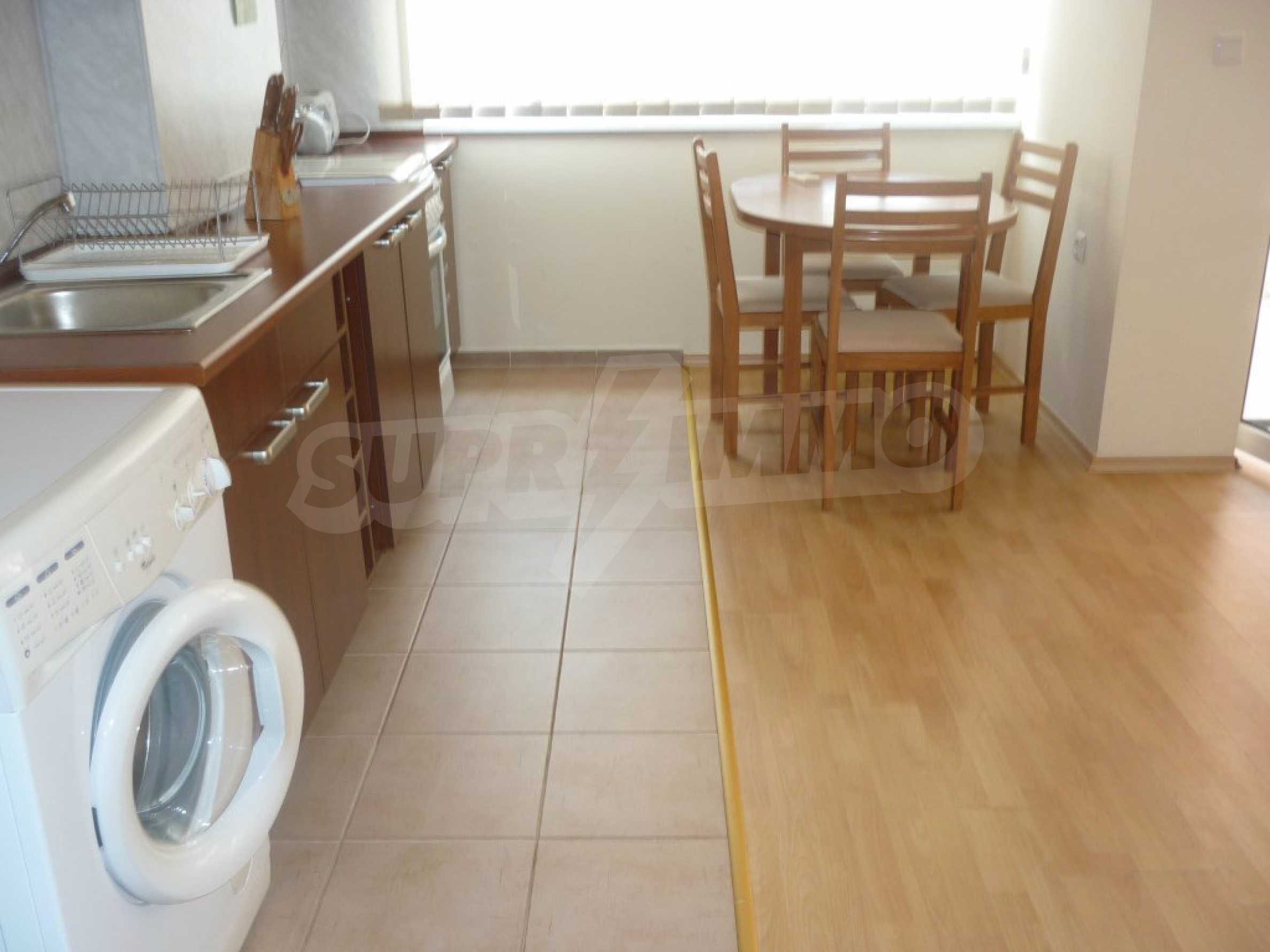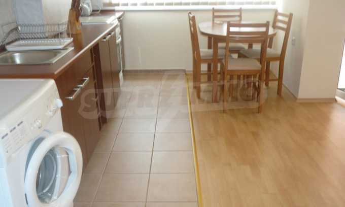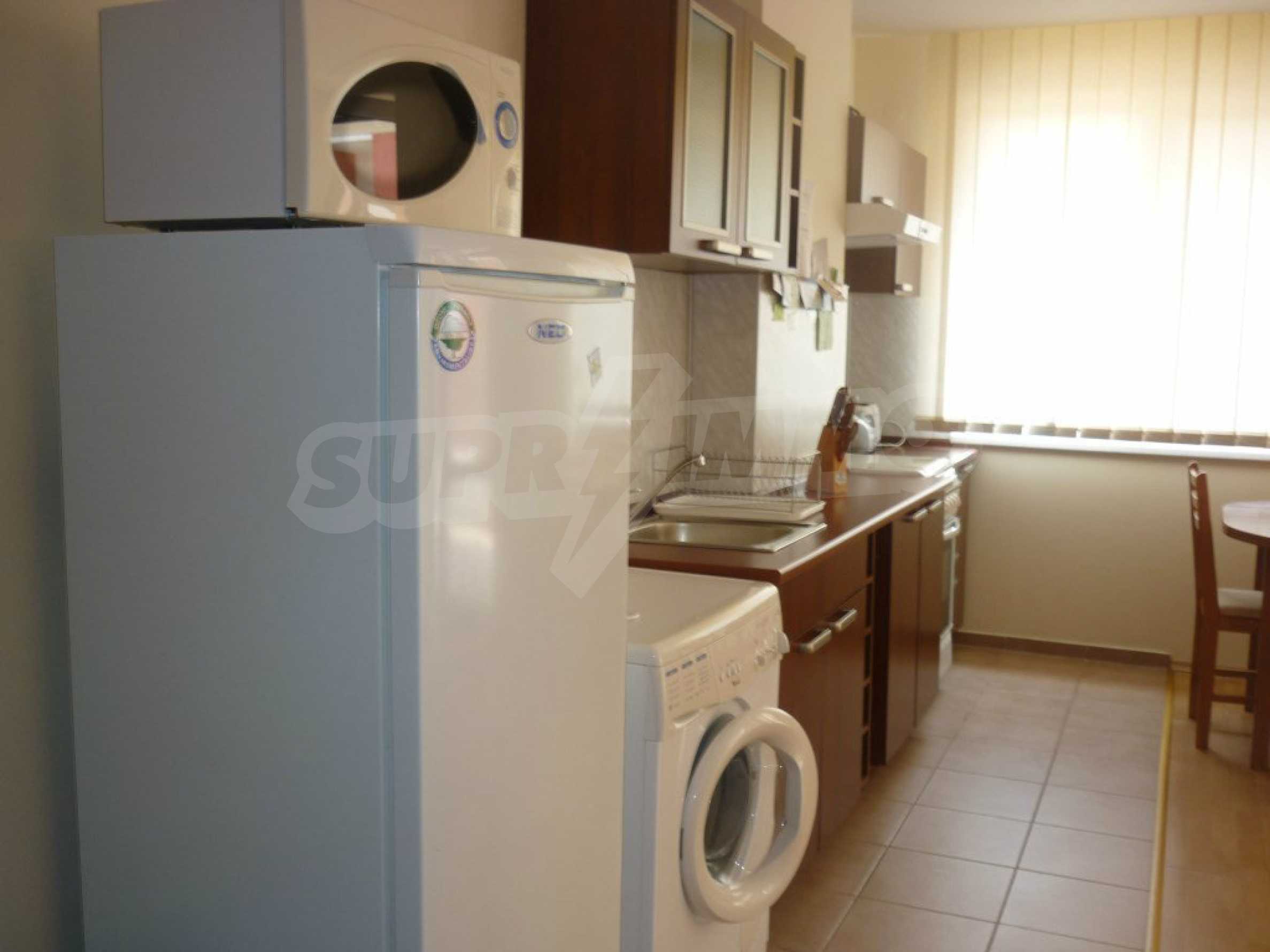 The apartment offered for sale is located on third floor and has an area of 81.56 sq.m. The apartment is fully furnished and equipped with all the necessary facilities for a good vacation or renting out. Laminate flooring, tiled flooring and upvc window frames are available in the property.