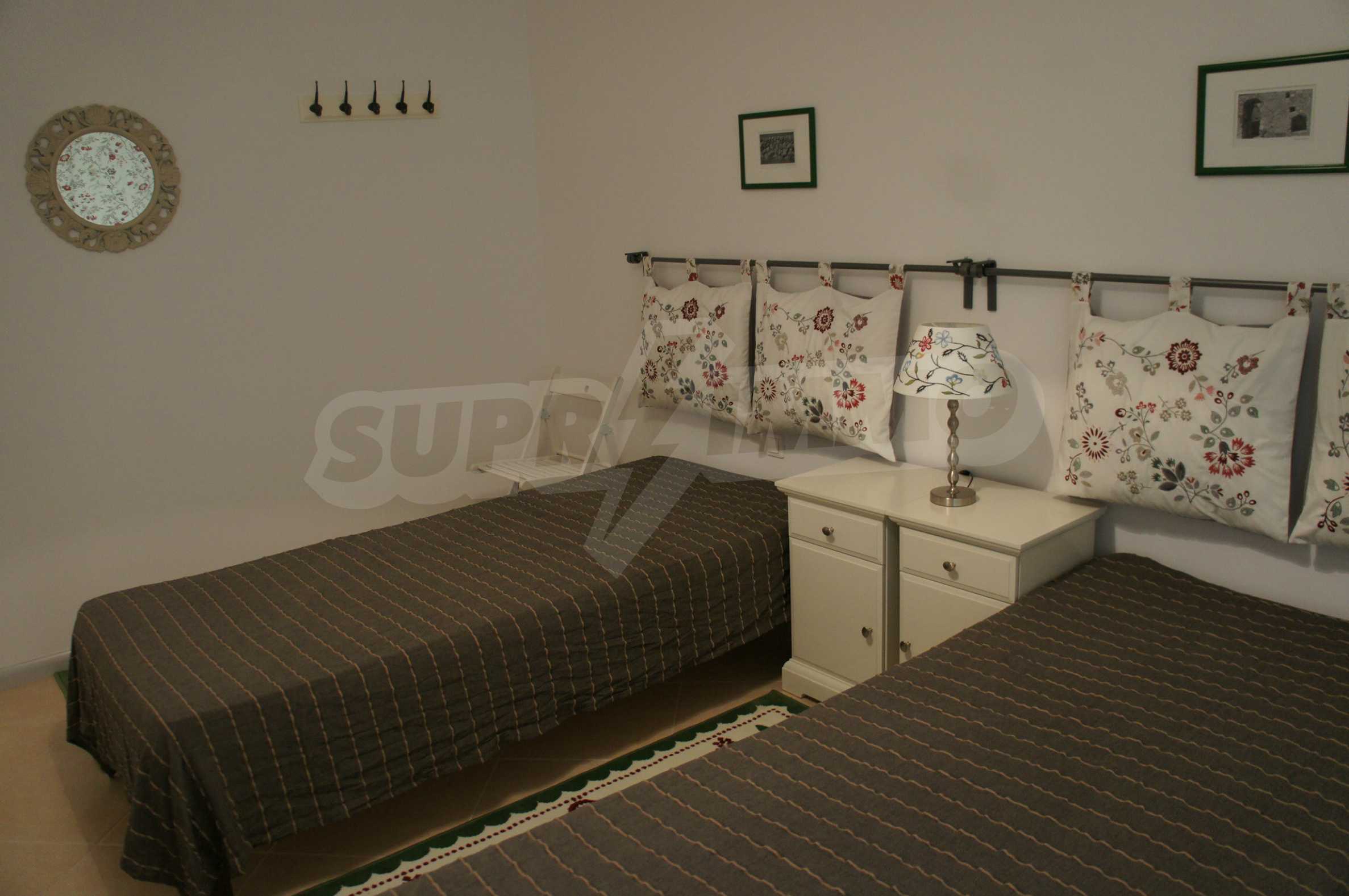 Two-bedroom, stylishly furnished apartment in the gated complex Oasis Resort & Spa 2 with landscaped courtyard and amenities, representing the second phase of the extremely luxurious mini-resort Oasis Resort & Spa, the winner of the prestigious award "Building of the Year 2009". The offered dwelling is set second line to the sea, with direct access to a wide and long beach of fine sand and dunes in the quiet seaside resort of Lozenets, in the southern part of the Bulgarian Black Sea coast. The complex is located 60 km from Burgas and 450 km of the capital Sofia, away from the industrial areas, noise and pollution, but near the popular holiday resorts of Tsarevo and Primorsko.