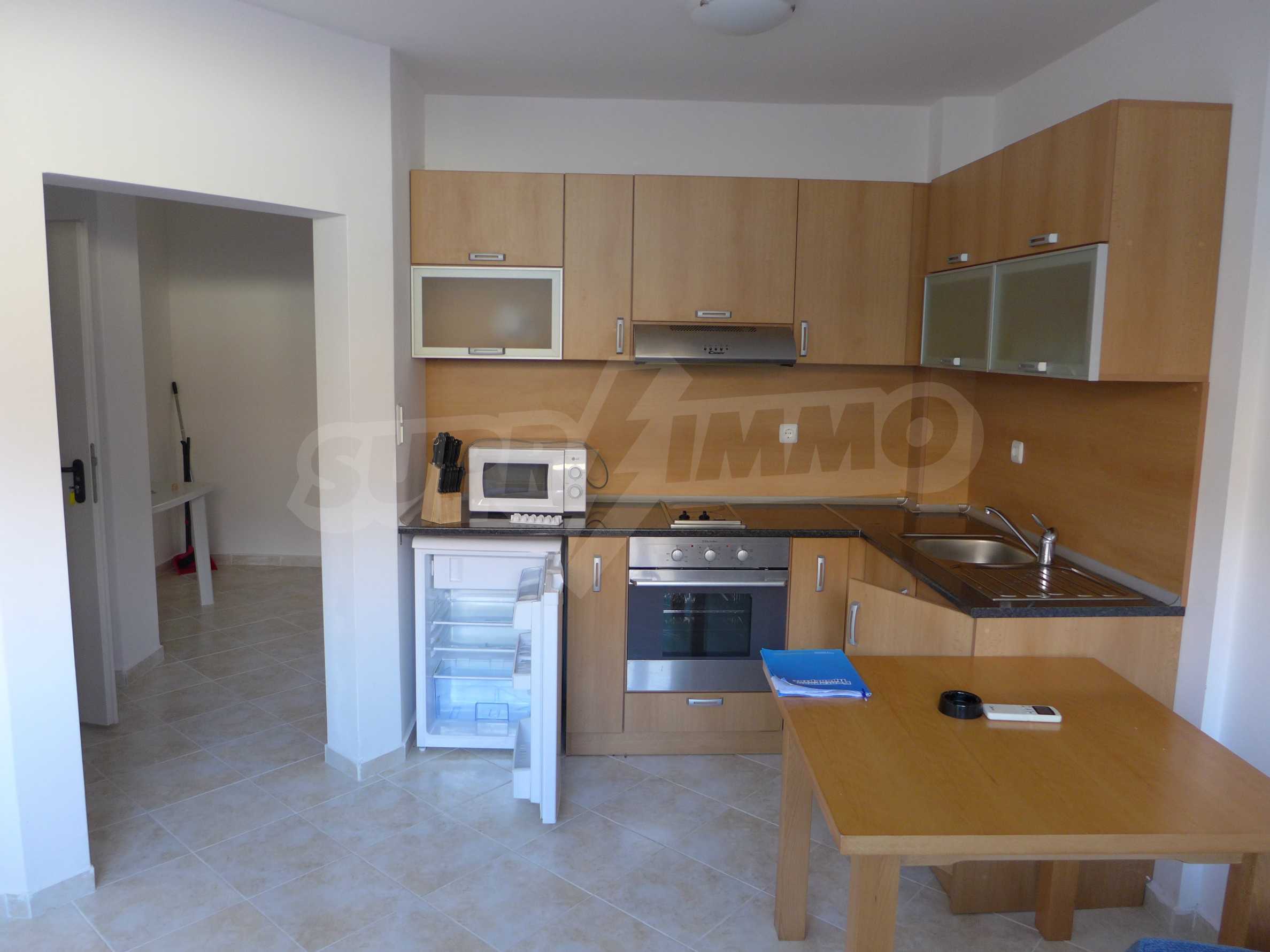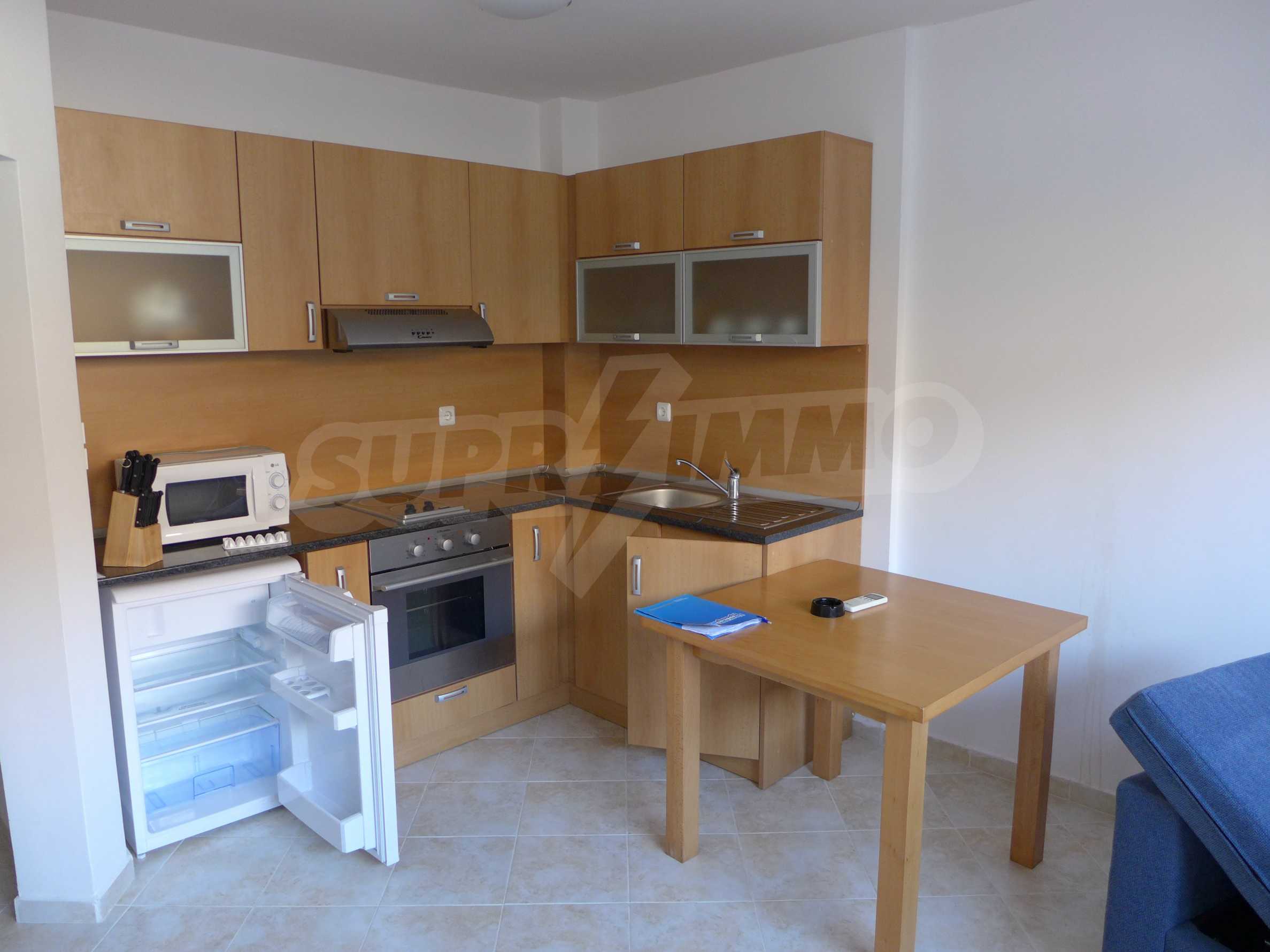 An excellent one-bedroom apartment in Sunset Kosharitsa 1, located at the foot of the mountain and only 6 km from the popular seaside resort Sunny Beach with beautiful beaches, places for recreation and entertainment and busy nightlife. The modern new complex enjoys the beautiful combination of mountain and sea climate and unique conditions for pleasant holidays, long walks, mountain biking, family picnics, fishing, sunbathing and numerous water sports.