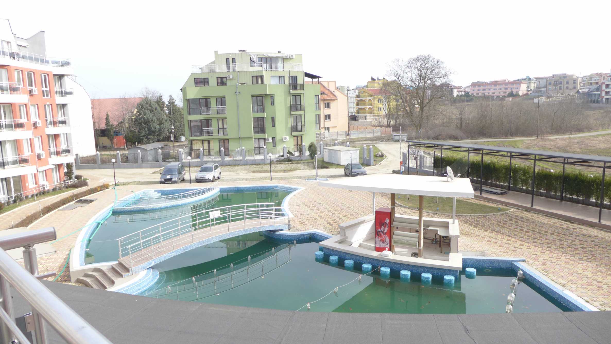 The property is situated on the 3rd floor. It has a total area of 48.97 sq.m., distributed between one bedroom, a bathroom with a toilet, a living room with a kitchen box and a large terrace, overlooking the swimming pool. The apartment is fully equipped and furnished. The heating is by air- conditioners.