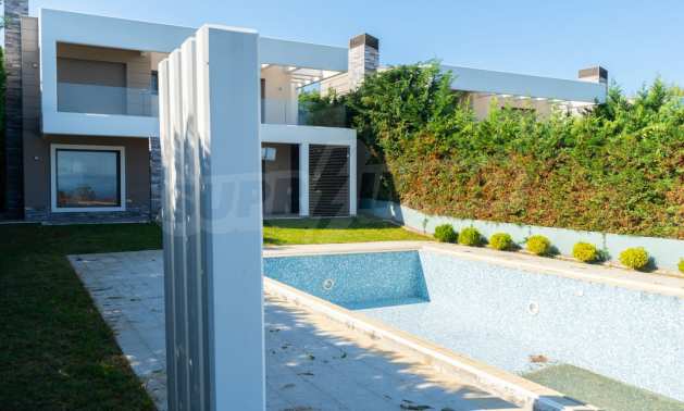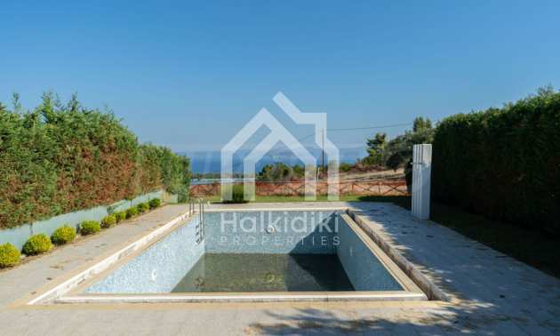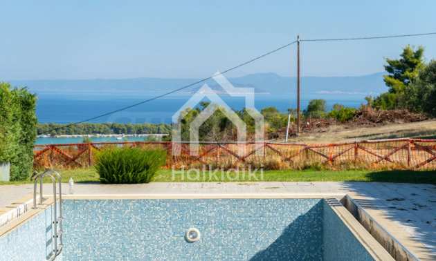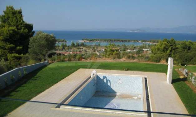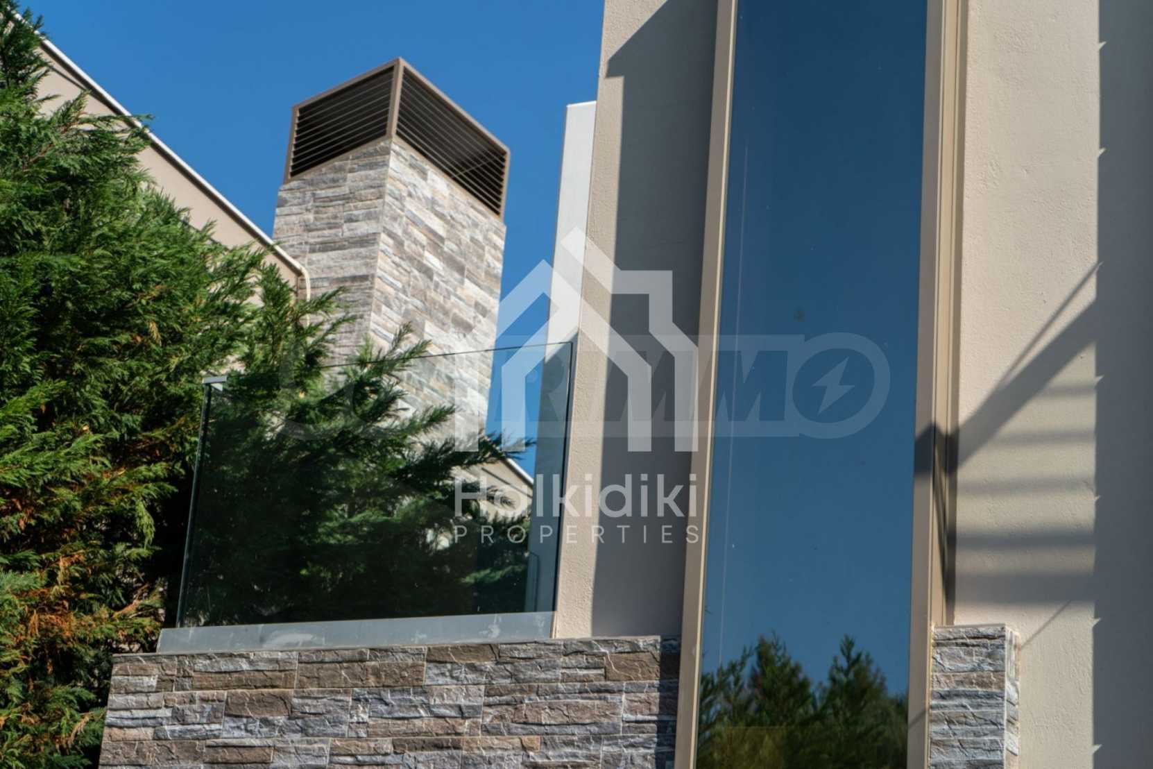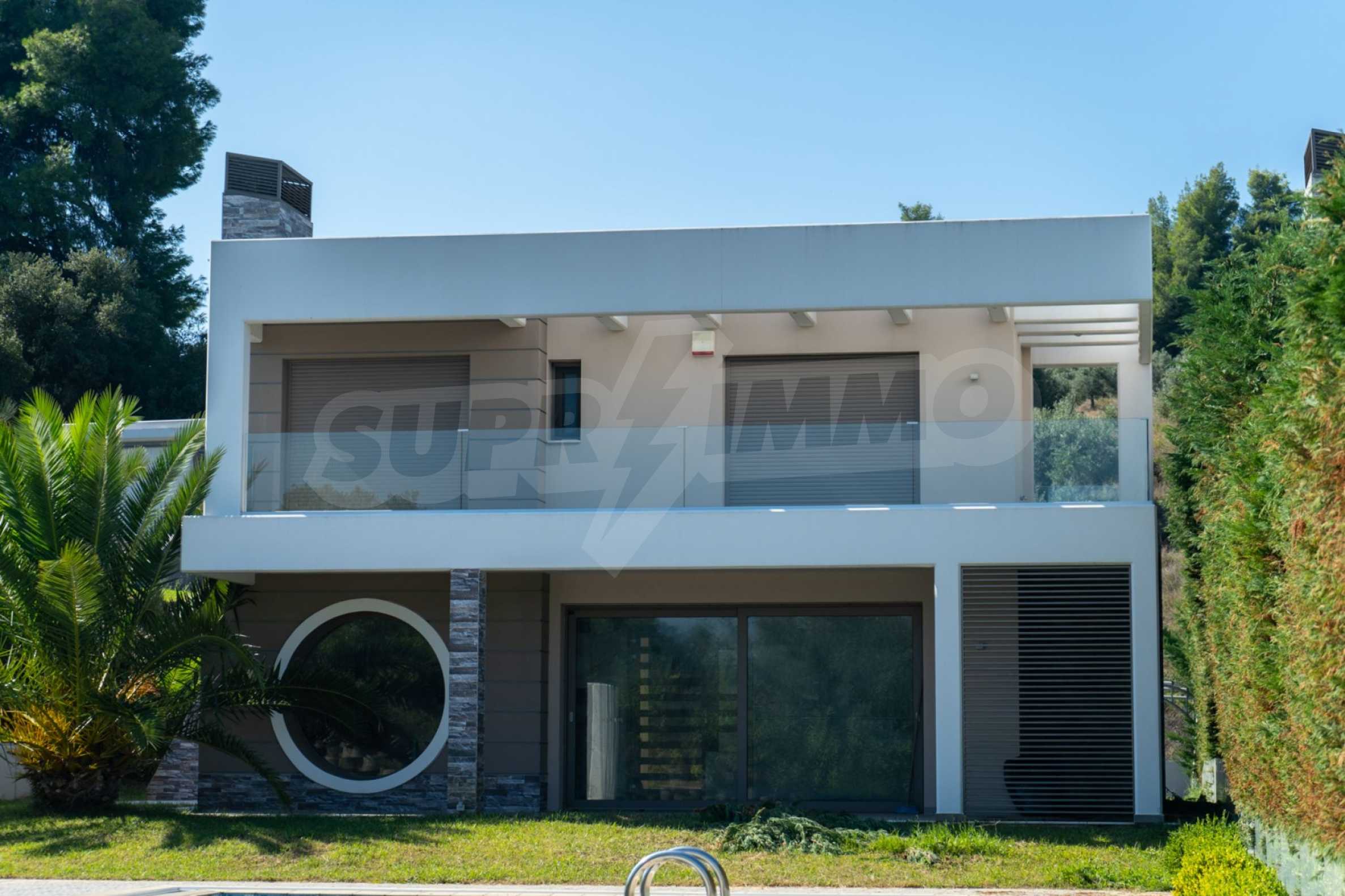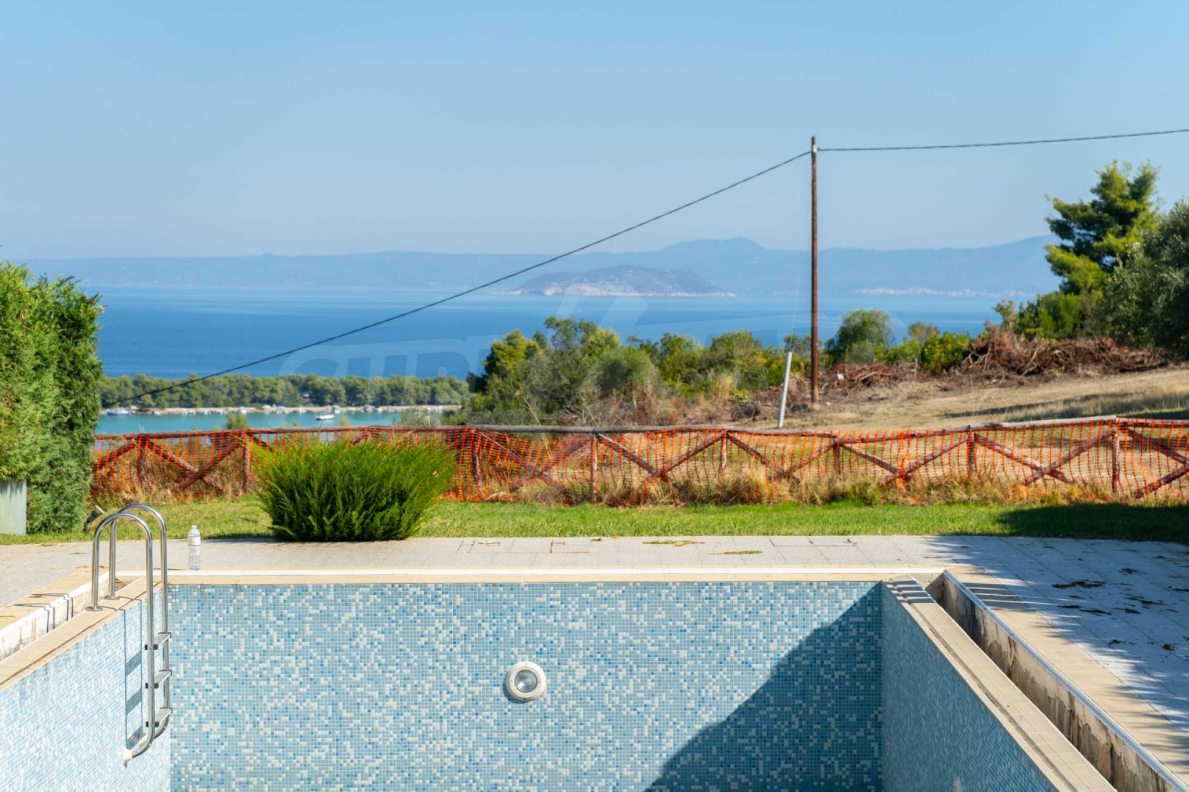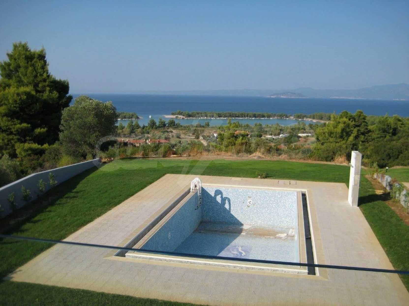 New luxurious villa in Kassandra Halkidiki, big garden, fireplace, swimming pool, parking place and wonderful sea view.