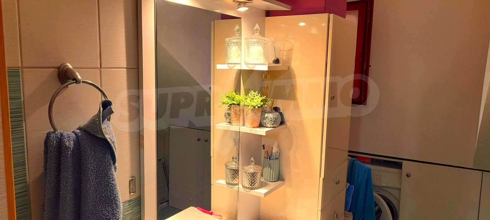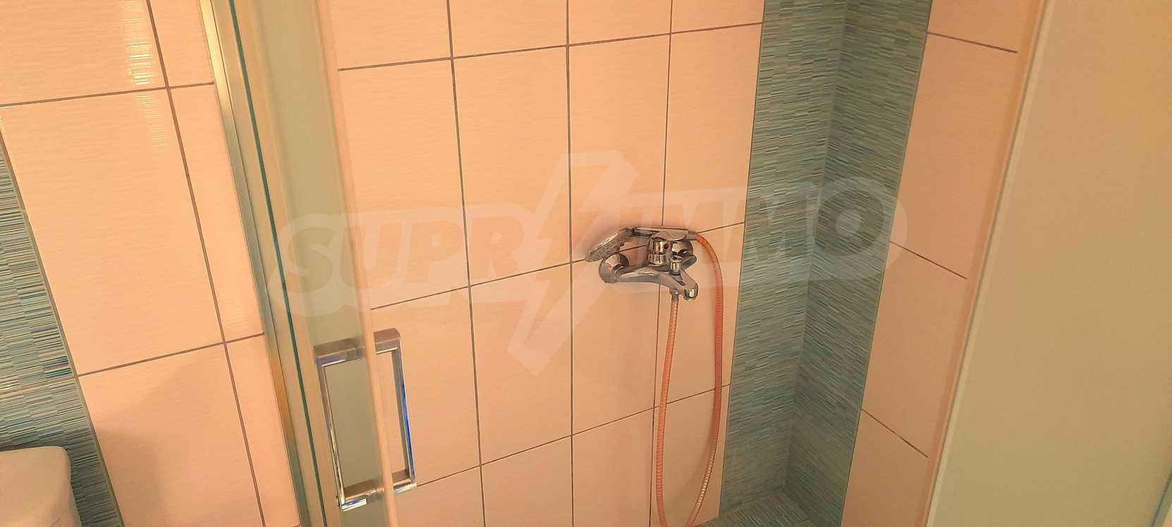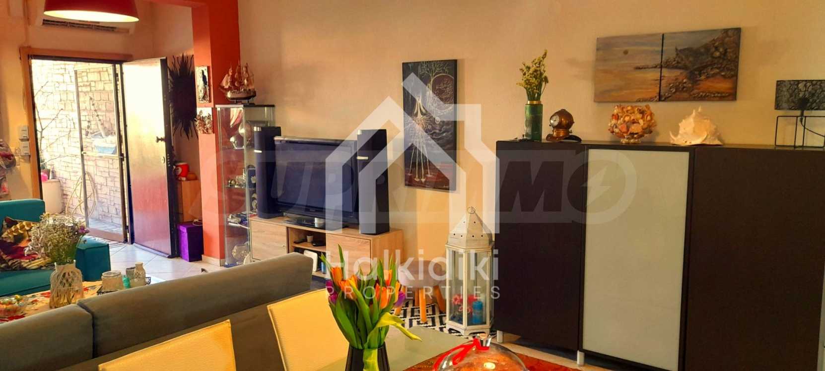 Luxurious apartment in Athos, Halkidiki, 90 m2, with a large garden, automated watering, barbeque and lovely view to the sea. It is furnished, with two bedrooms and floor heating.