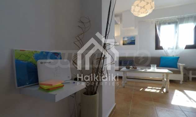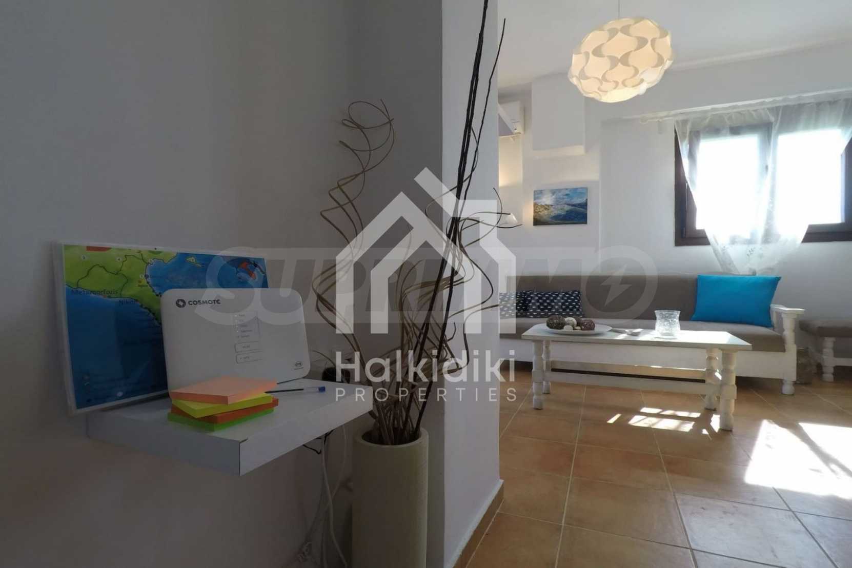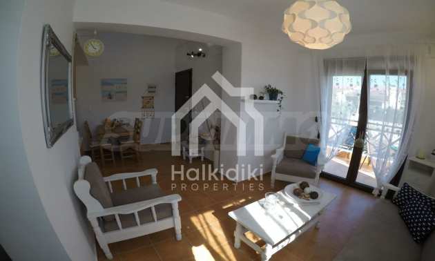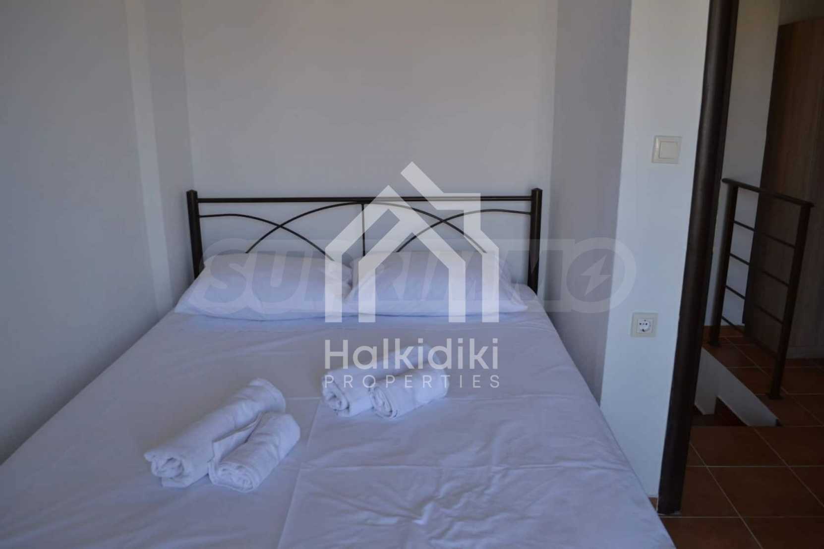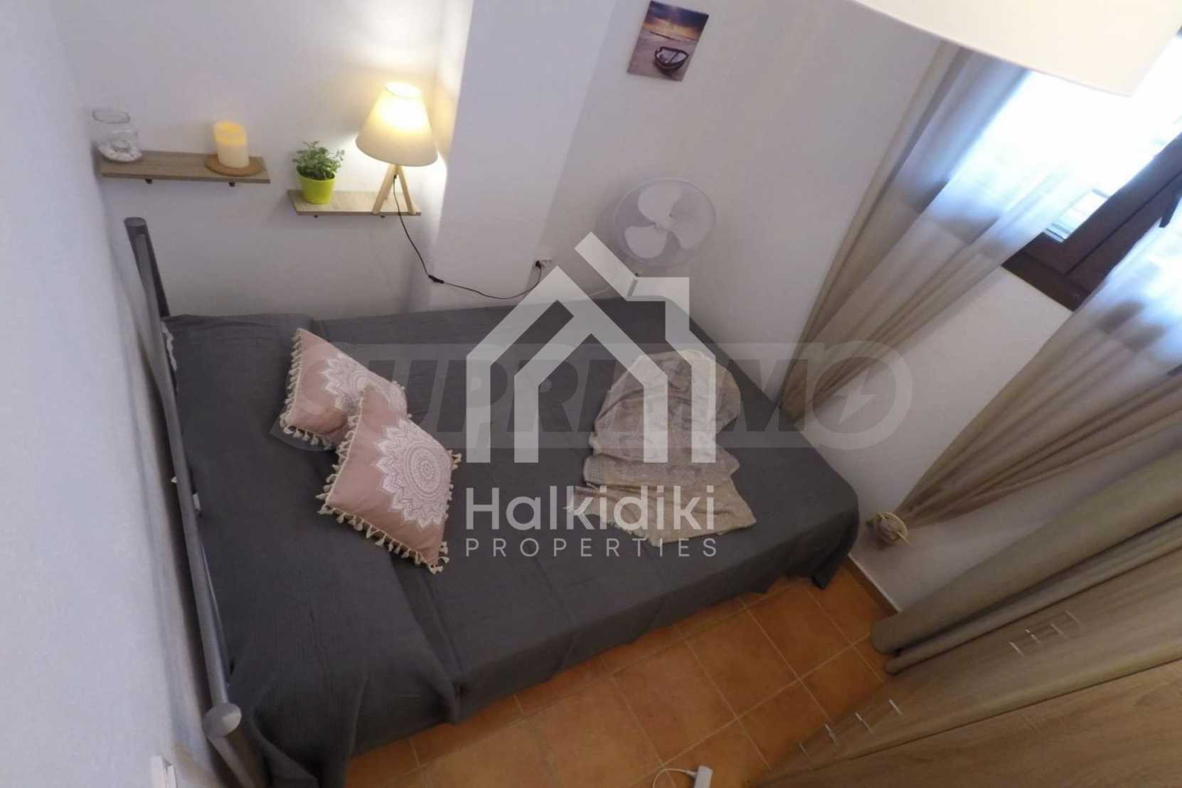 Luxurious maisonette 75 sqm in Sithonia, Halkidiki, with spacious garden and sea view. It consists of two bedrooms, a bathroom and a toilet. The garden covers and area of 100 sqm and has very easy access to the sea. The house is close to the center of the village and, yet, in a quiet location with open surroundings.