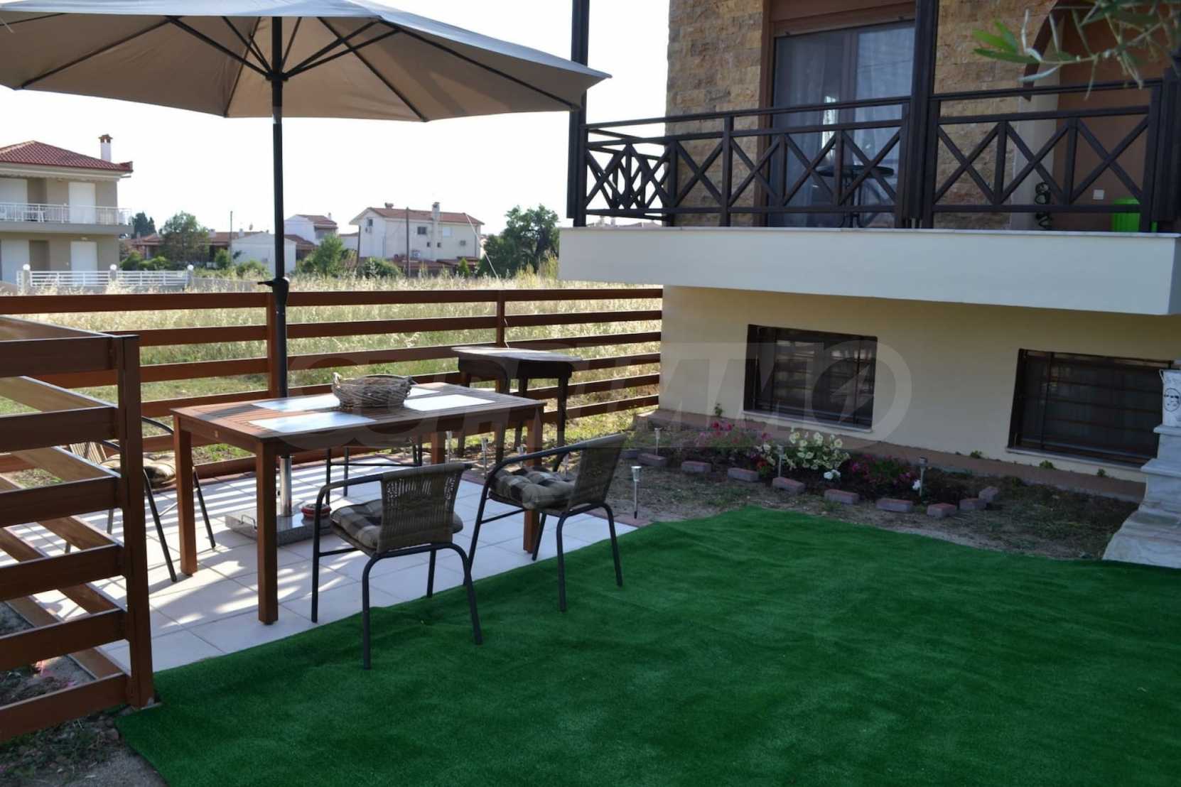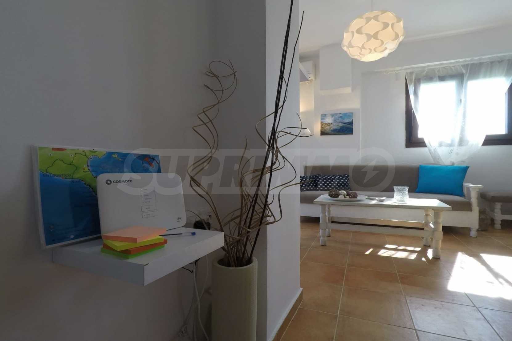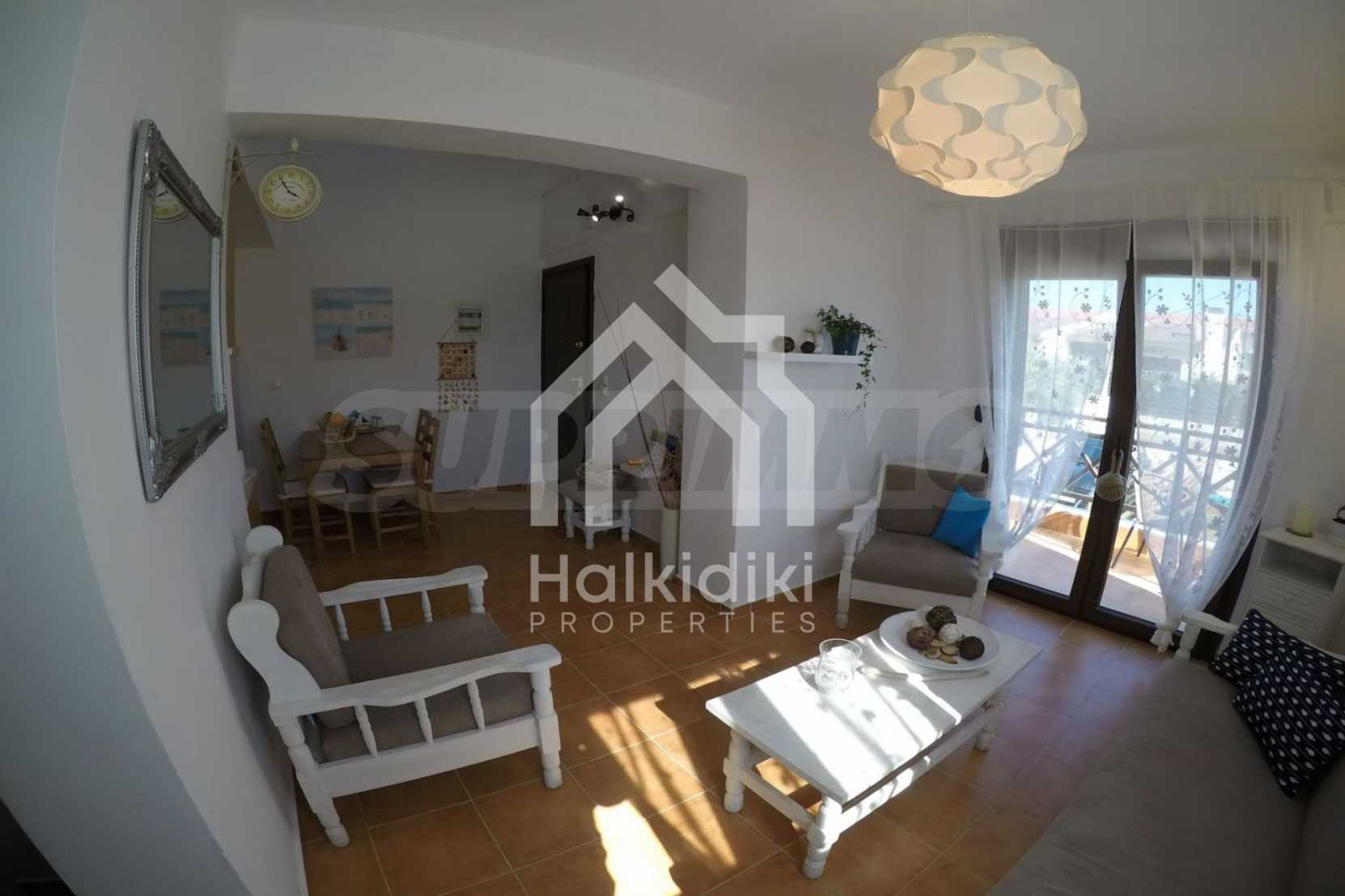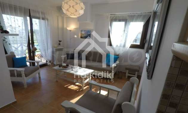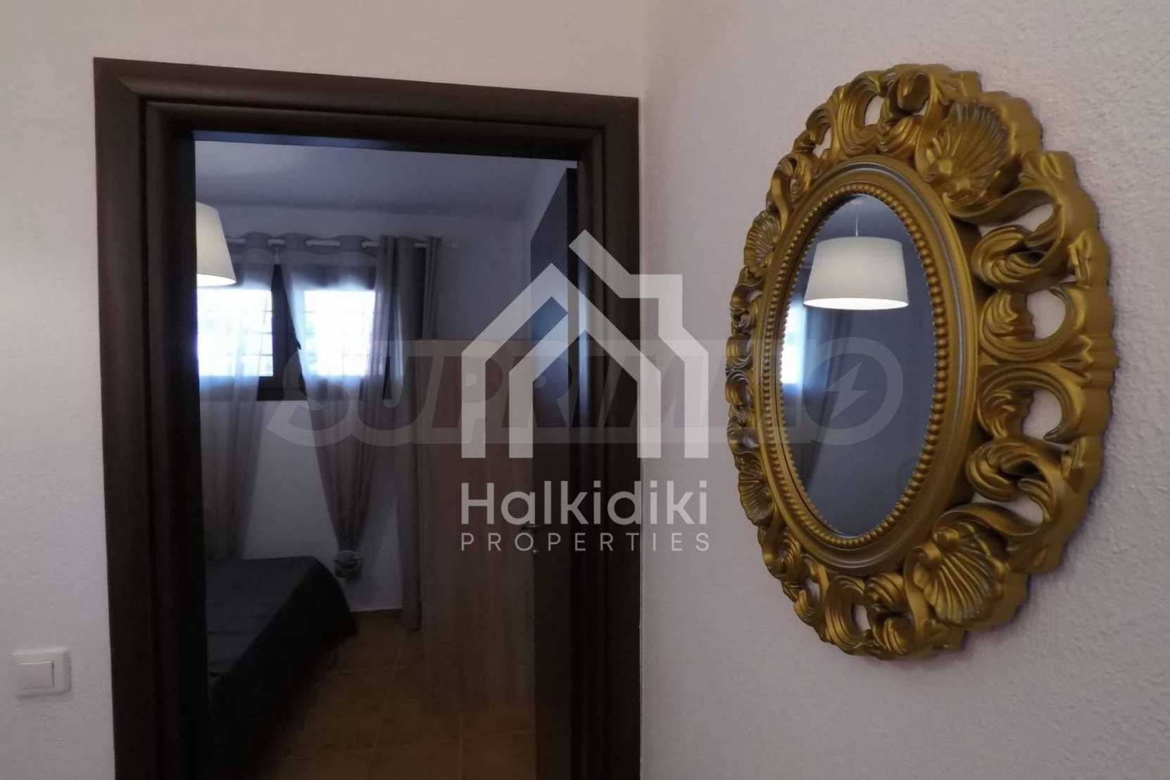 Luxurious maisonette 75 sqm in Sithonia, Halkidiki, with spacious garden and sea view. It consists of two bedrooms, a bathroom and a toilet. The garden covers and area of 100 sqm and has very easy access to the sea. The house is close to the center of the village and, yet, in a quiet location with open surroundings.