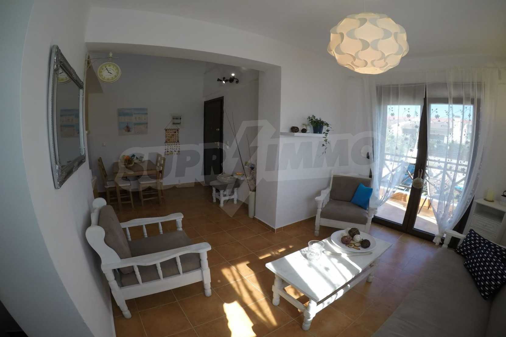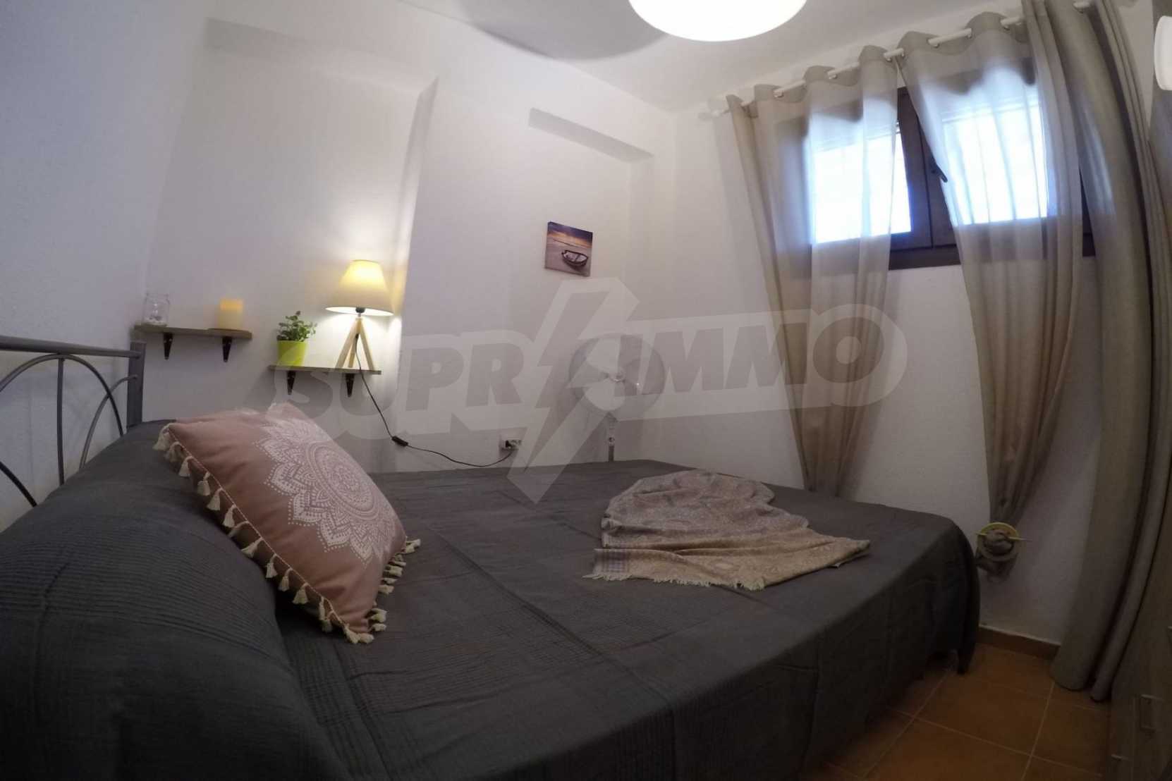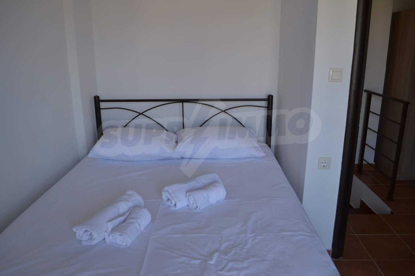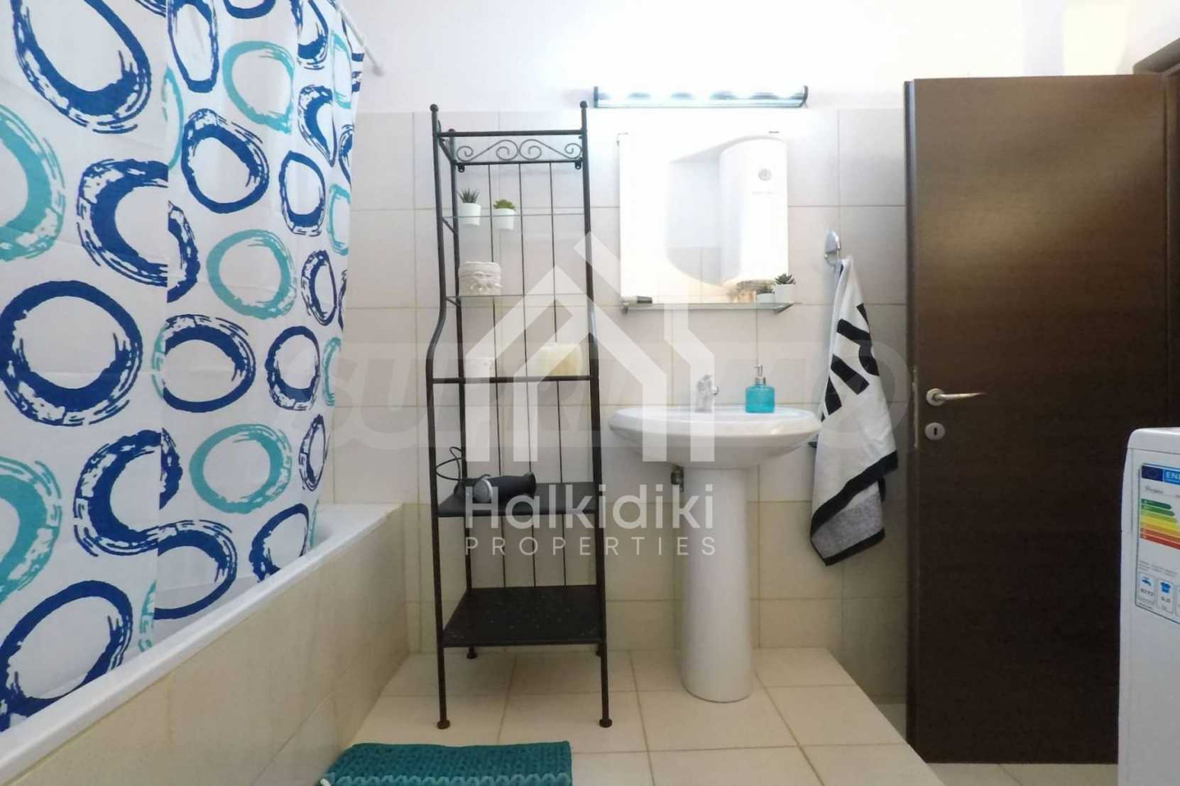 Luxurious maisonette 75 sqm in Sithonia, Halkidiki, with spacious garden and sea view. It consists of two bedrooms, a bathroom and a toilet. The garden covers and area of 100 sqm and has very easy access to the sea. The house is close to the center of the village and, yet, in a quiet location with open surroundings.