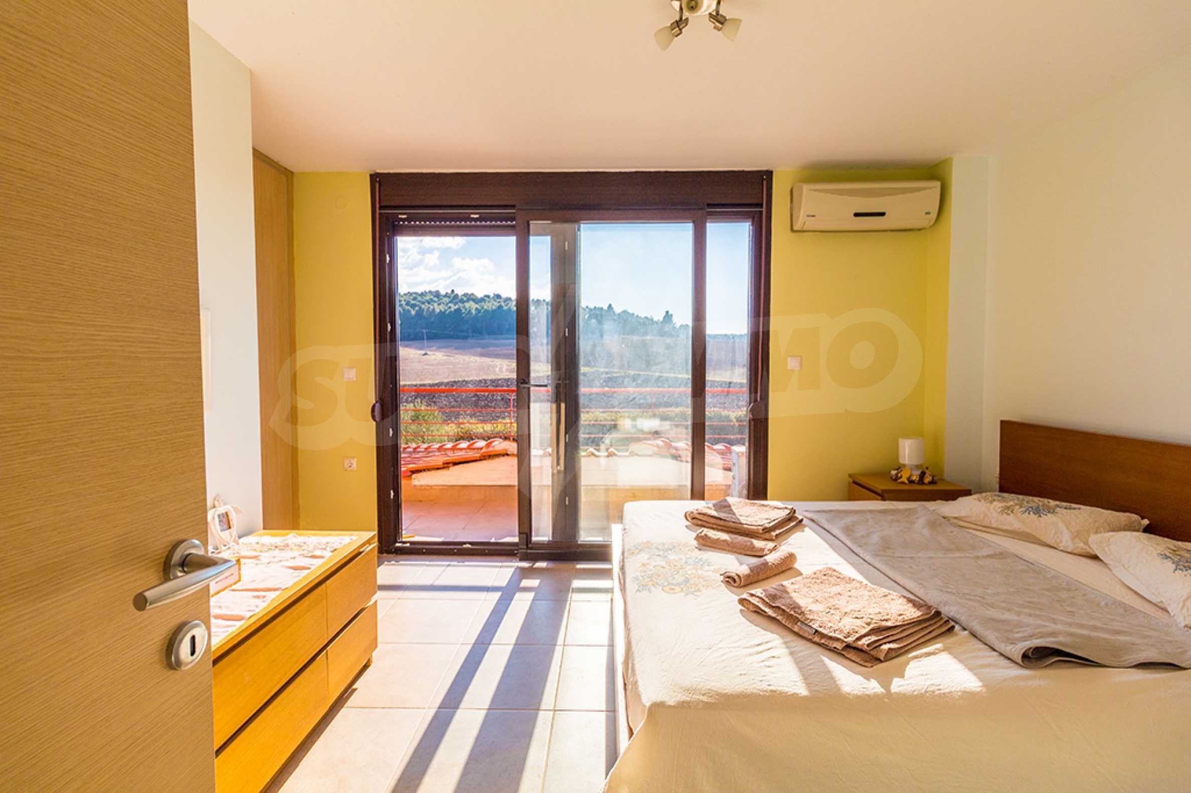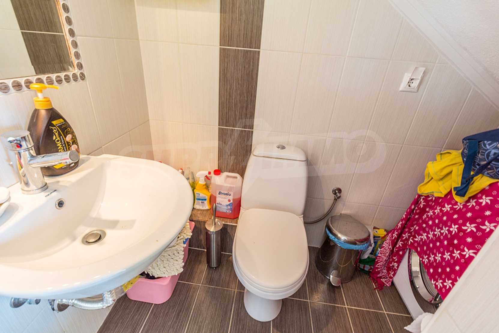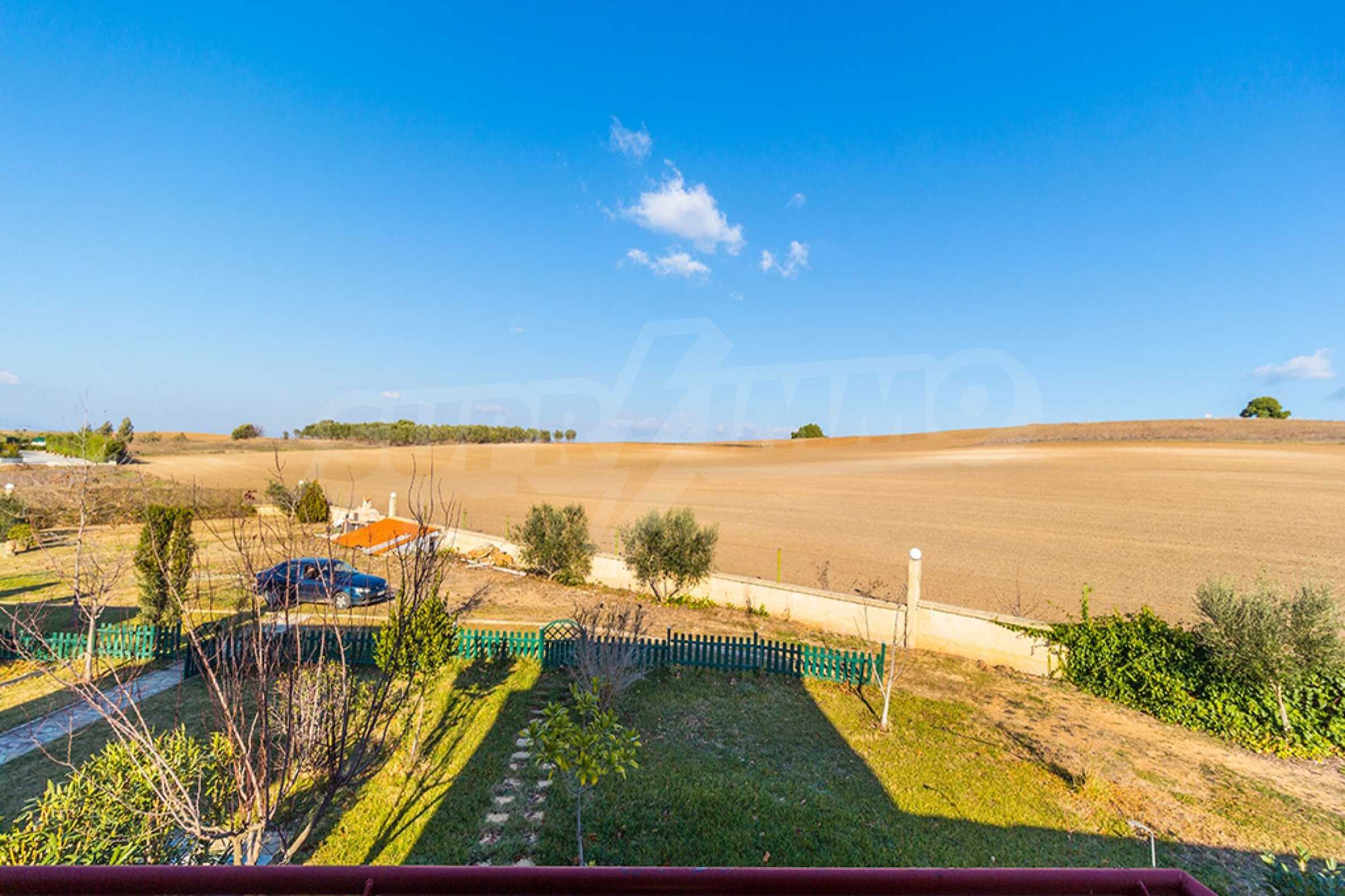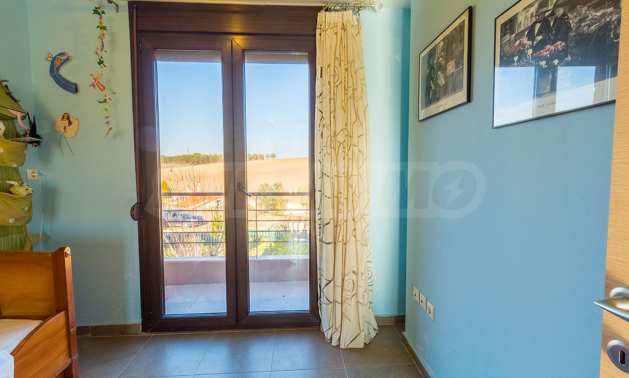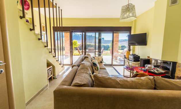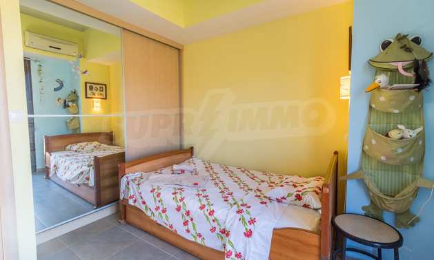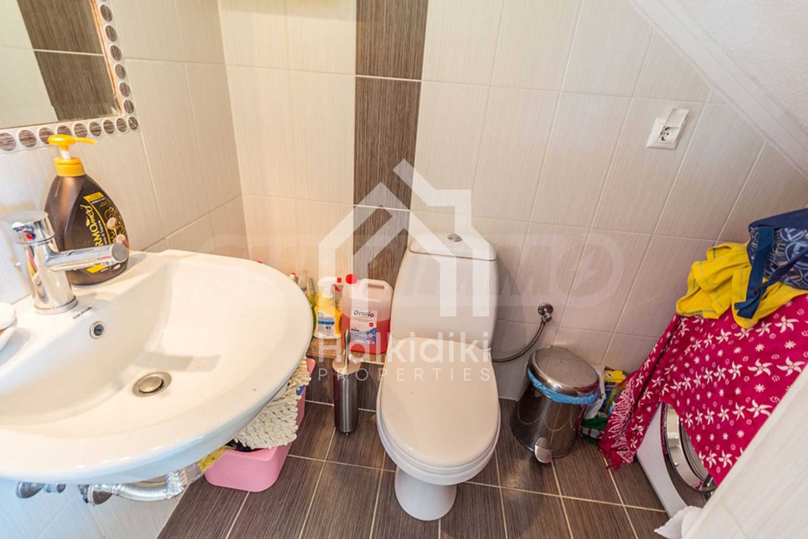 Newly built, three storey maisonette in Kassandra, Halkidki, 115 m2, with a large garden, swimming pool, gardener and parking spots. It has three bedrooms, a bathroom, a toilet, fireplace and a warehouse.