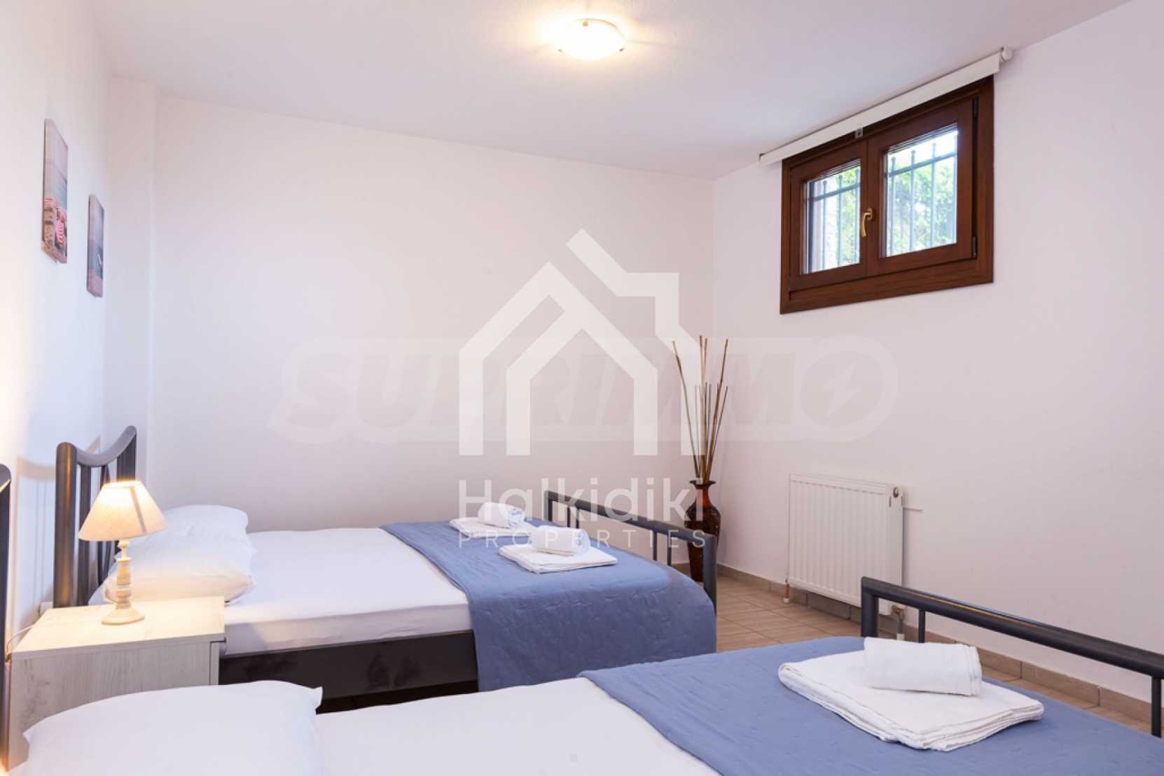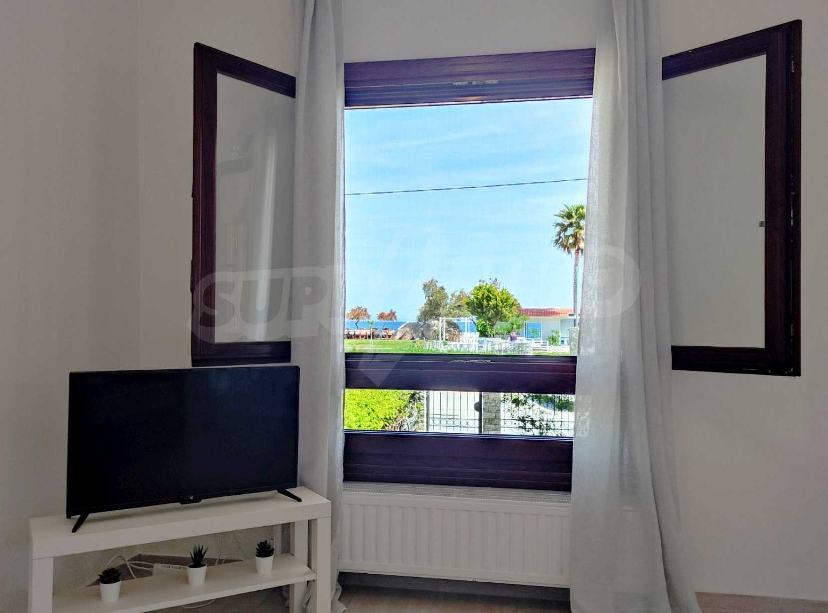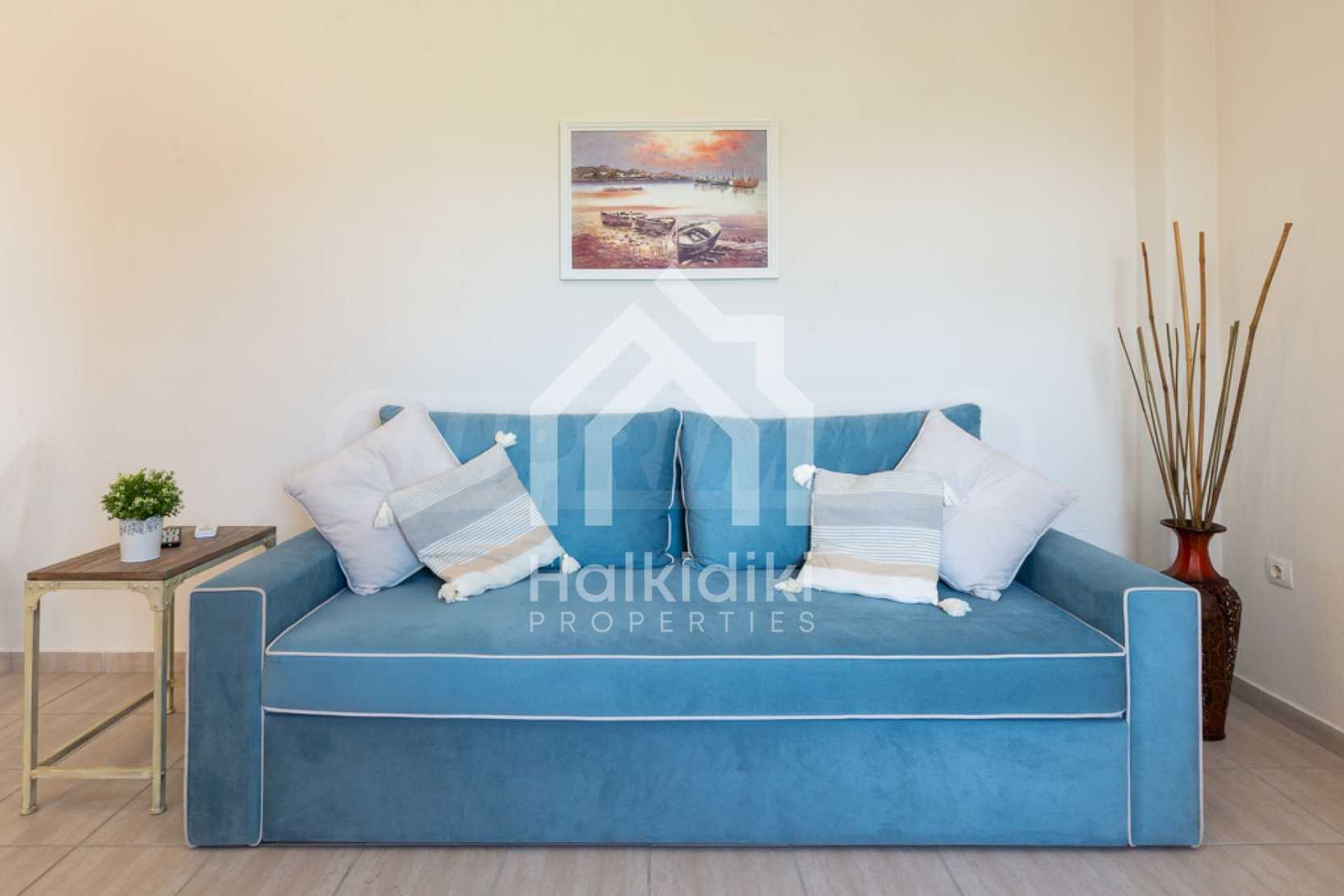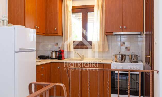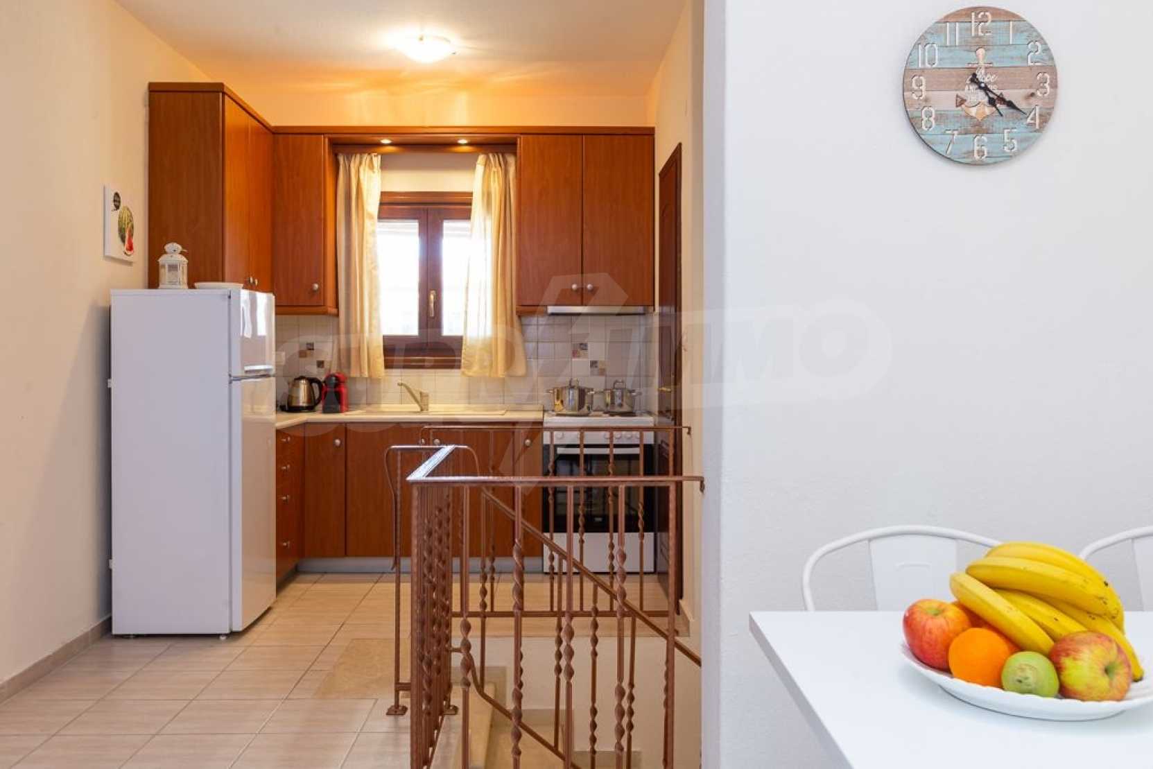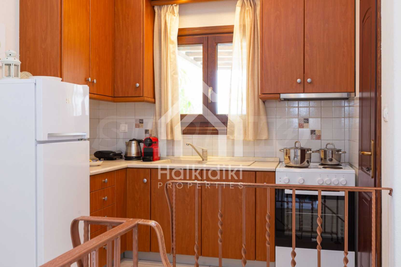 Luxurious maisonette in Municipality of Aristotelis, Athos, Halkidiki. It has a total floor area of 80 sqm and consists of a living room, one bedroom, a bathroom and a toilet. It has fitted kitchenware. The house is just in front of the sea and the view to the sea is breathtaking.