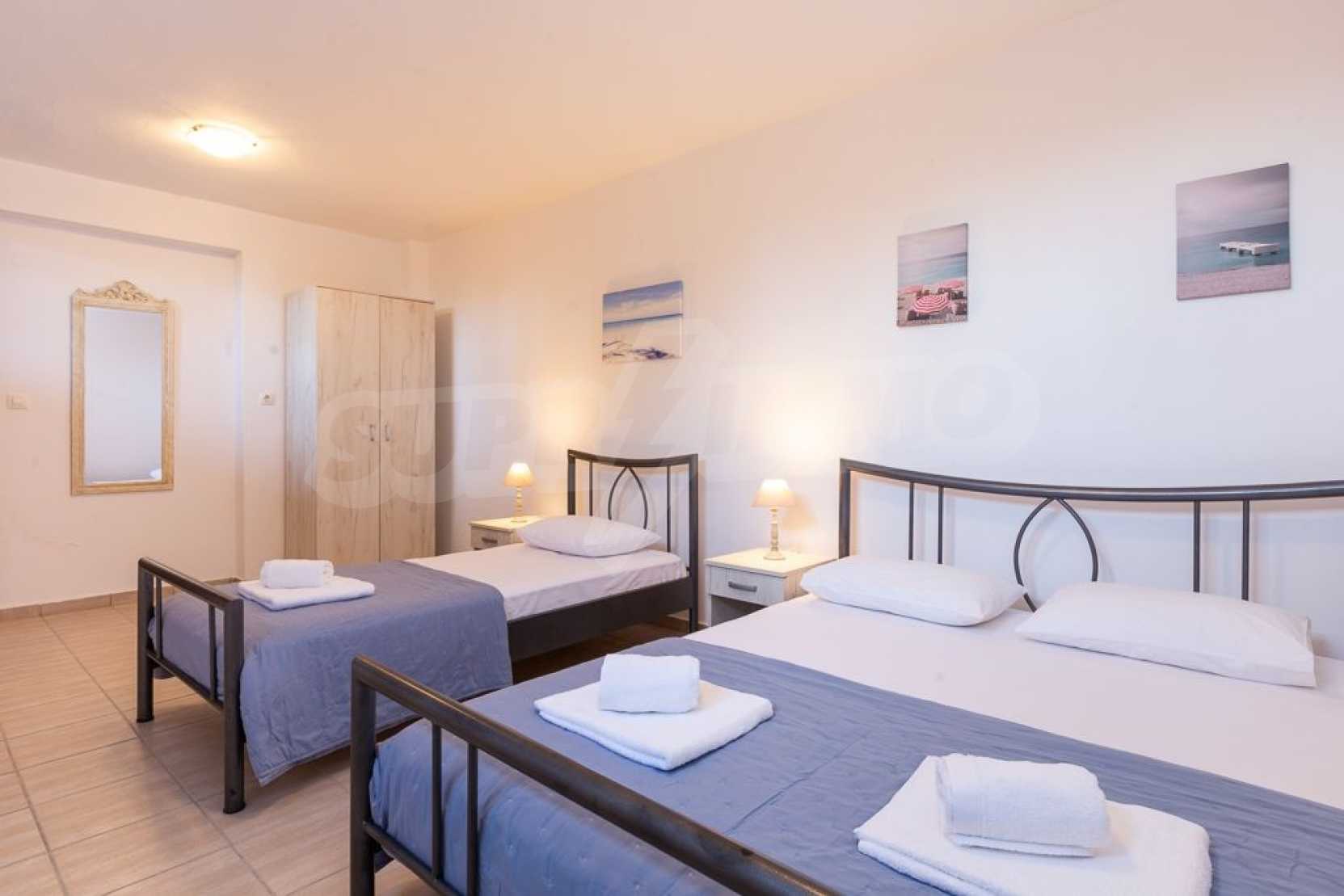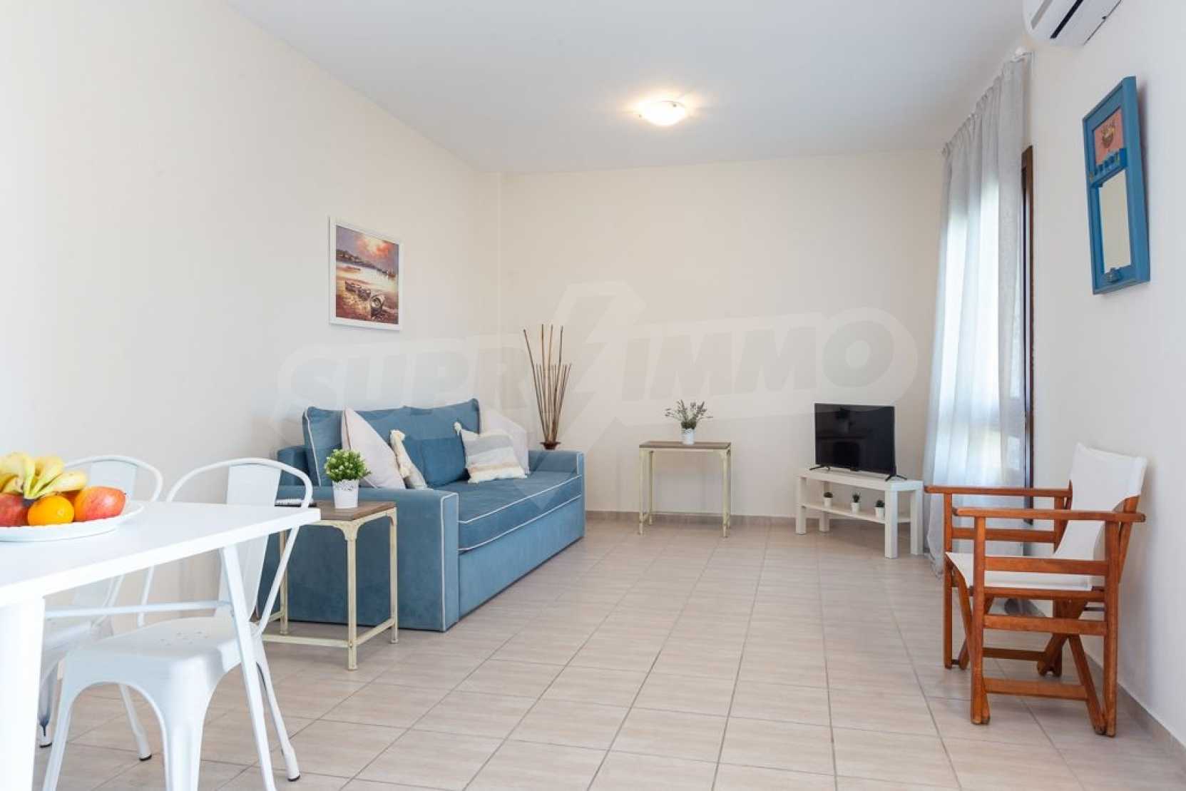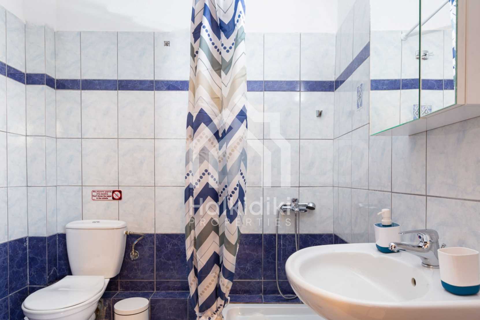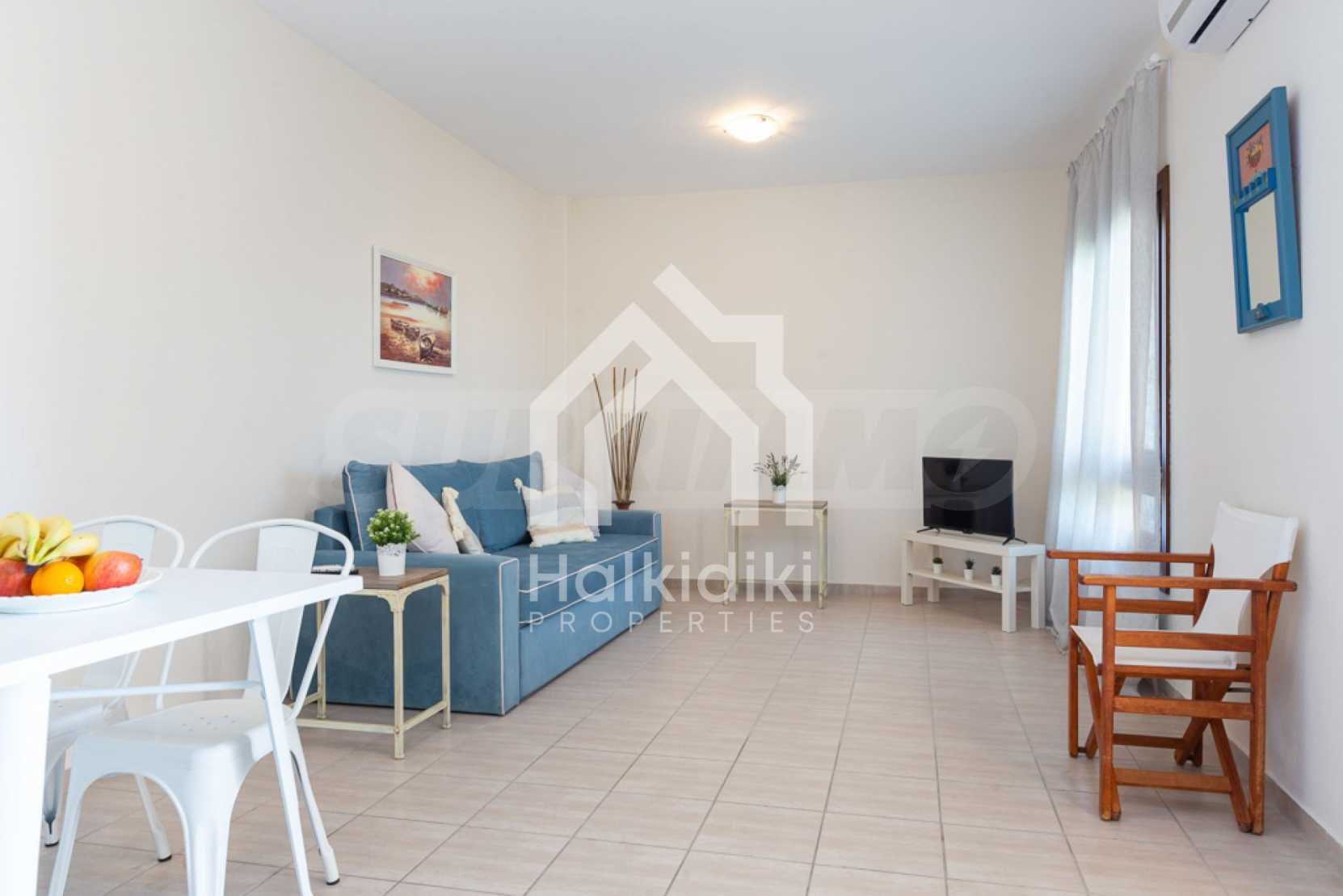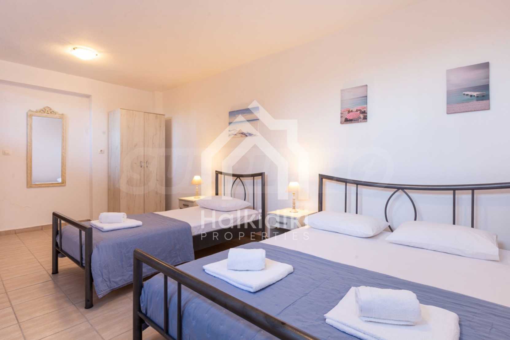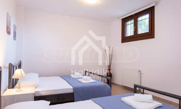 Luxurious maisonette in Municipality of Aristotelis, Athos, Halkidiki. It has a total floor area of 80 sqm and consists of a living room, one bedroom, a bathroom and a toilet. It has fitted kitchenware. The house is just in front of the sea and the view to the sea is breathtaking.