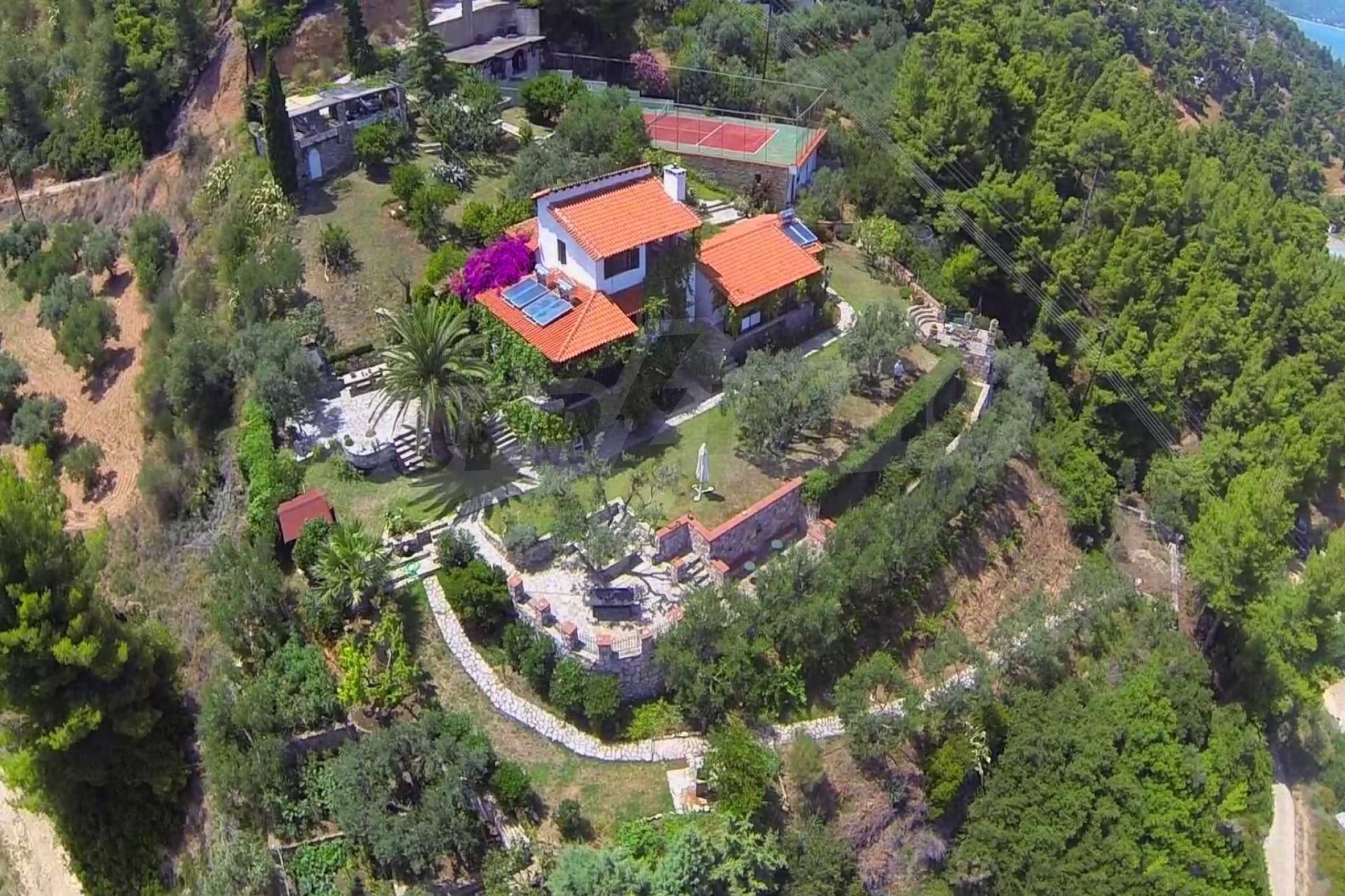 Unique villa on the seafront in 4 acres of land the property is unique architecture and idialiterou good. It has eight rooms with independent bathrooms, central heating, large garden, fireplace, parking places and wonderful sea views. The property is ideal for parties with great aesthetics. Front has a private beach with all facilities for boat. There is also a chapel. There are barbecues and traditional tennis fournos.gipedo. The location offers privacy and is has high fences and large dentra.ston gardens are 30 olive trees, vegetable gardens, AS also exuberant flowers. the access to the sea is via 100 m of trails